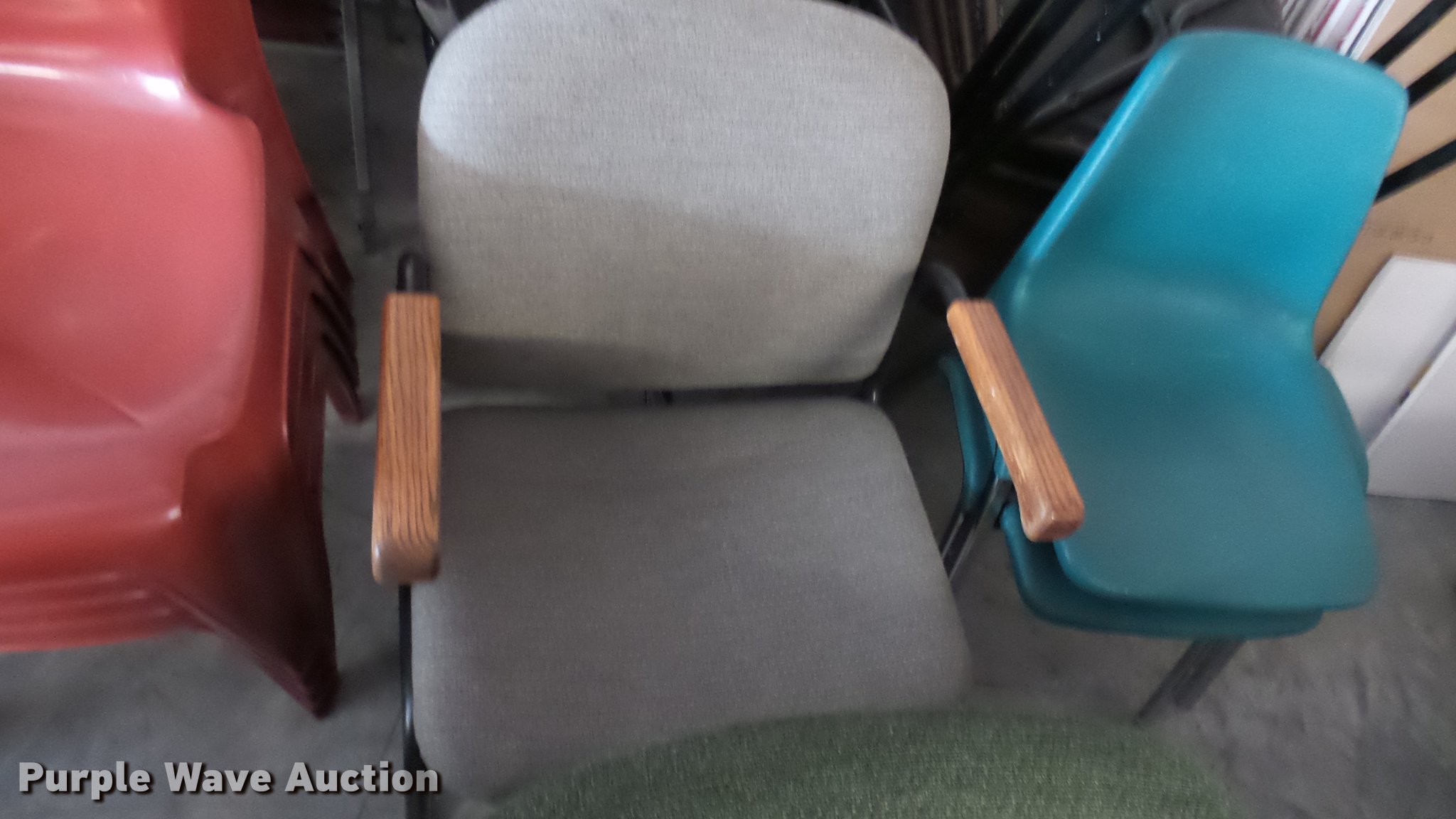 Purple Wave is selling a used Furniture in Kansas. This item is a Approximately 75 chairs with the following: Assorted styles, Various conditions