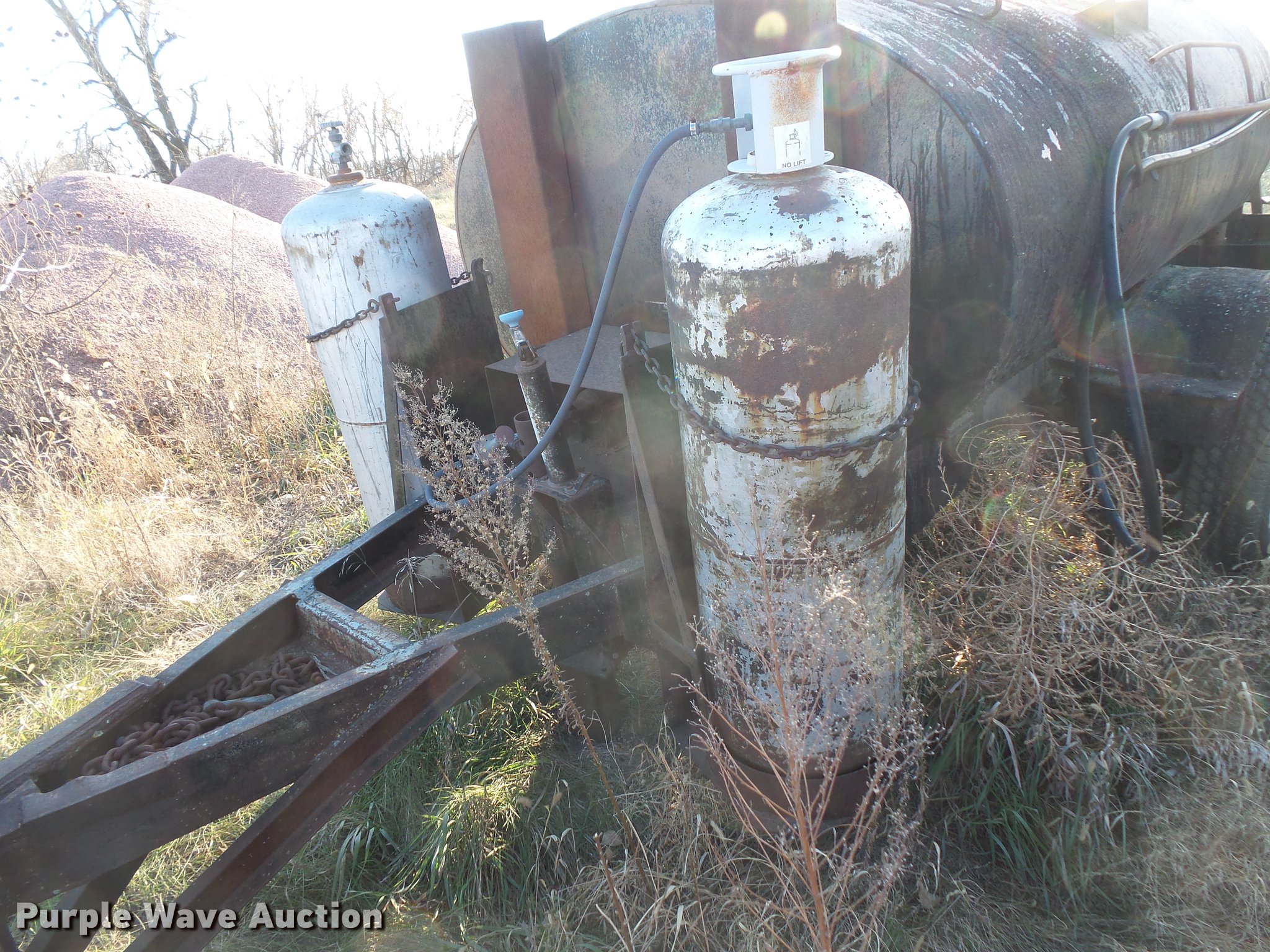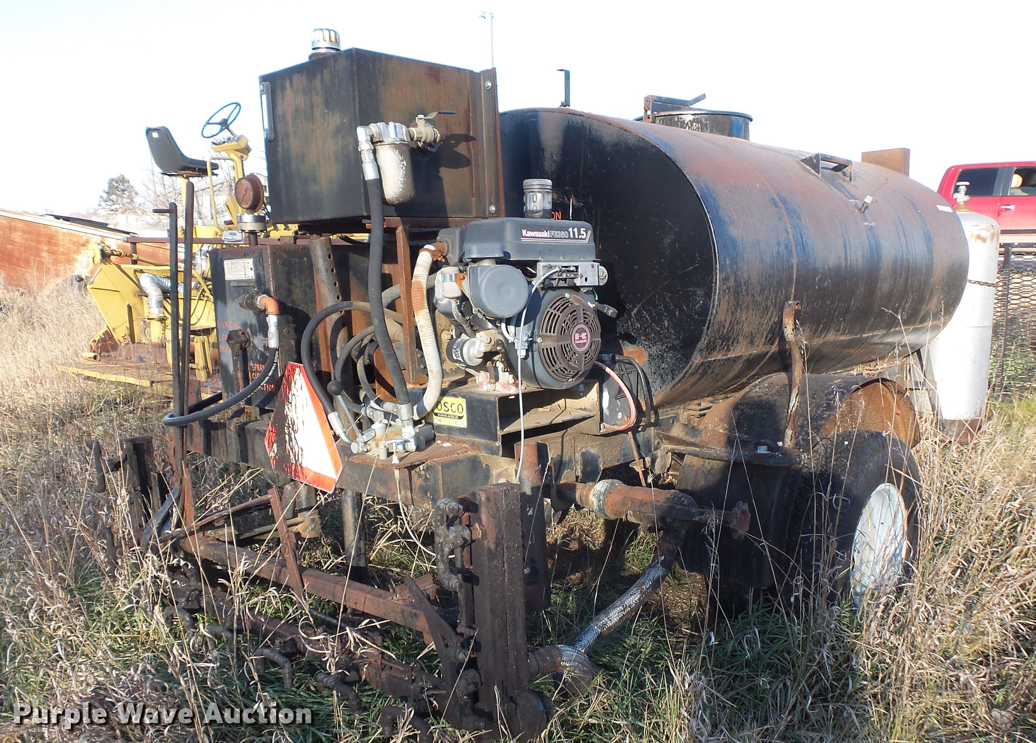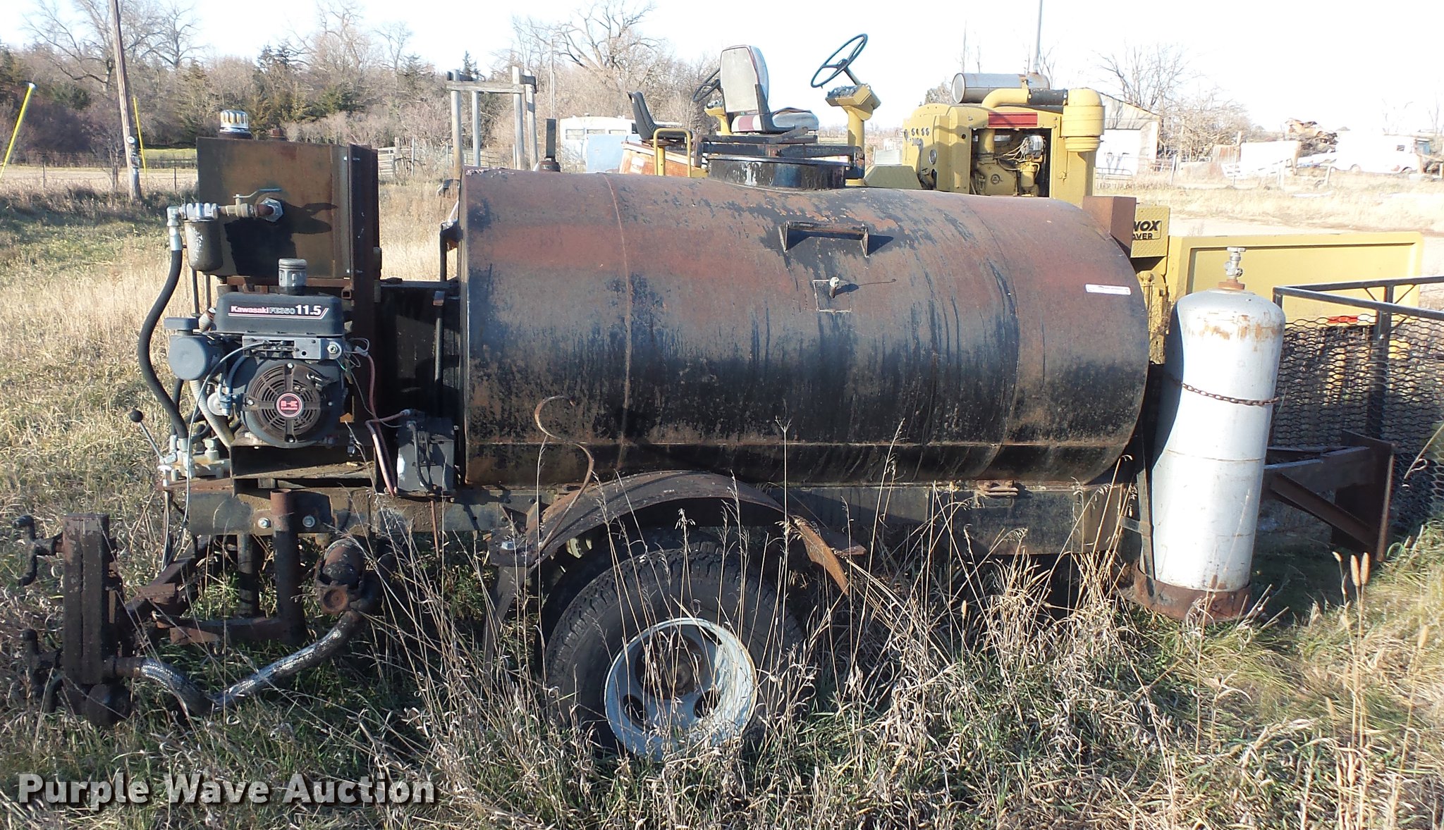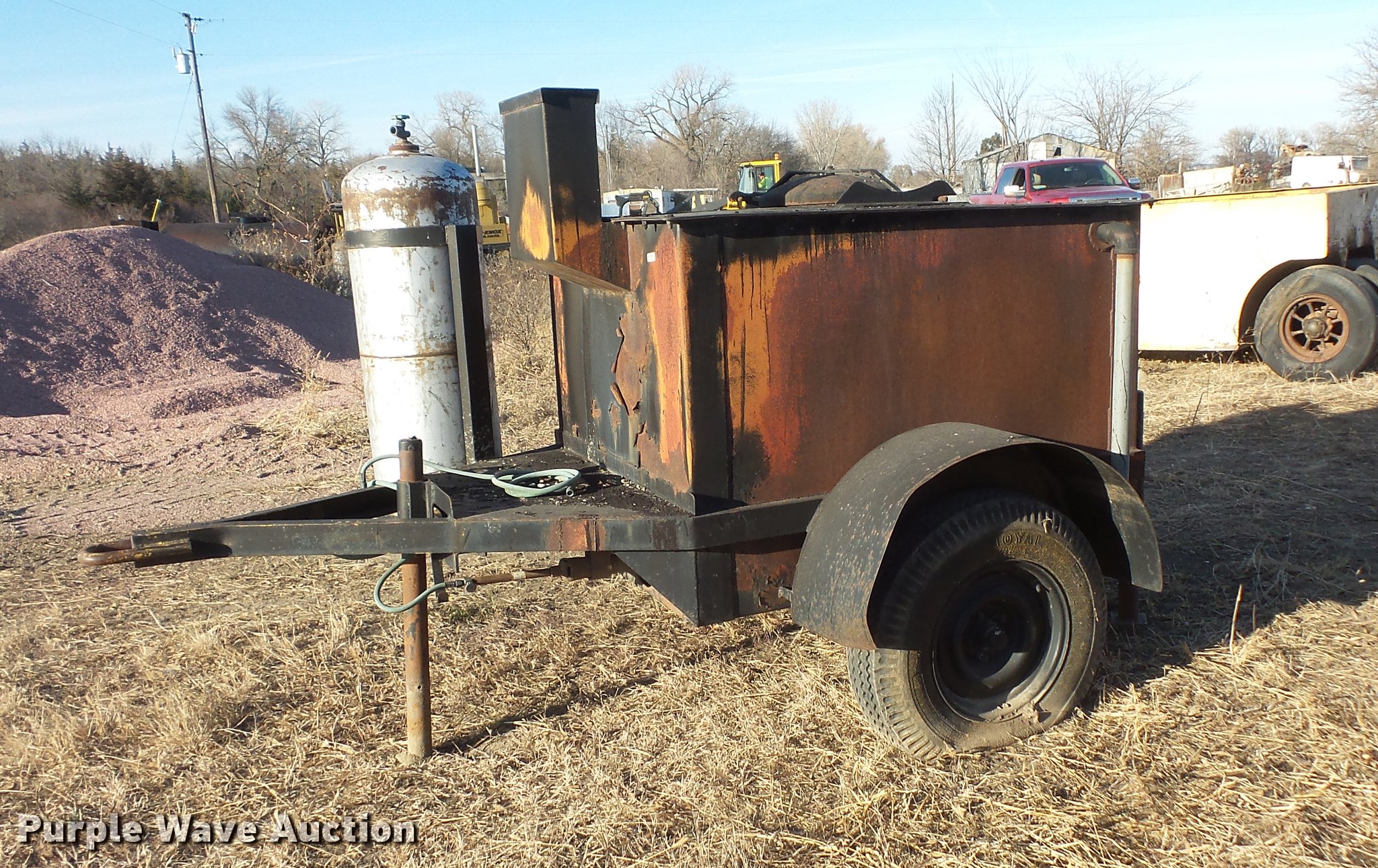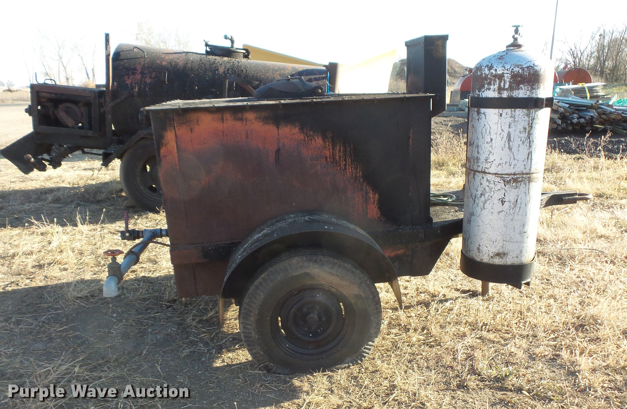 Purple Wave is selling a used Pot Hole Patcher in South Dakota. This item is a (3) tar pot trailers with the following: Propane fired, Kawasaki gas engine, 11.5 HP, Pintle hitch, Single axle, 245/75R16 tires, Parts only trailer, Pintle hitch, Single axle, 6.50-20 tires, Propane fired tar pot trailer, Pintle hitch, Single axle