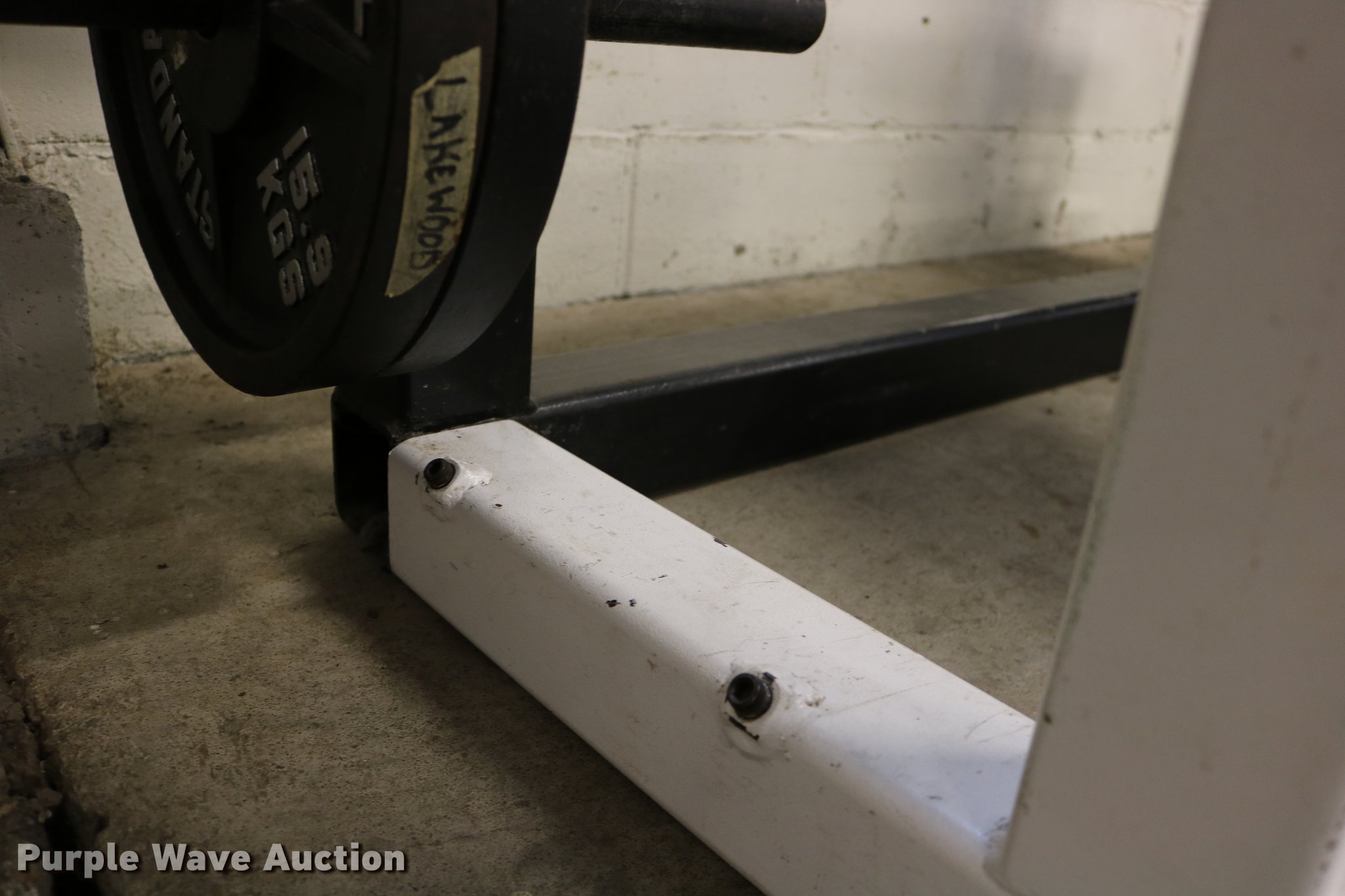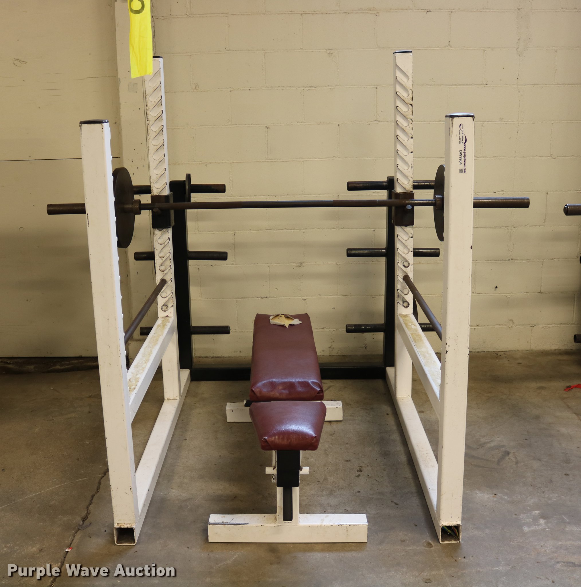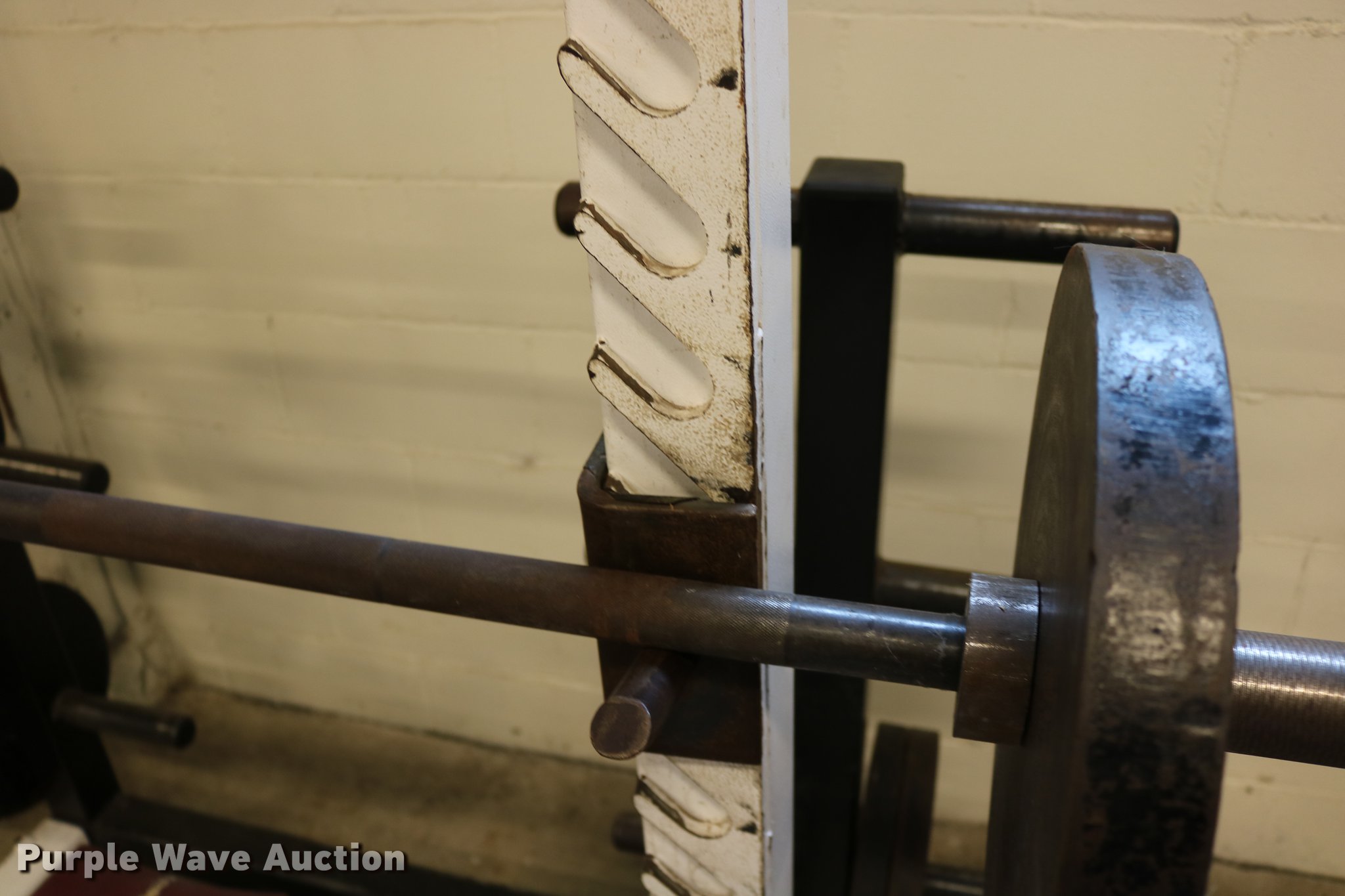Purple Wave is selling a used Sporting Goods in Kansas. This item is a Weight room equipment with the following: Bench press, Squat rack, (6) 35 lbs weights, (2) 25 lbs weights, (2) 2.5 lbs weights, Weight bars, Adjustable bench