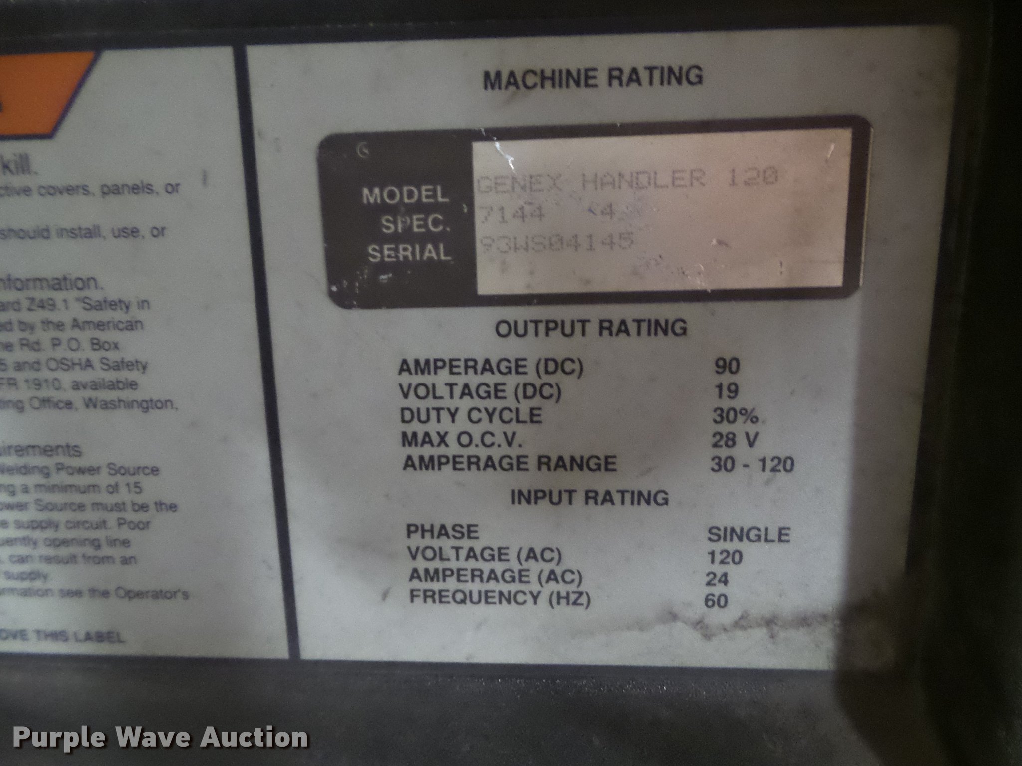 Purple Wave is selling a used Welder (Manual) in Iowa. This item is a Hobart Genex Handler 120 welder with the following: 110V, Single phase, Gun not included, Serial 93W504145