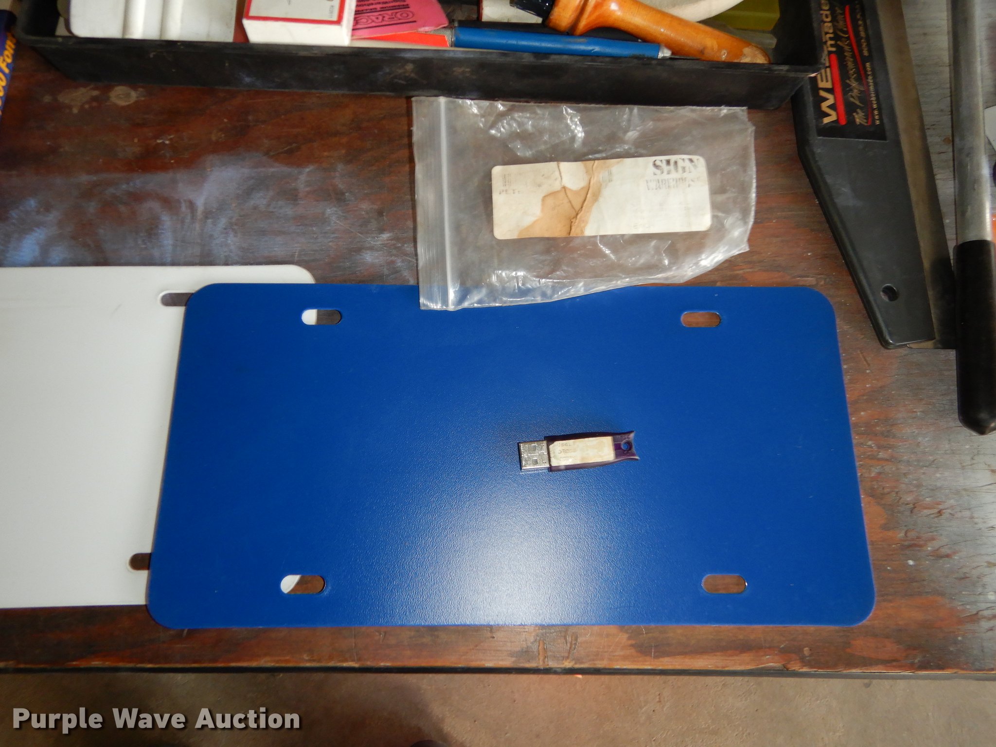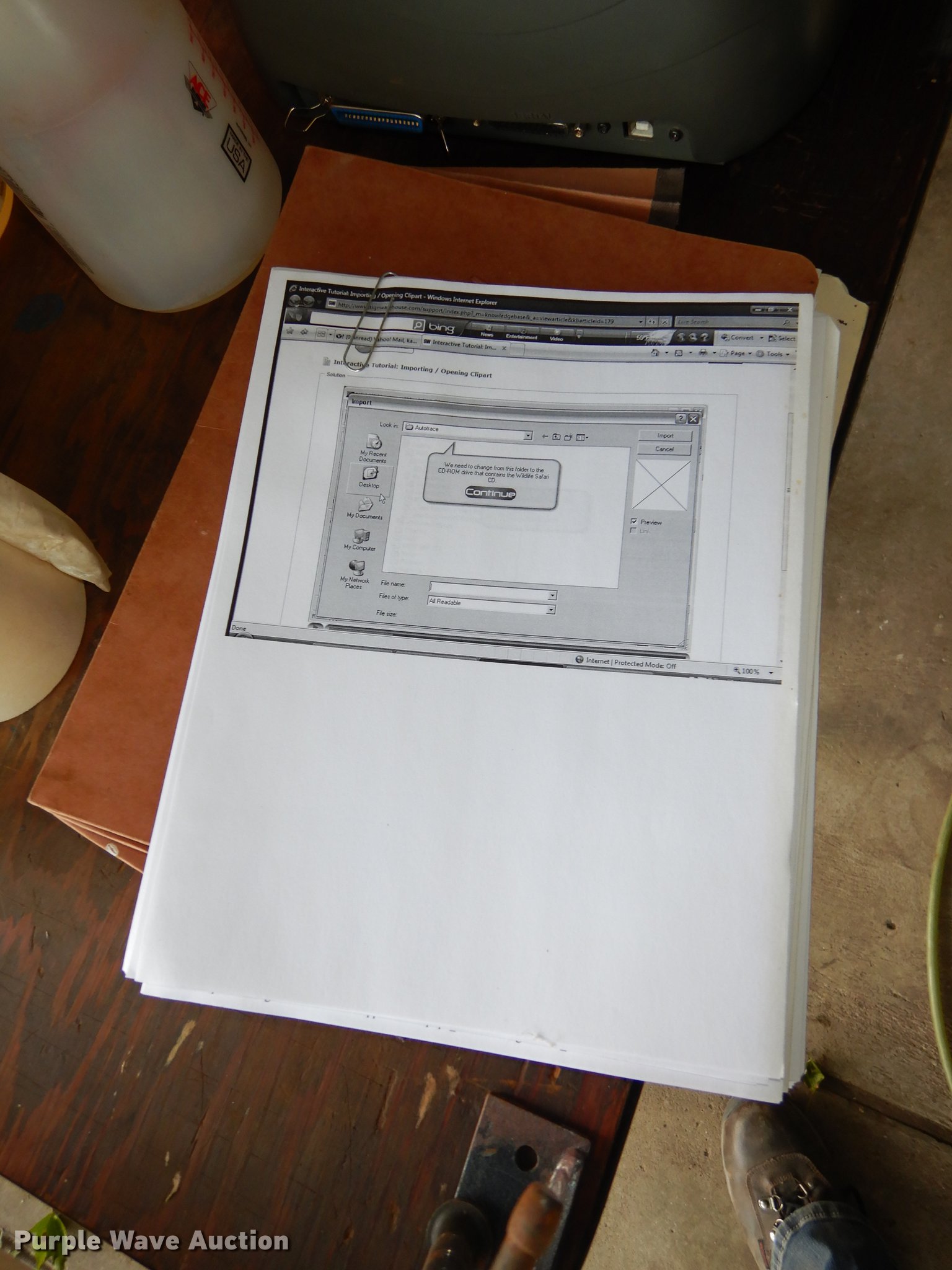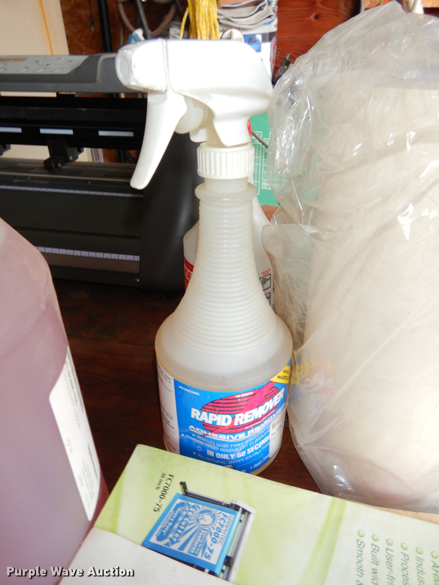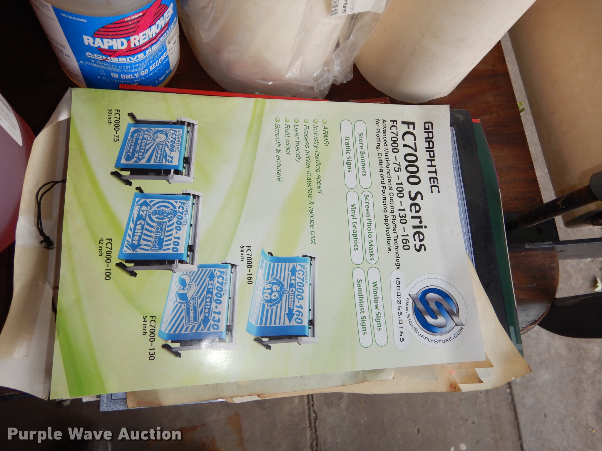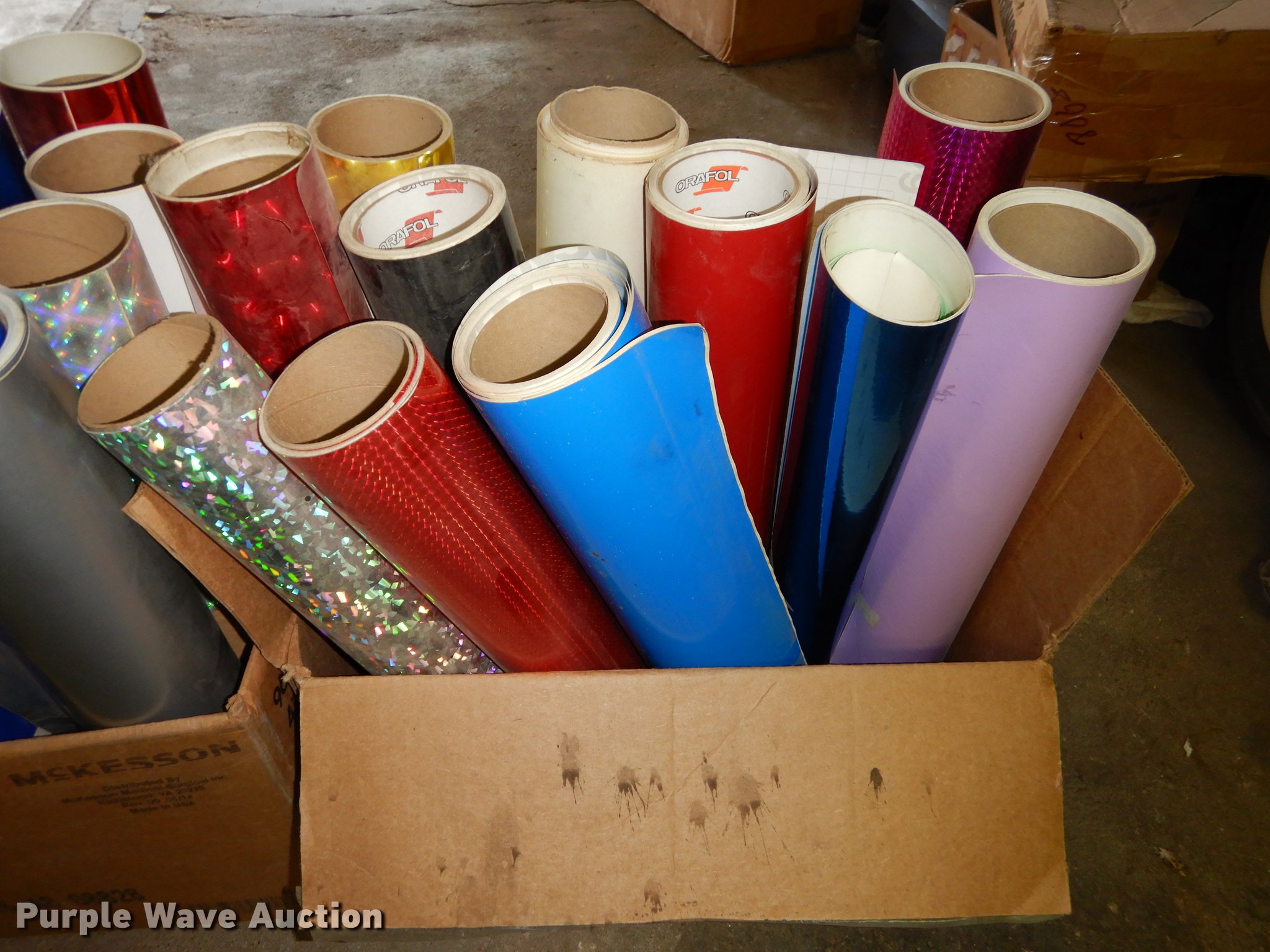 Purple Wave is selling a used Tools in Kansas. This item is a Vinyl express unit with the following: Applicator fluid, Sign warehouse tape, Rollers/scrapers, (13) assorted design CDs, LG CPU, Mac Innovision monitor, Keyboard, Mouse, Speakers, 24" vinyl cutter, Stand, Instruction/operators manual, Approx. 55 partial rolls of vinyl, Various widths, 18" and 24", Rack, Sample artwork not included, Table not included