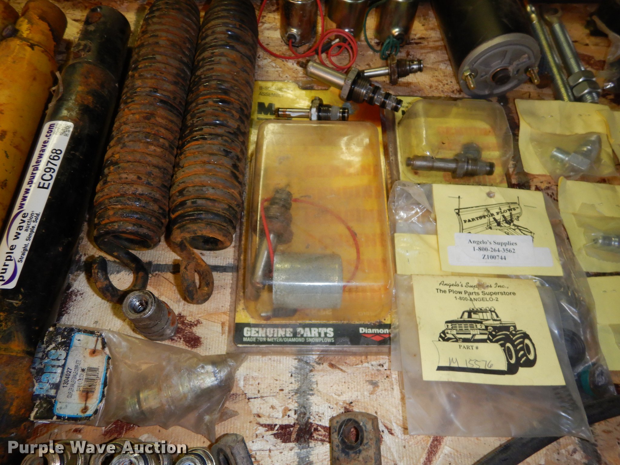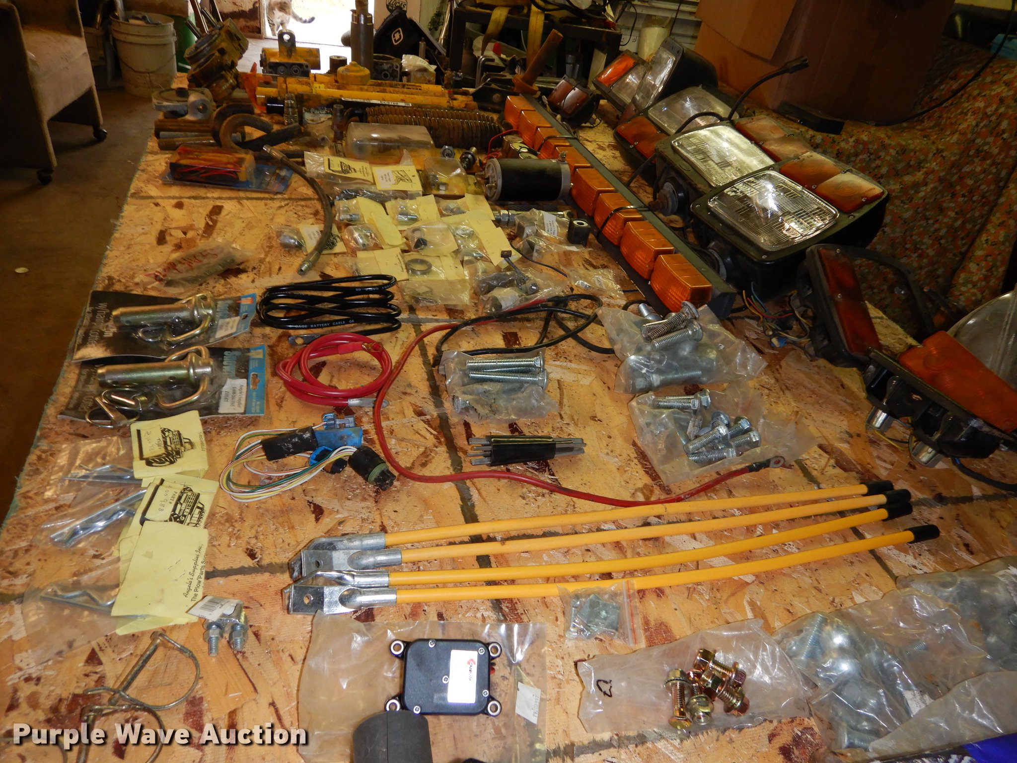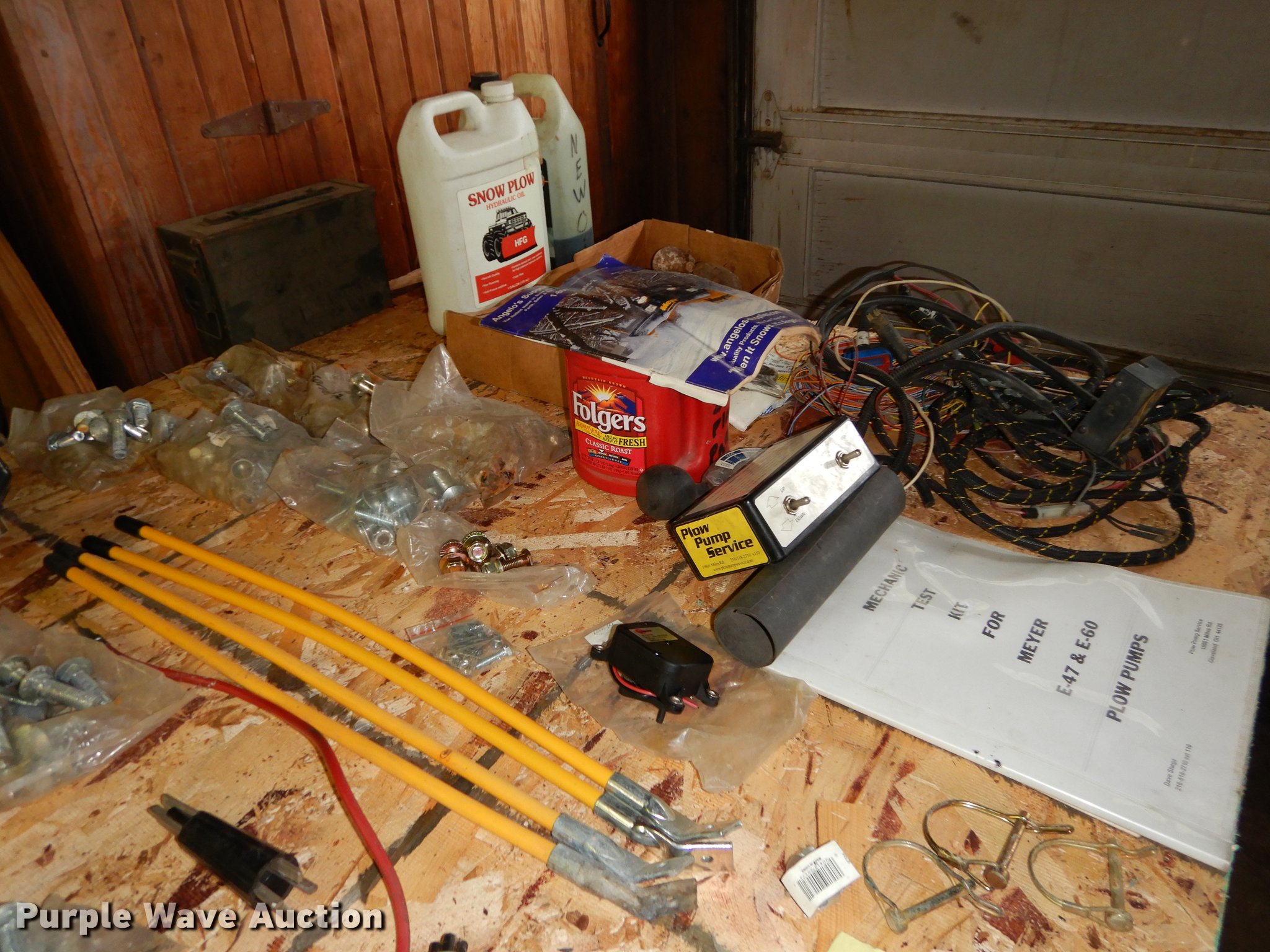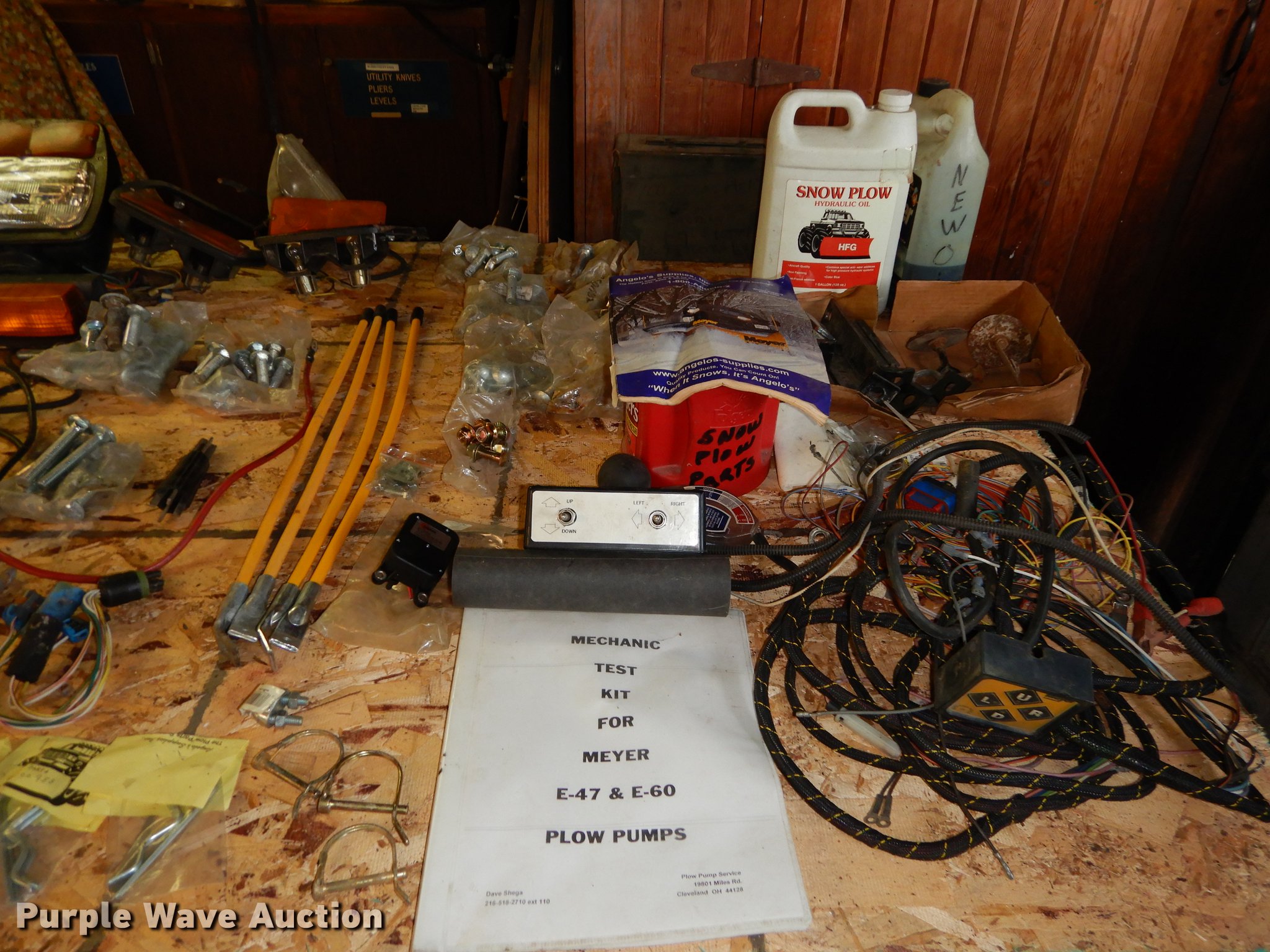 Purple Wave is selling a used Truck Part and Attach. in Kansas. This item is a Snow plow parts with the following: Lights, Strip light, Shoe, Cylinders, Springs, Solenoids, Hitch pins, Cables, Test kit, Wiring, Pins, Hose connectors, Starter motor, Bolts, Hydraulic oil, Multi-tester, Fits Meyer E47 and E60 blades