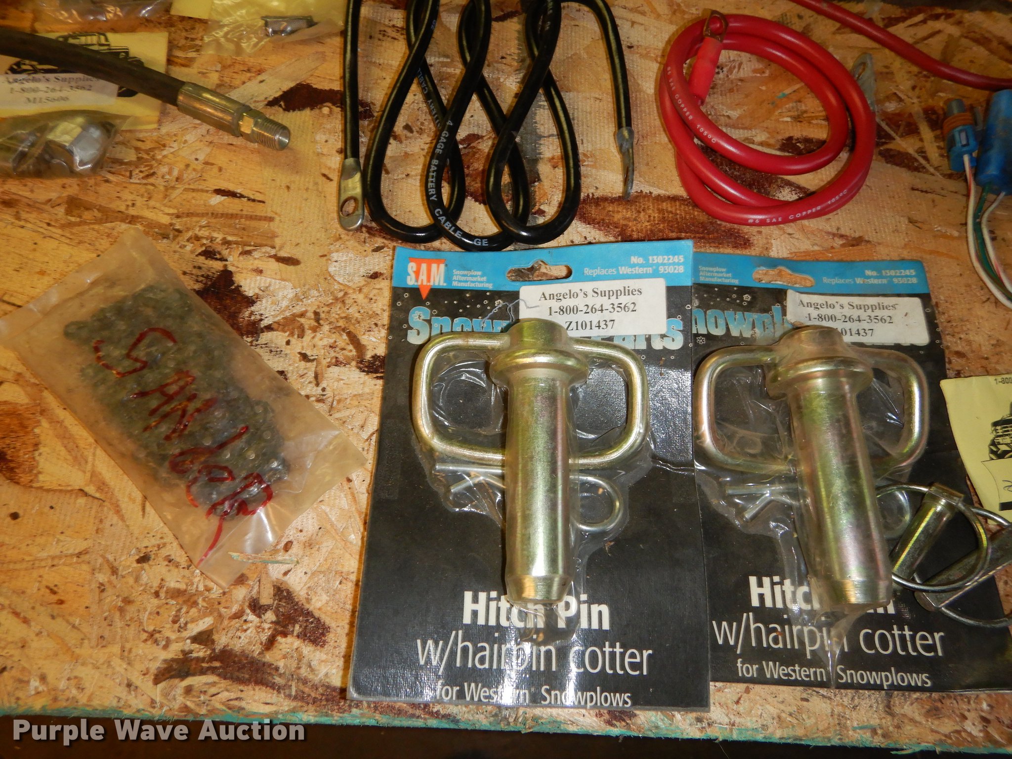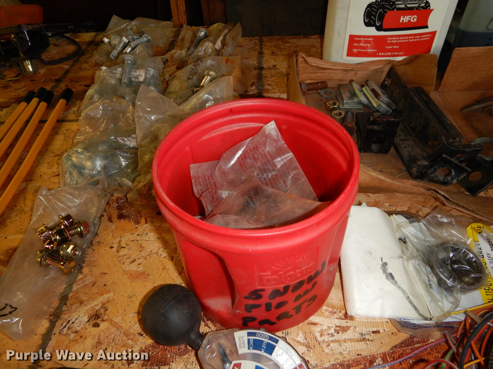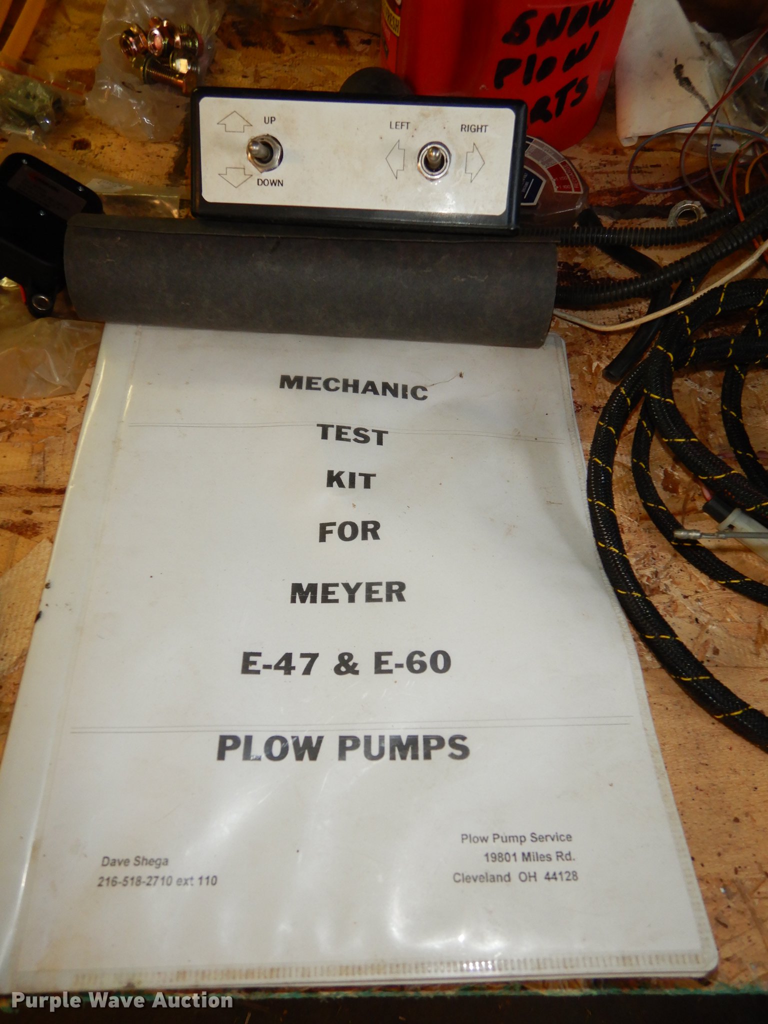 Purple Wave is selling a used Truck Part and Attach. in Kansas. This item is a Snow plow parts with the following: Lights, Strip light, Shoe, Cylinders, Springs, Solenoids, Hitch pins, Cables, Test kit, Wiring, Pins, Hose connectors, Starter motor, Bolts, Hydraulic oil, Multi-tester, Fits Meyer E47 and E60 blades