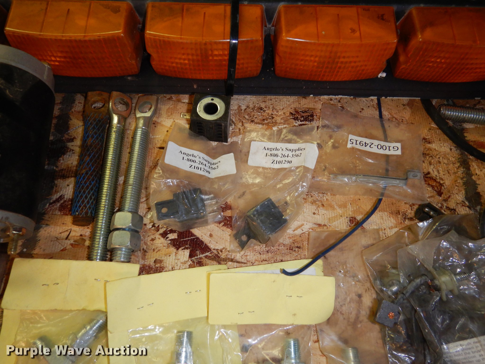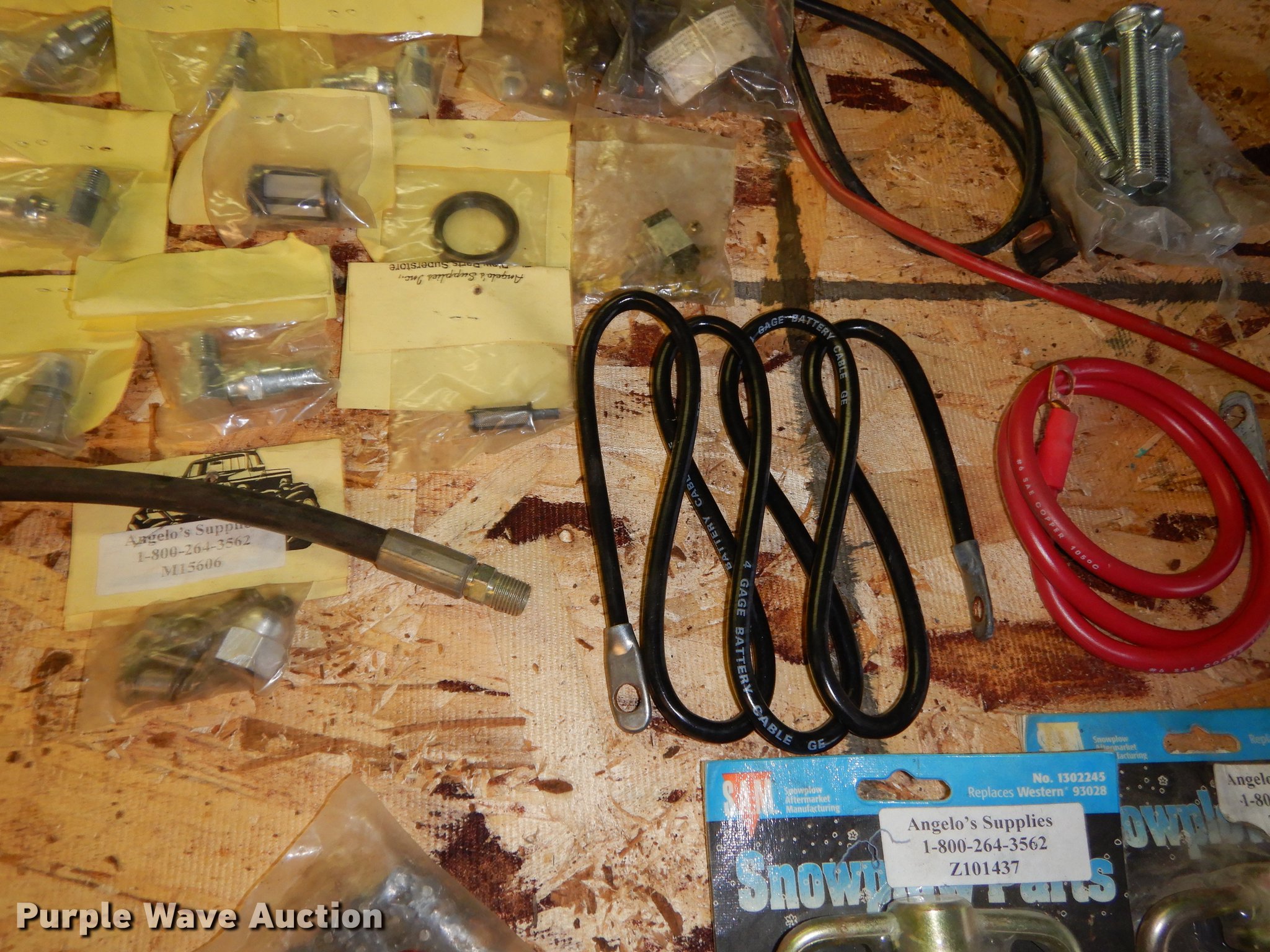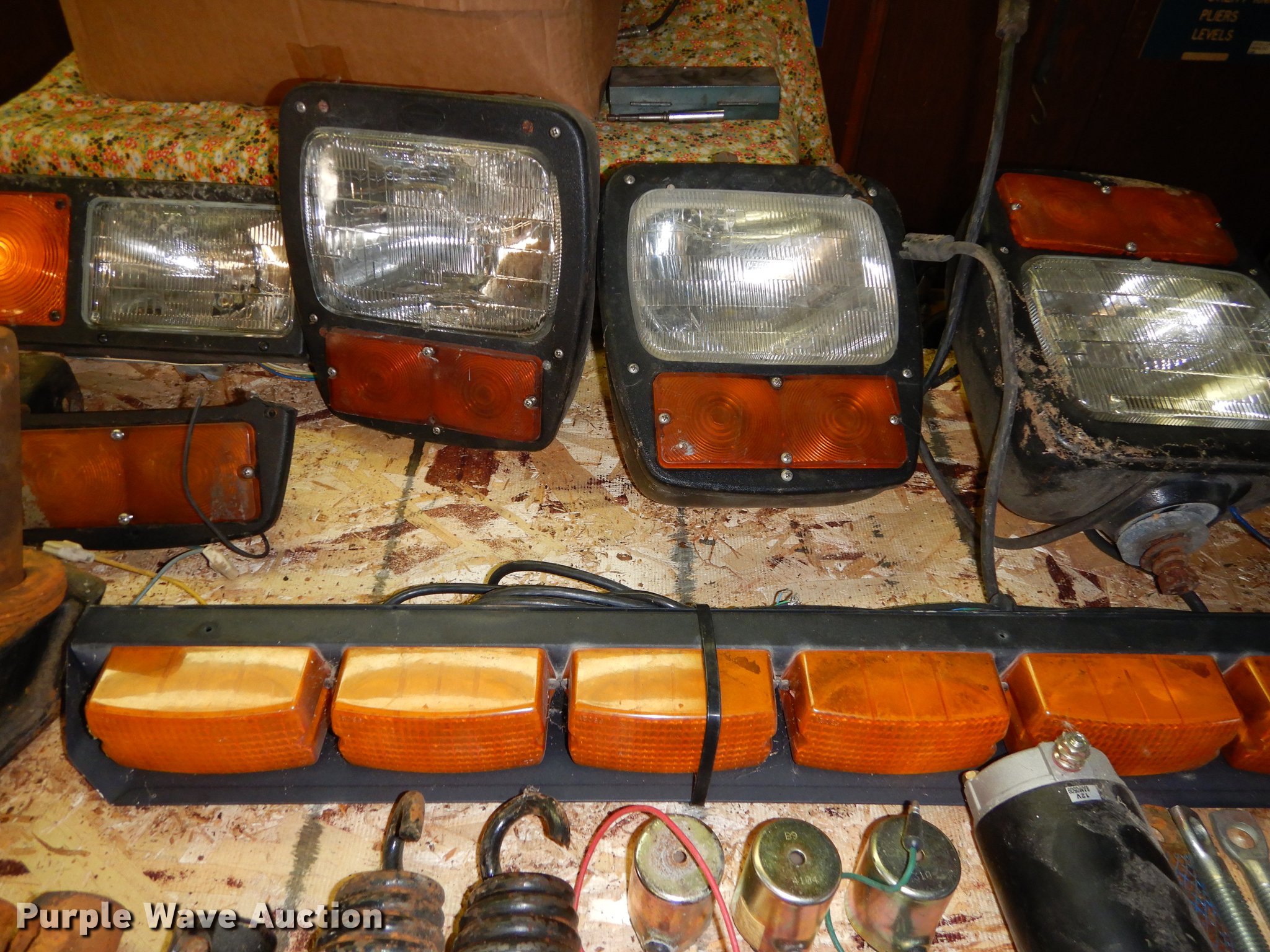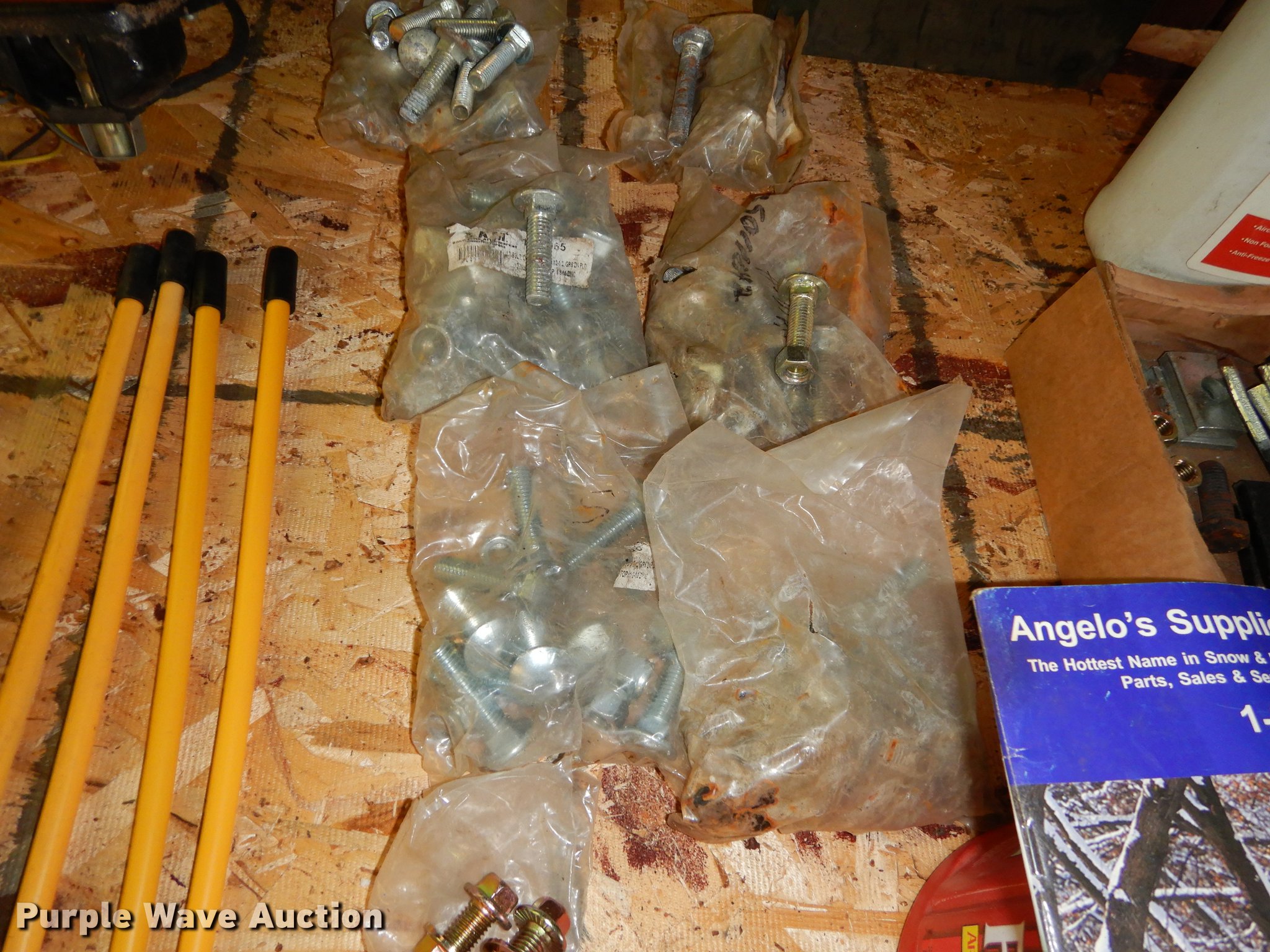 Purple Wave is selling a used Truck Part and Attach. in Kansas. This item is a Snow plow parts with the following: Lights, Strip light, Shoe, Cylinders, Springs, Solenoids, Hitch pins, Cables, Test kit, Wiring, Pins, Hose connectors, Starter motor, Bolts, Hydraulic oil, Multi-tester, Fits Meyer E47 and E60 blades