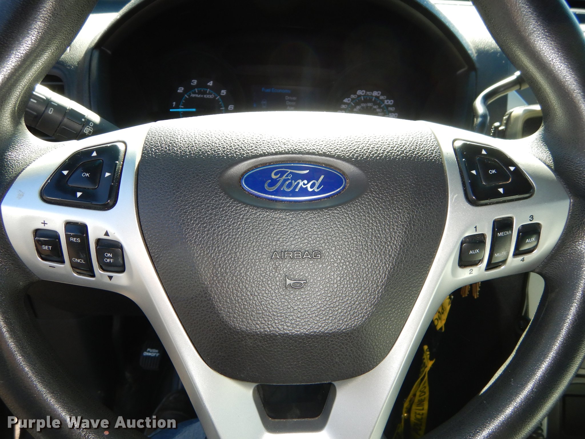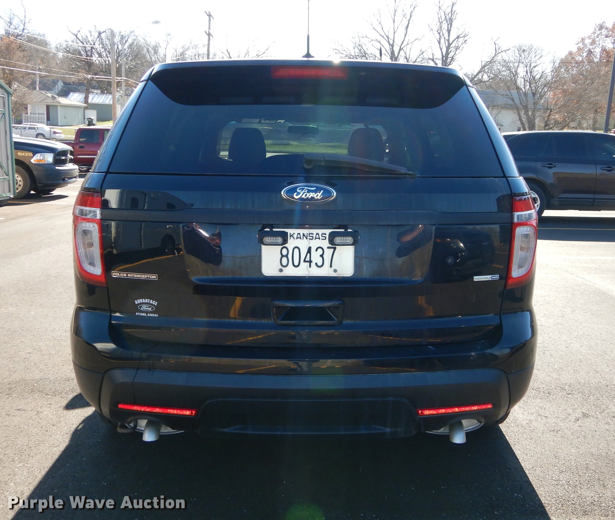 Purple Wave is selling a used Passenger Vehicle in Kansas. This item is a 2013 Ford Explorer police interceptor SUV with the following: 101,599 miles on odometer, Miles may vary, still in use, 3.7L V6 DOHC 24V gas engine, Automatic transmission, All wheel drive, AC and heat, Tilt, Cruise, Power windows, locks, mirrors, and seats, Cloth front interior, Vinyl rear interior, Spotlight, 245/65R18 tires, Police equipment and lights not included, Front LED light bar not included, Possible transmission issue