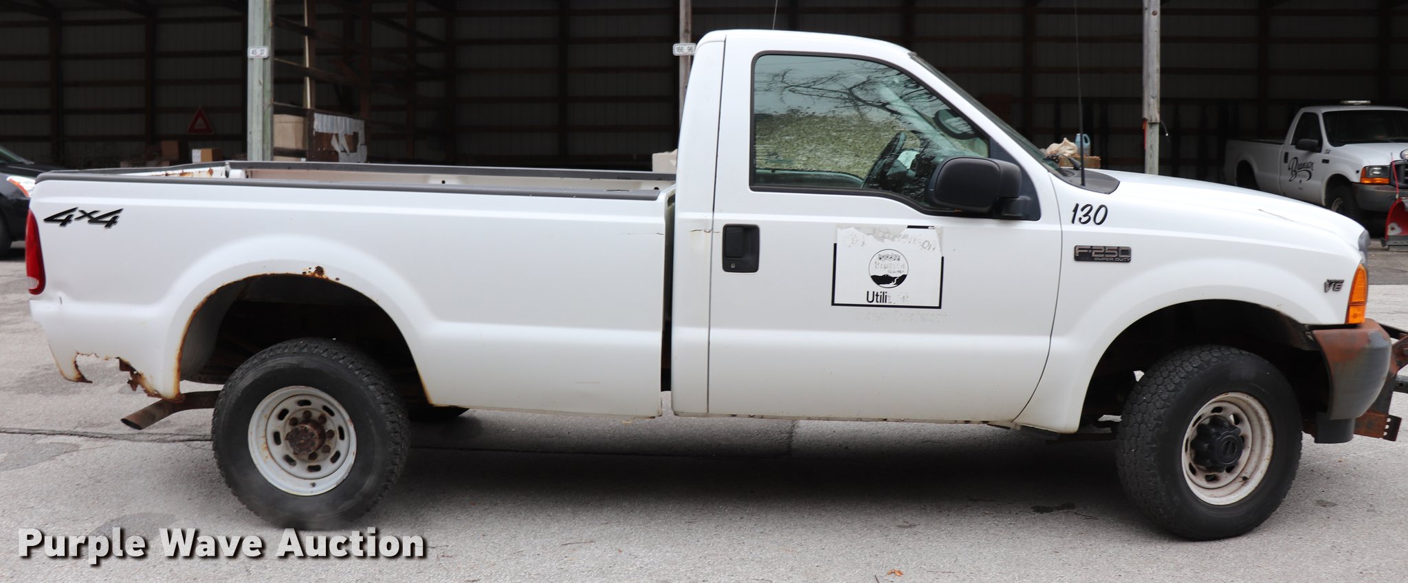 Purple Wave is selling a used 3/4 or 1 Ton Pickup or Van in Missouri. This item is a 2001 Ford F250 Super Duty pickup truck with the following: 166,812 miles on odometer, 5.4L V8 SOHC 16V gas engine, Automatic transmission, Four wheel drive, AC and heat, Tilt, Cruise, Manual windows and locks, Vinyl interior, Long bed, Receiver hitch, 245/75R16 tires, Rear bumper missing, Cracked windshield, Unit# 130