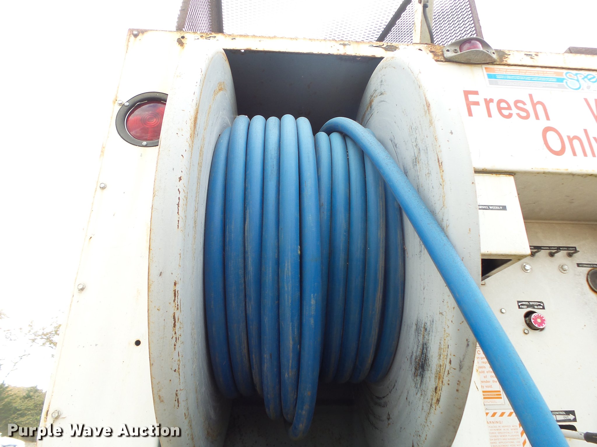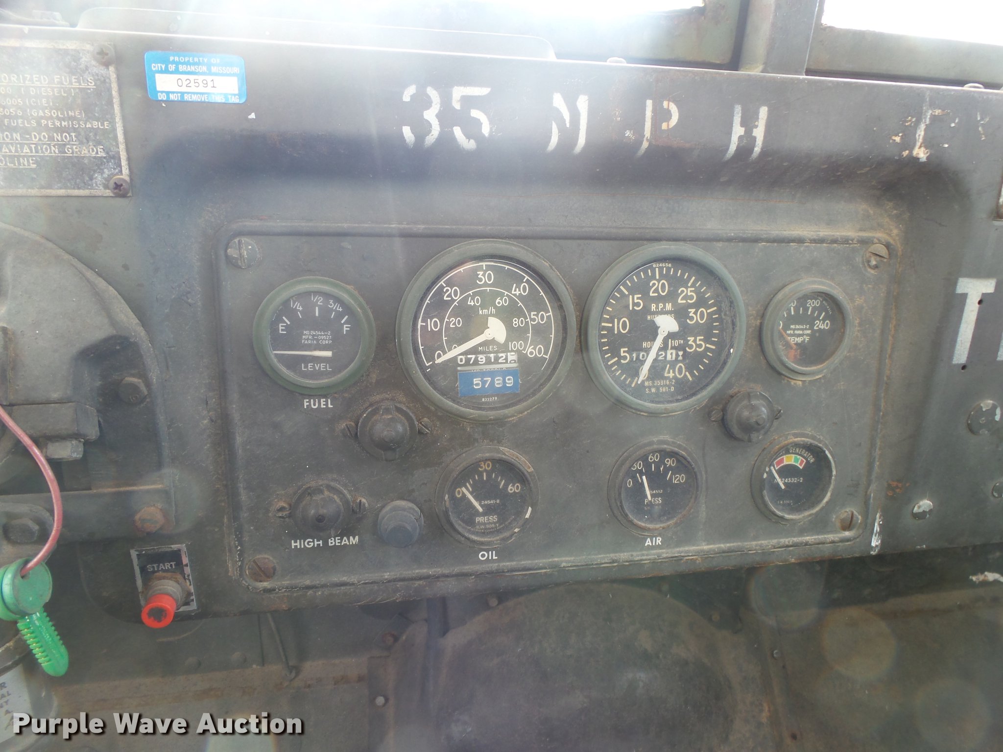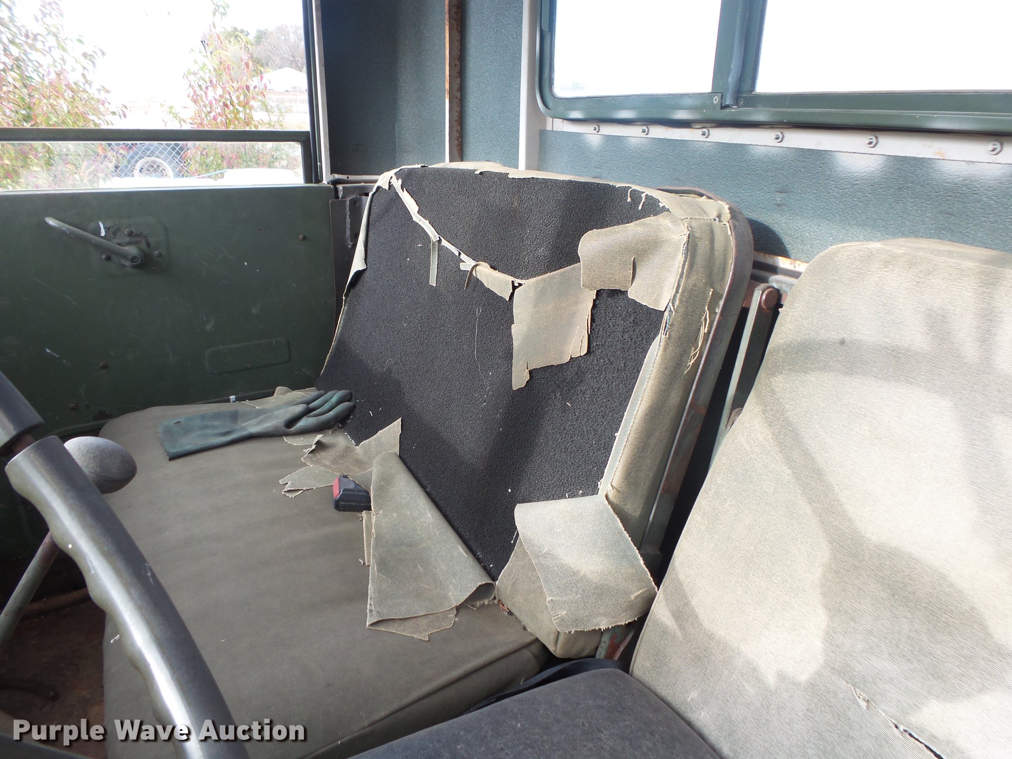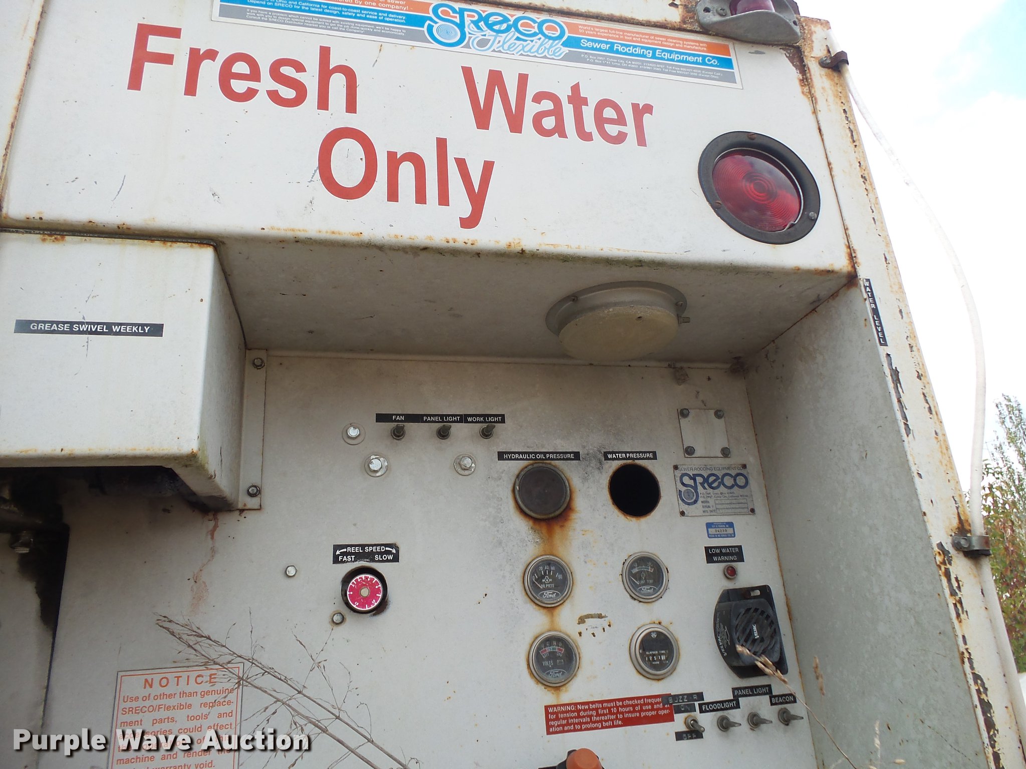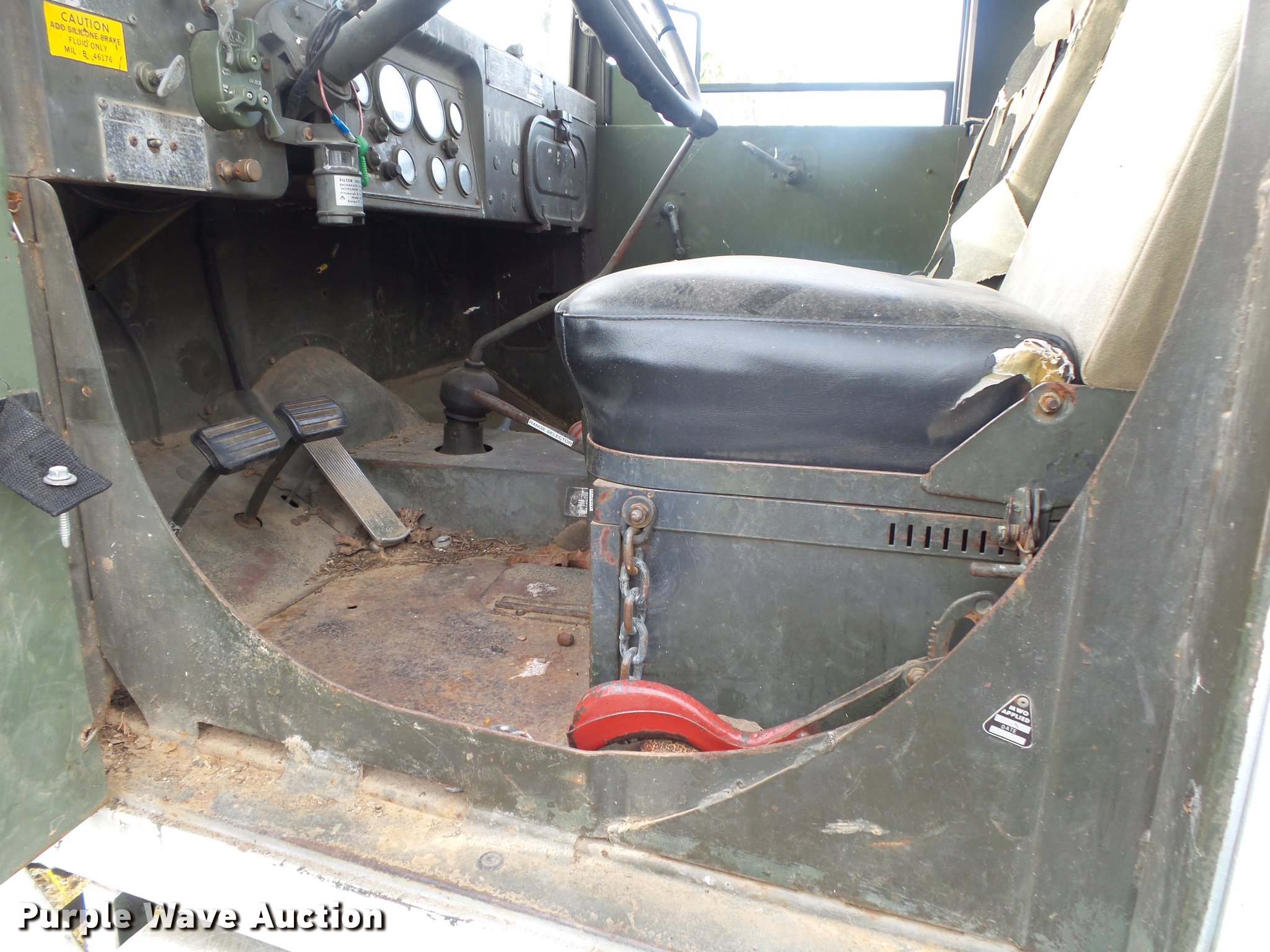Purple Wave is selling a used Vacuum Truck in Missouri. This item is a 1967 Kaiser M44 sewer rodding truck with the following: 7,912 miles on odometer, 1,092 hours on meter, Six cylinder turbo gas engine, Five speed manual transmission, Tandem axle, Rear work lights, Front tow hooks, Front mounted winch, 20 ton capacity, Flusher pump unit, Four cylinder gas engine, 1990 Sreco pump, 1,251 hours on meter, 200 gallon holding tank, Model 1HV1800TR, Hose, Reel, Single fuel tank, Spring suspension, Hydraulic brakes, 9.00-20 tires, Non-operational flusher pump, Windshield cracked, Driver's side window missing, Unit# 144