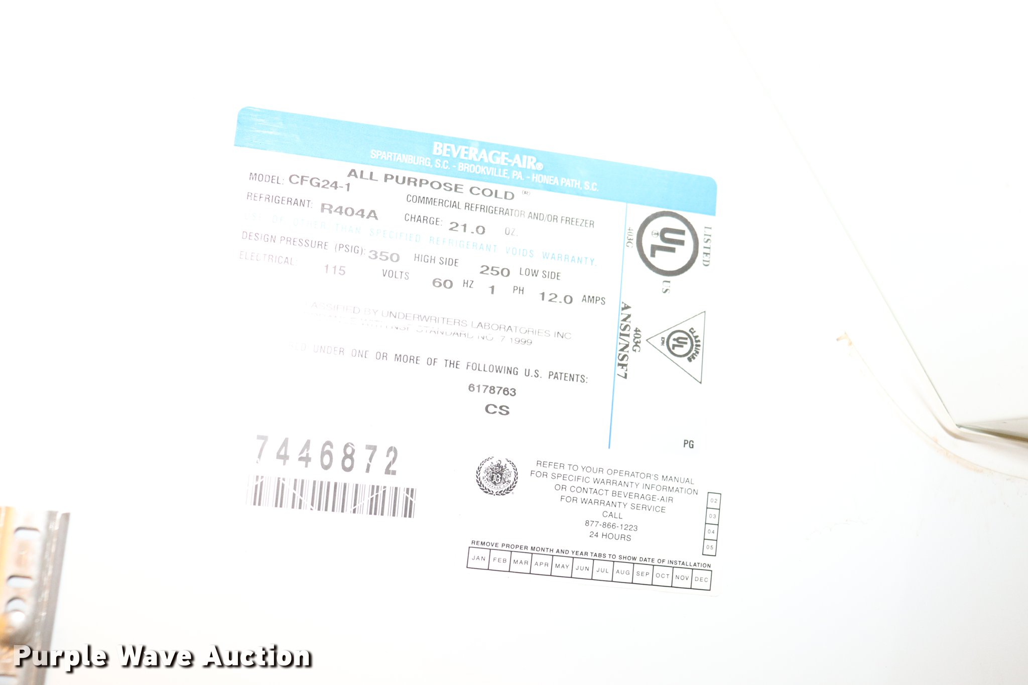 Purple Wave is selling a used Restaurant Equip. in Missouri. This item is a Restaurant equipment with the following: Nacho cheese and chili dispensers, Model Sierra, Serial M1032423, Model 5503, Serial GM003310,, Microwave, Model AT1350, Serial 509000396, (2) sets of three slushie dispensers, Model 04-SA, Serials 100338964, 100338965,, (2) Beverage Air coolers, Model MT23, Serial 6977558, Model CFG24-1, Serial 7446872, 78" x 27.5", 78.5" x 25.75", Casters, Unknown operating conditions