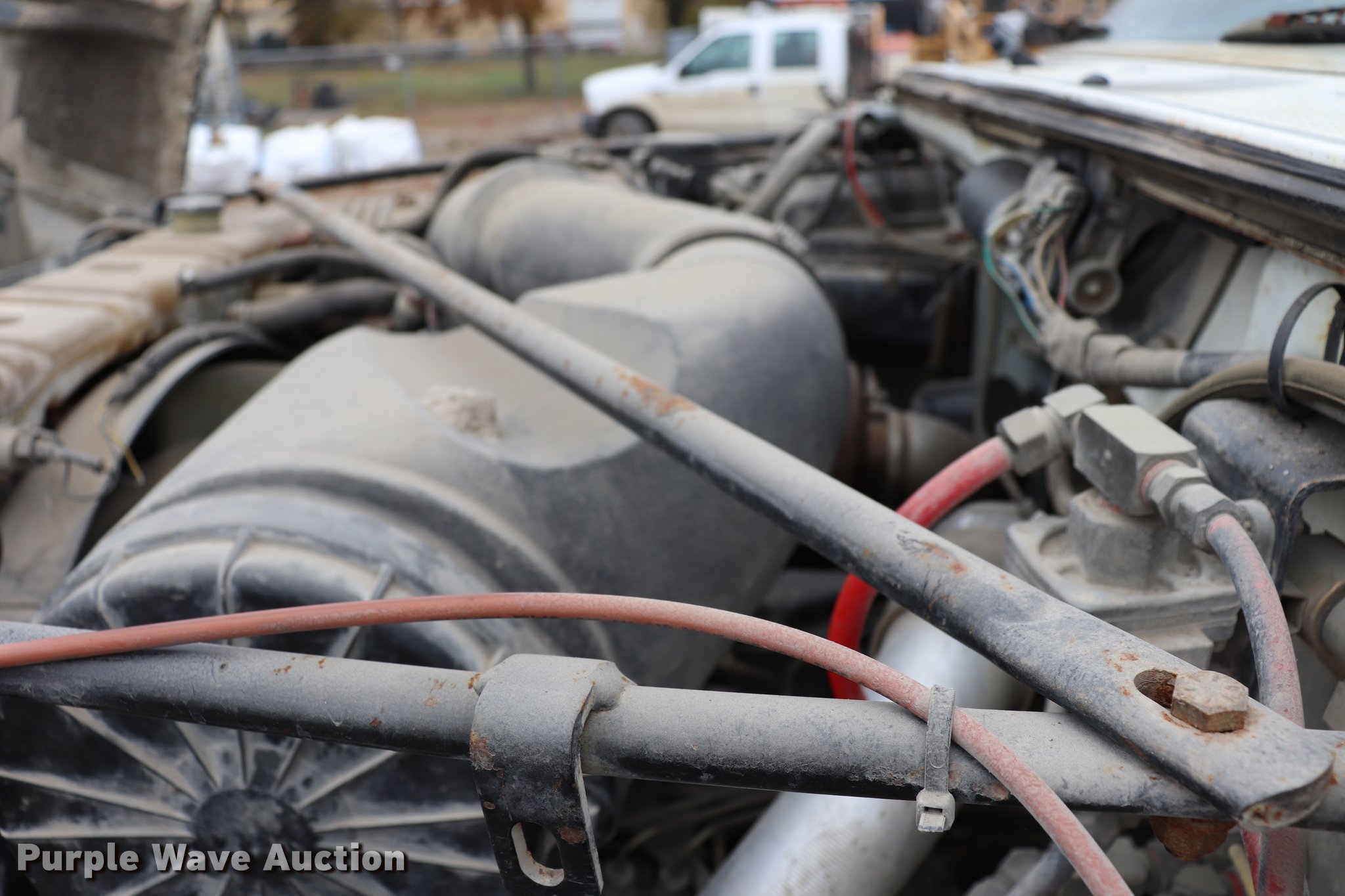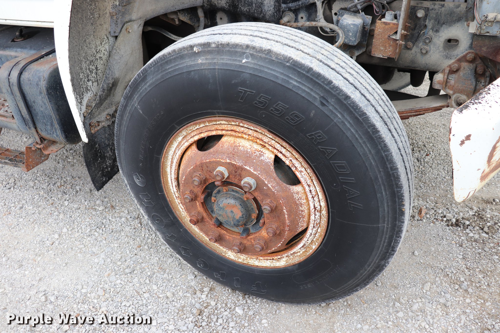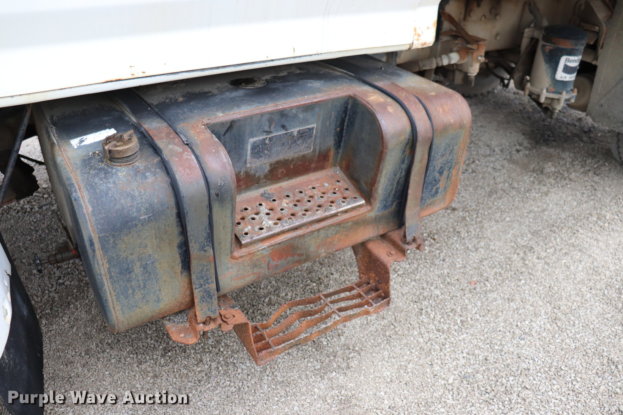 Purple Wave is selling a used Construction Dump Truck in Kansas. This item is a 1994 Ford F800 dump truck with the following: 158,391 miles on odometer, Cummins ISC 8.3L L6 diesel engine, Five speed manual transmission, Single axle, AC and heat, AM/FM, Suspension seat, Block heater, PTO, Heil SLT5YD10 steel dump bed, 128"L x 96"W, 28" side height, 7" side board height, Roll tarp, Manual end gate, Single ram hoist, Dual fuel tanks, Pintle hitch, Spring suspensin, Air brakes, 156" wheelbase, 10.00R20 tires, GVWR 31,500 lbs, Crafco unit and two-way radio not included, Unit# A54