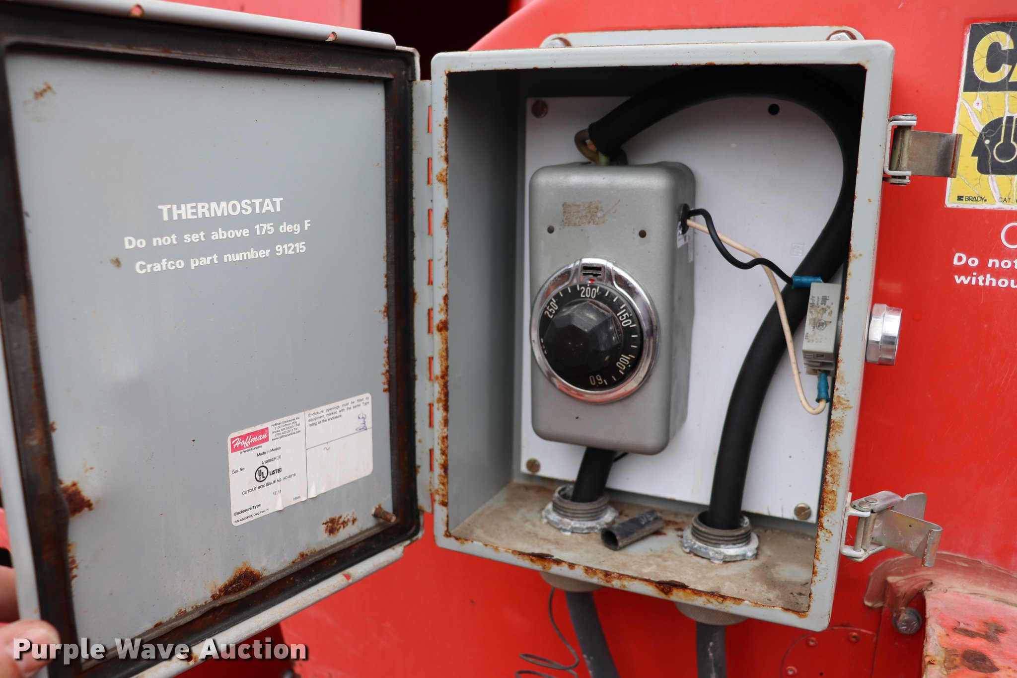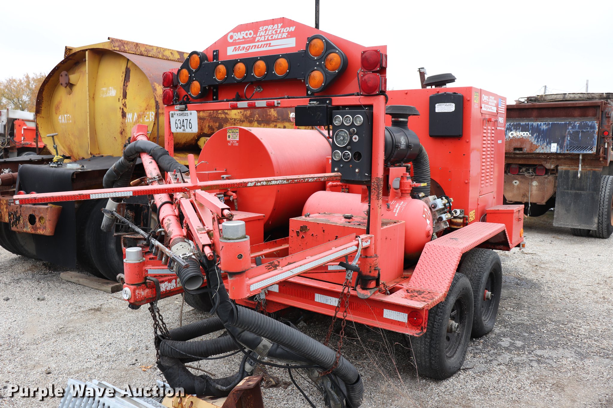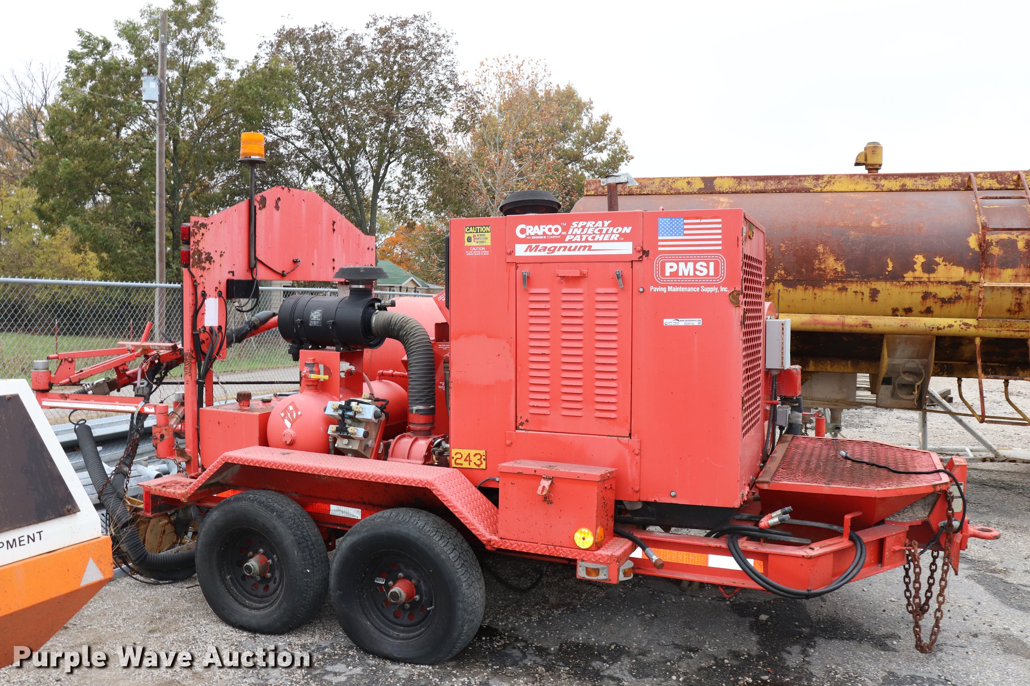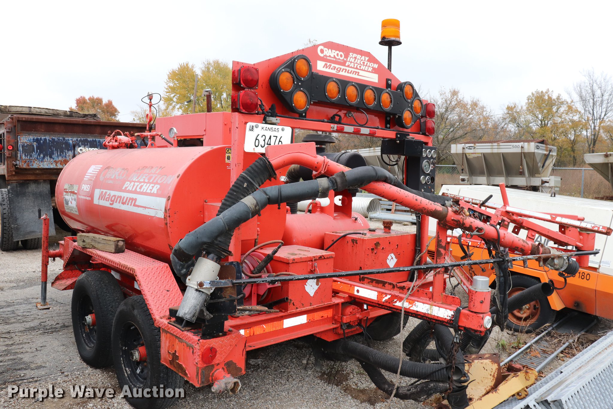 Purple Wave is selling a used Pot Hole Patcher in Kansas. This item is a 2004 Crafco pot hole patcher with the following: 1,095 hours on meter, Four cylinder diesel engine, Hydraulic drive, Warning lights, Pintle hitch, Single leg landing gear, 225/75R15 tires, Unit# AP-1