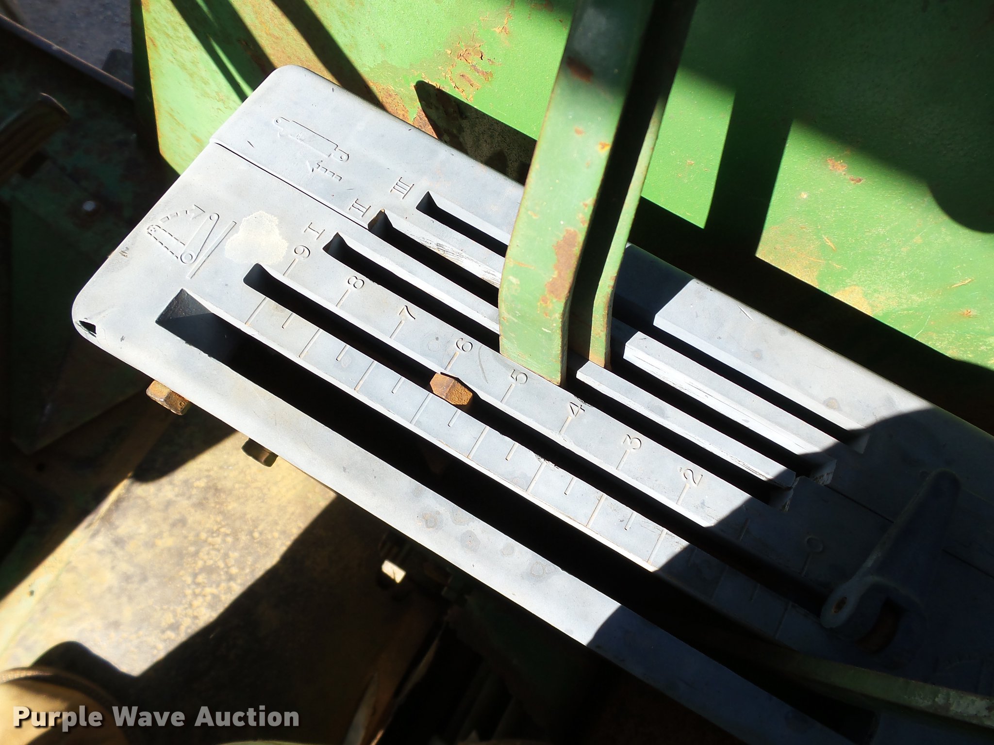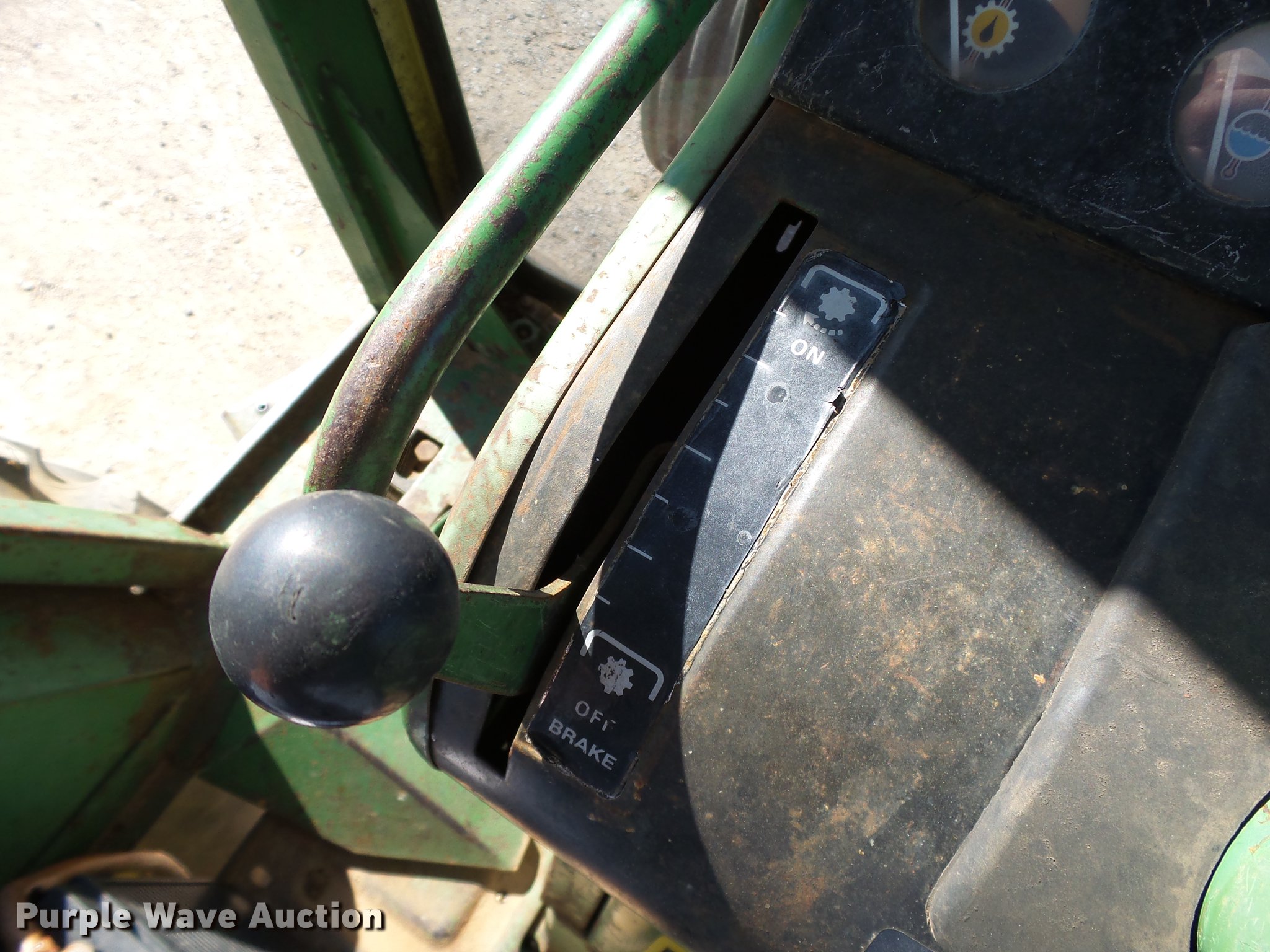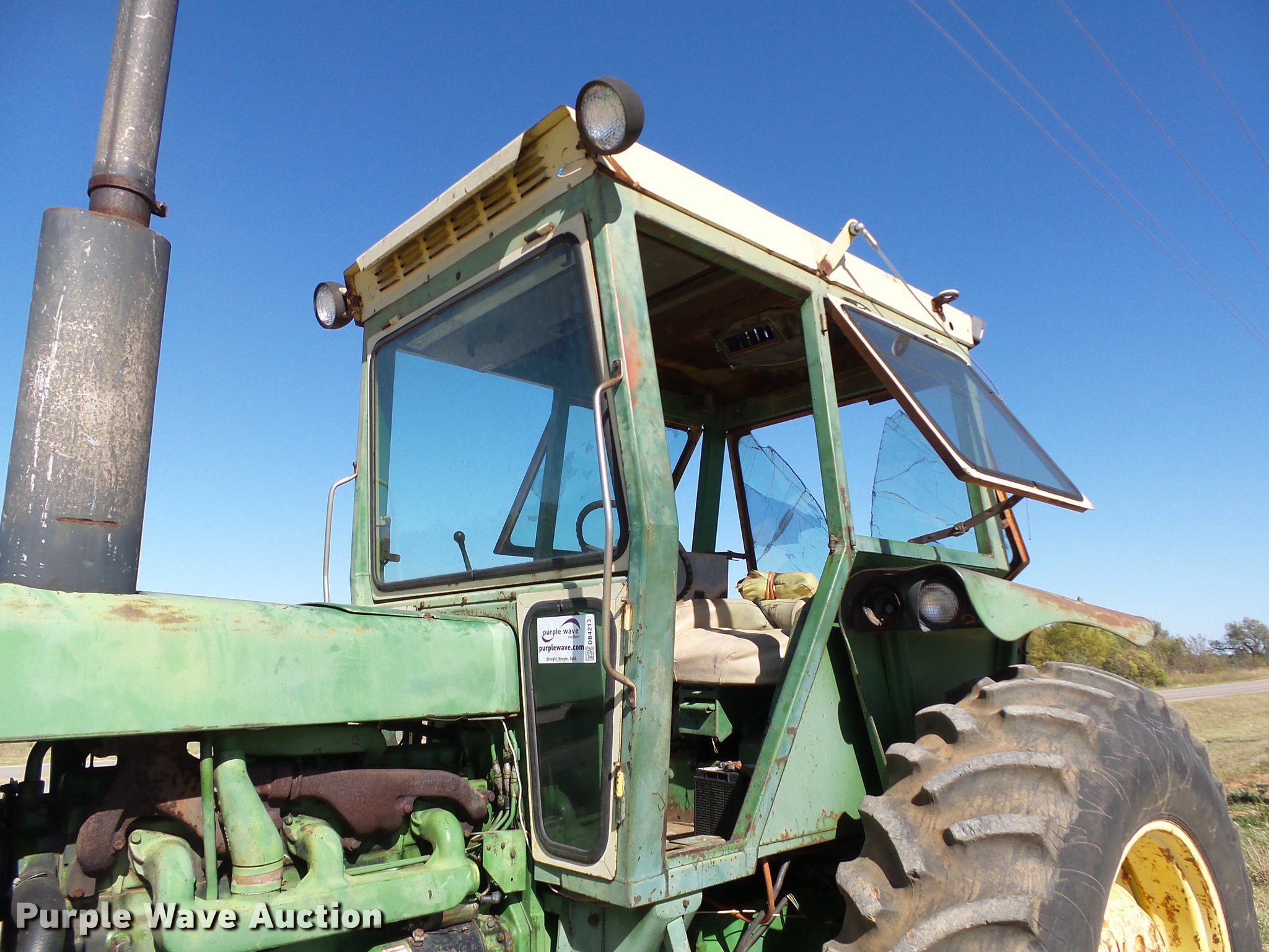 Purple Wave is selling a used Tractor in Oklahoma. This item is a 1969 John Deere 4520 tractor with the following: 8,772 hours on meter, John Deere 6.6L six cylinder turbo diesel engine, 120 HP, Serial M25R0225574R, Syncro-Range transmission, 8F-2R gears, Work lights, Three point, 1000 PTO, Draw bar, (2) rear hydraulic remote sets, 106" wheelbase, 10.00-16SL front tires, 18.4-38 rear tires, Serial T813R004244R