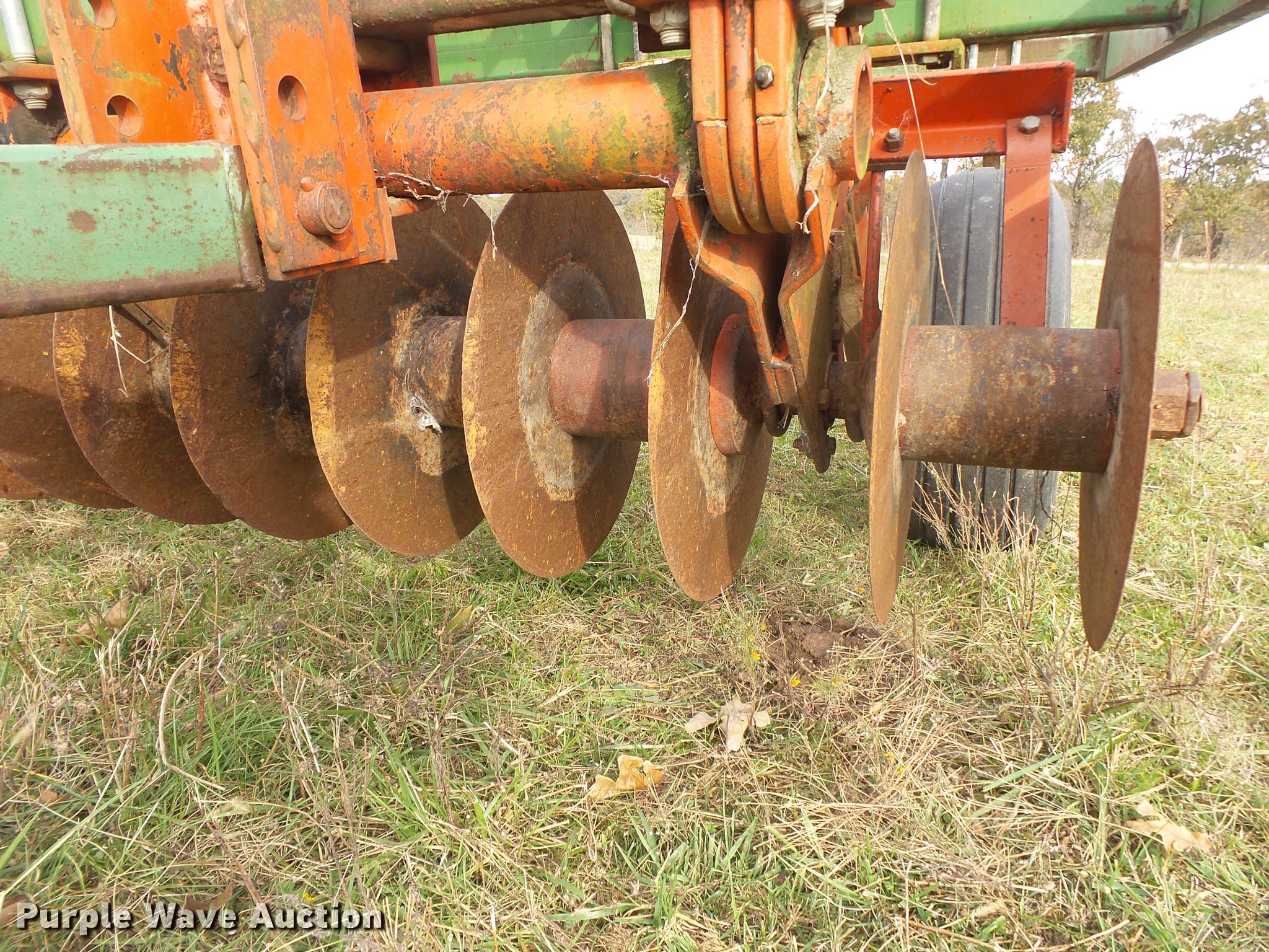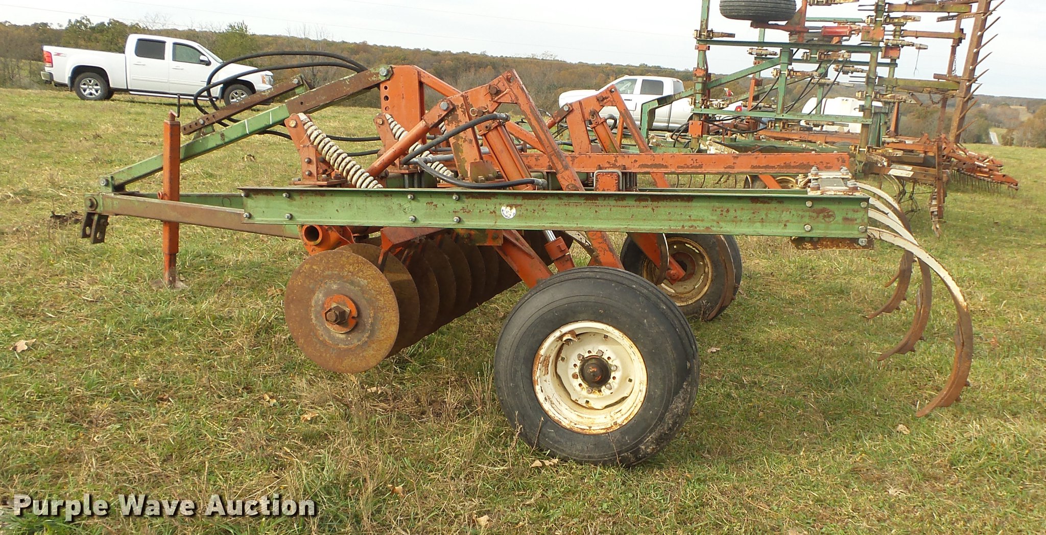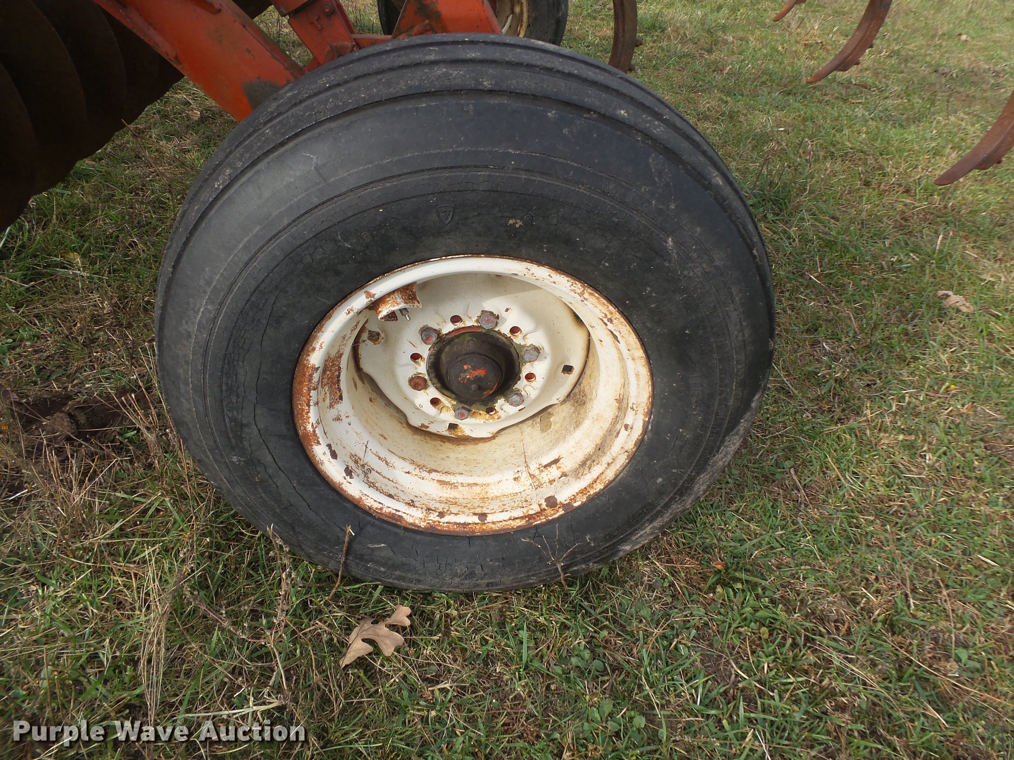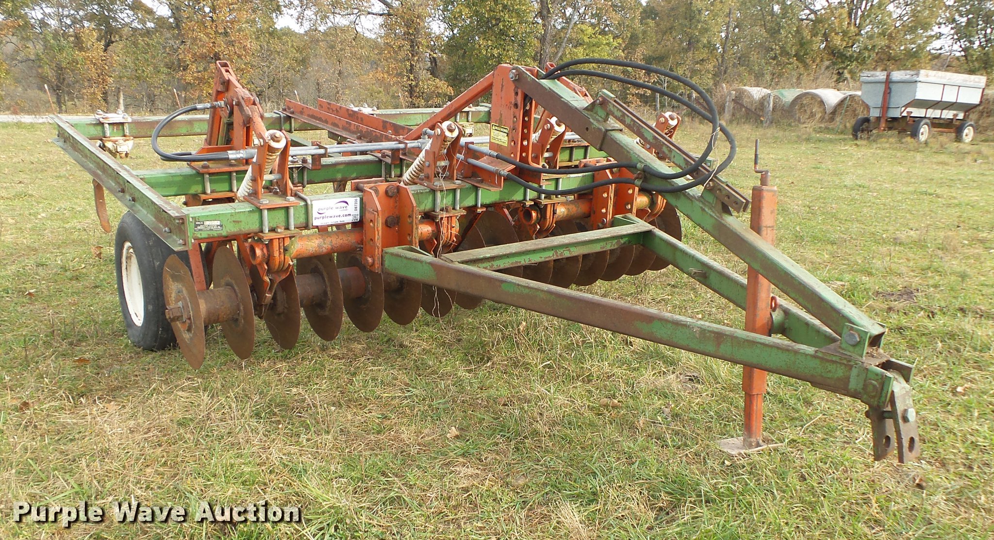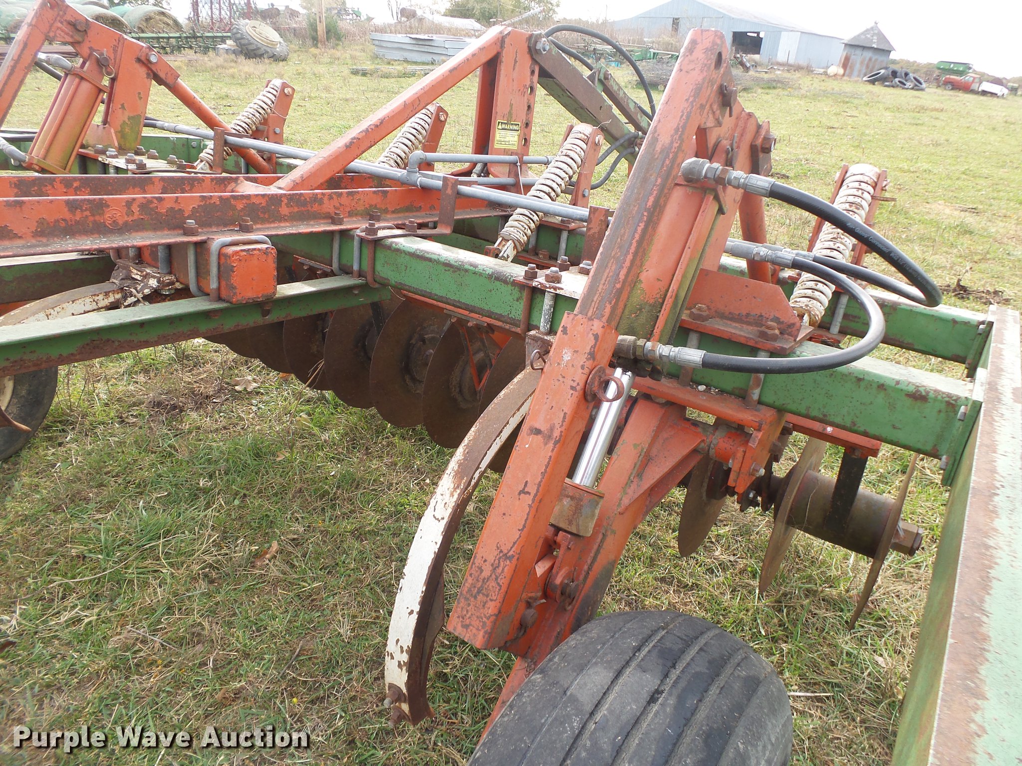 Purple Wave is selling a used Chisel in Missouri. This item is a Glencoe Soil Saver chisel with the following: 9.5'W, 18" diameter front disks, 8" spacing, Disk scrapers, (7) 2"W sweeps, 18" spacing, Hydraulic lift, Pin/clevis hitch, 11L-15 tires, Tires weather cracked, Serial 122702