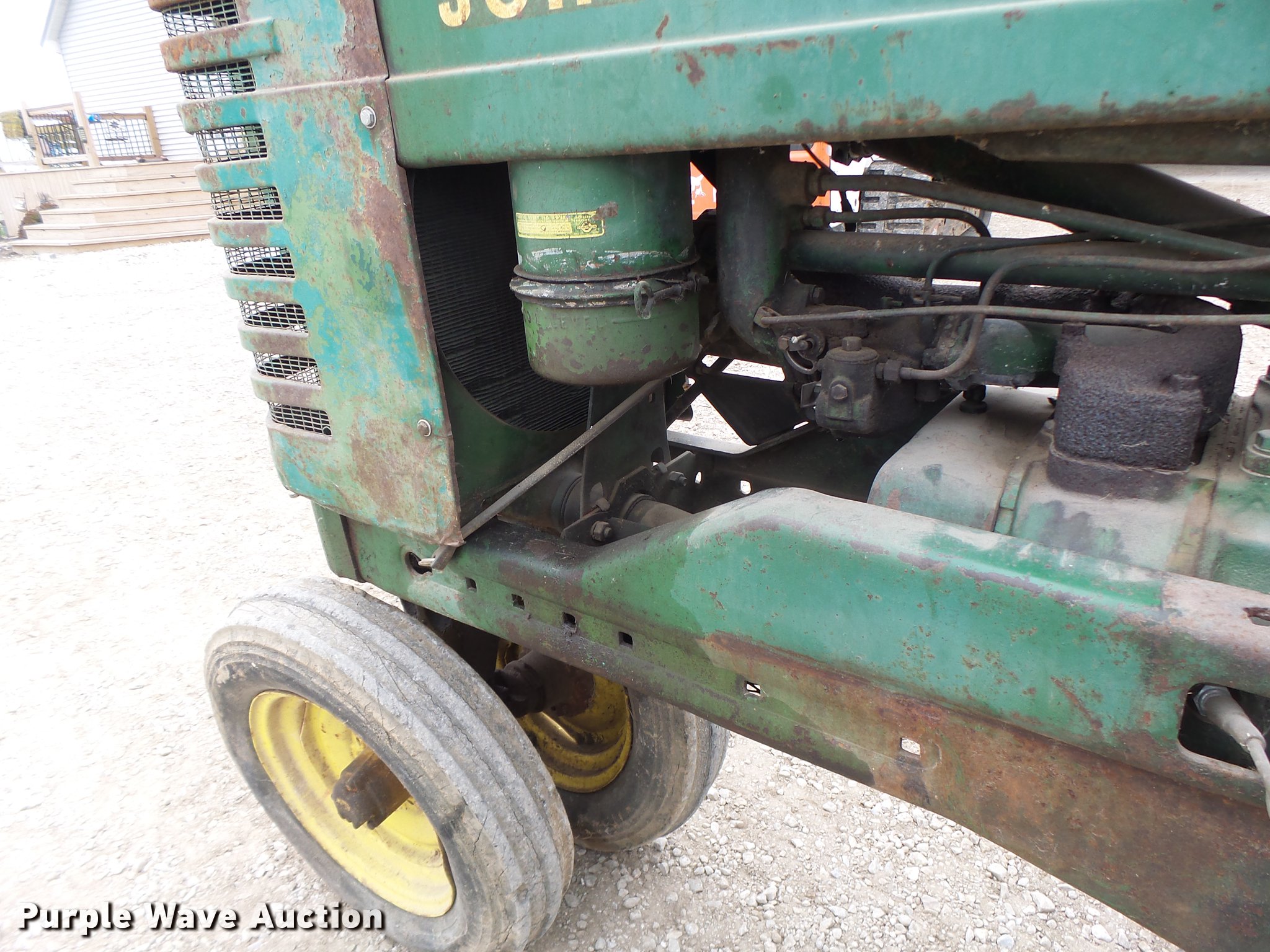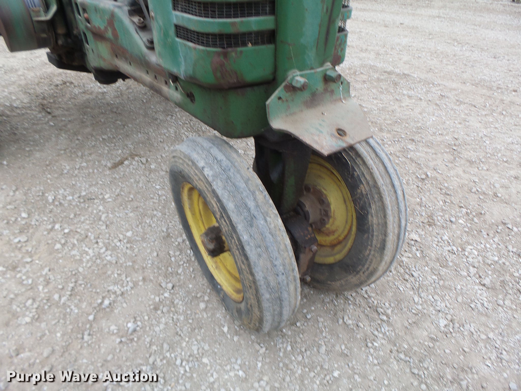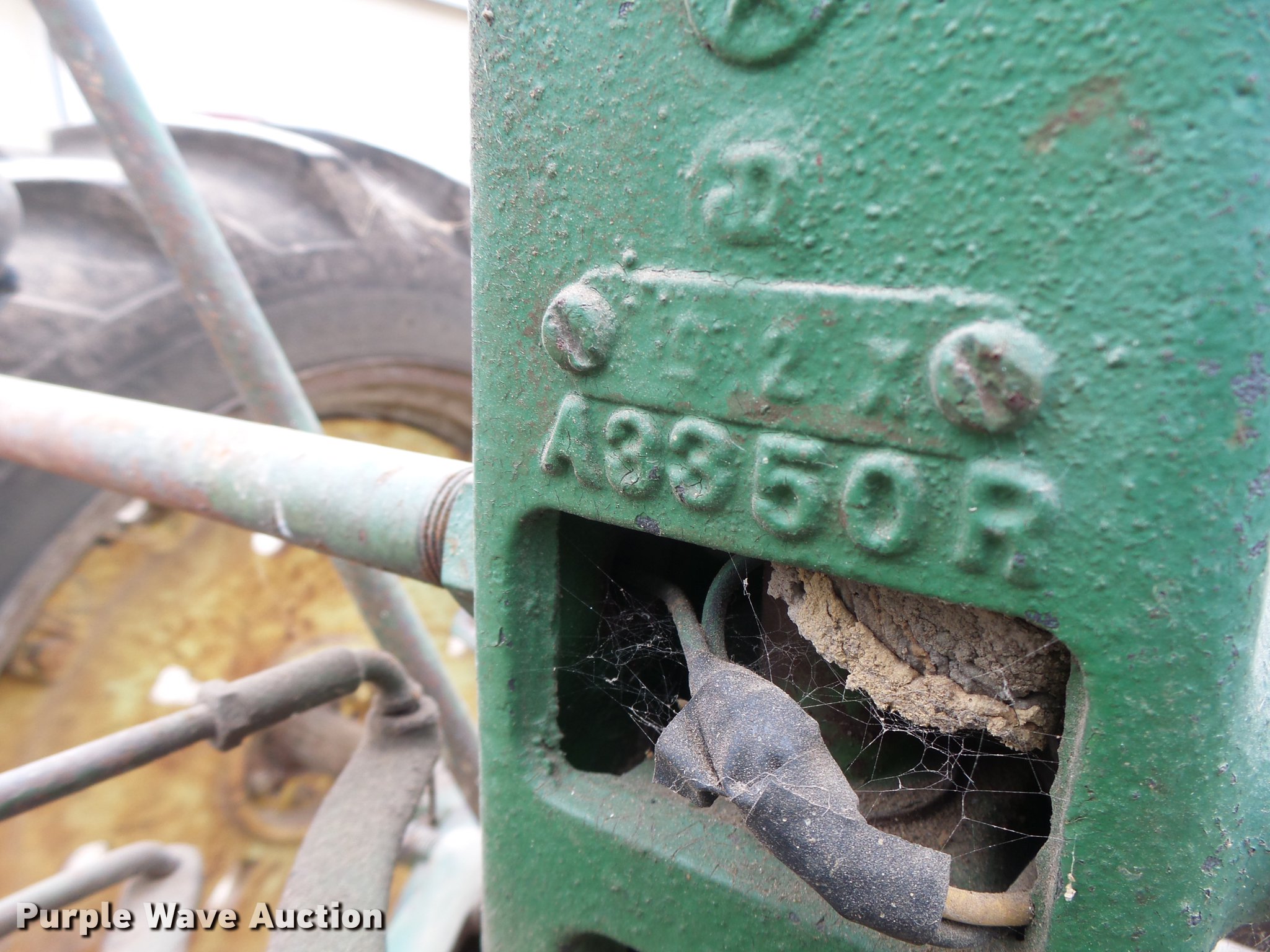 Purple Wave is selling a used Tractor in Missouri. This item is a John Deere A tractor with the following: John Deere gas engine, Manual transmission, 6F-1R gears, 13.6-38 rear tires, Serial 684094