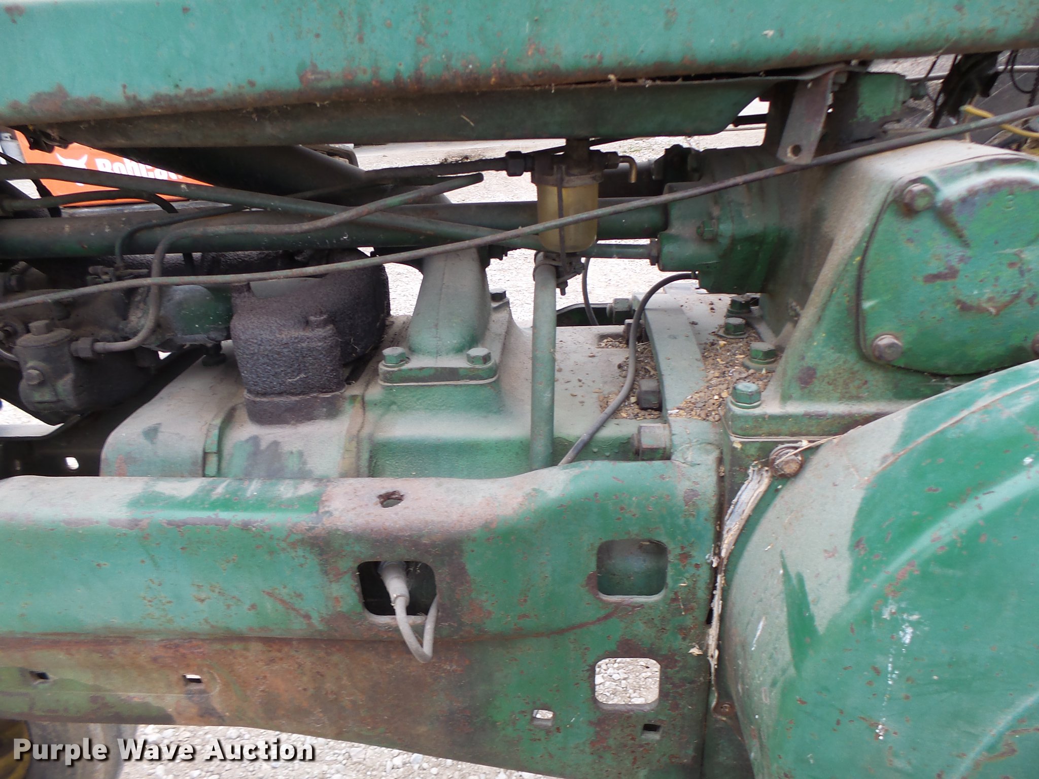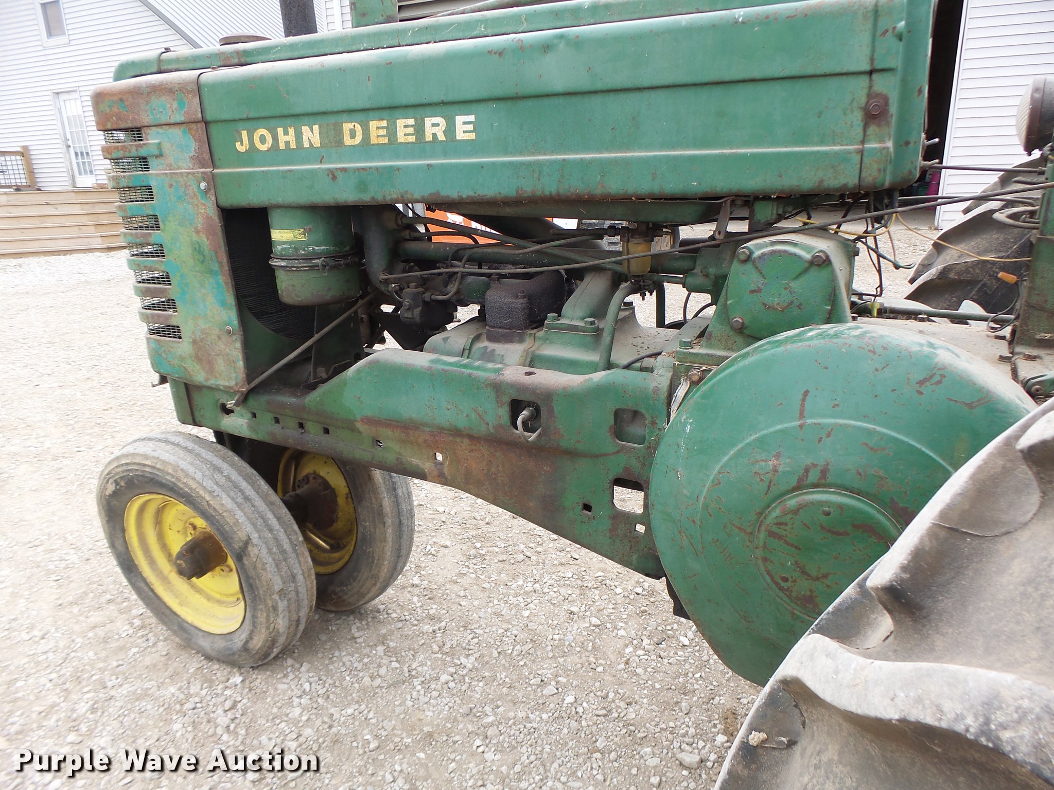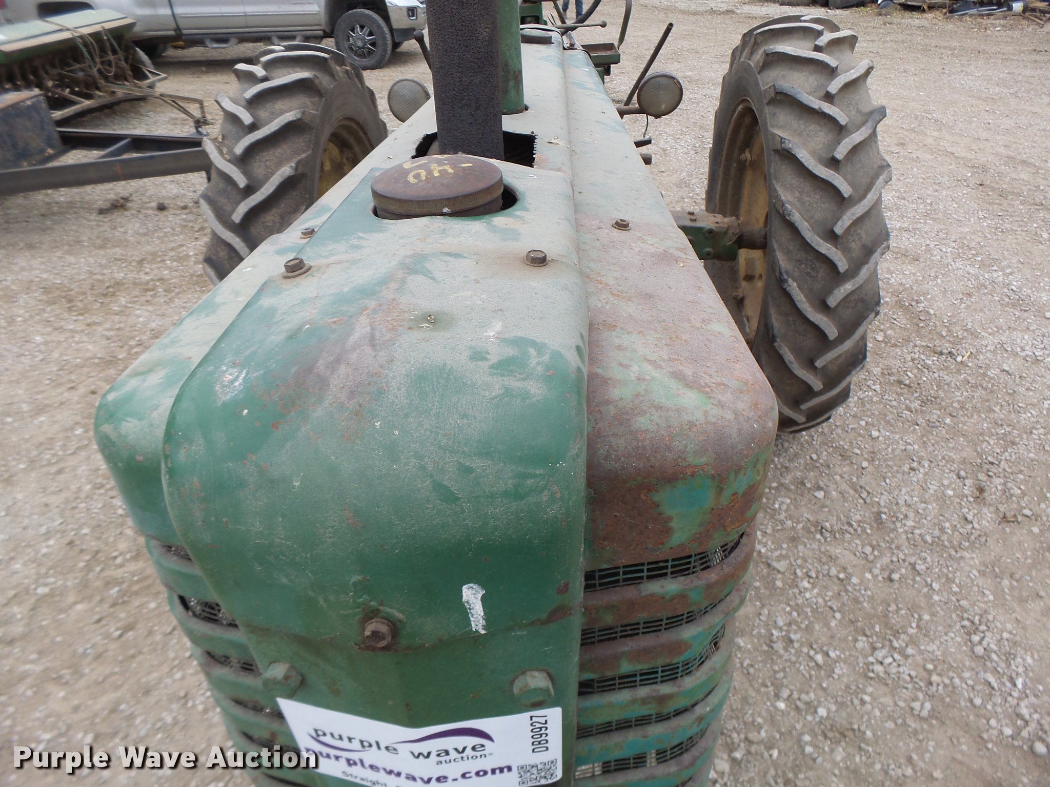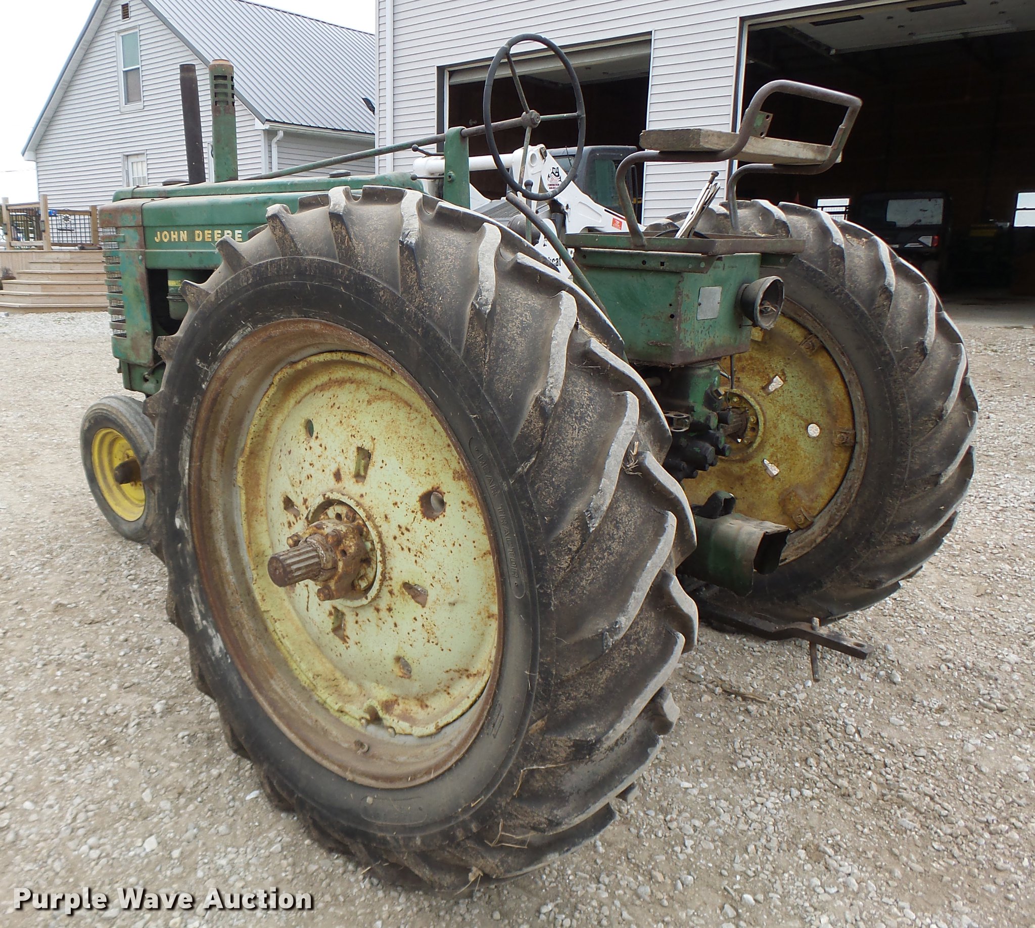 Purple Wave is selling a used Tractor in Missouri. This item is a John Deere A tractor with the following: John Deere gas engine, Manual transmission, 6F-1R gears, 13.6-38 rear tires, Serial 684094