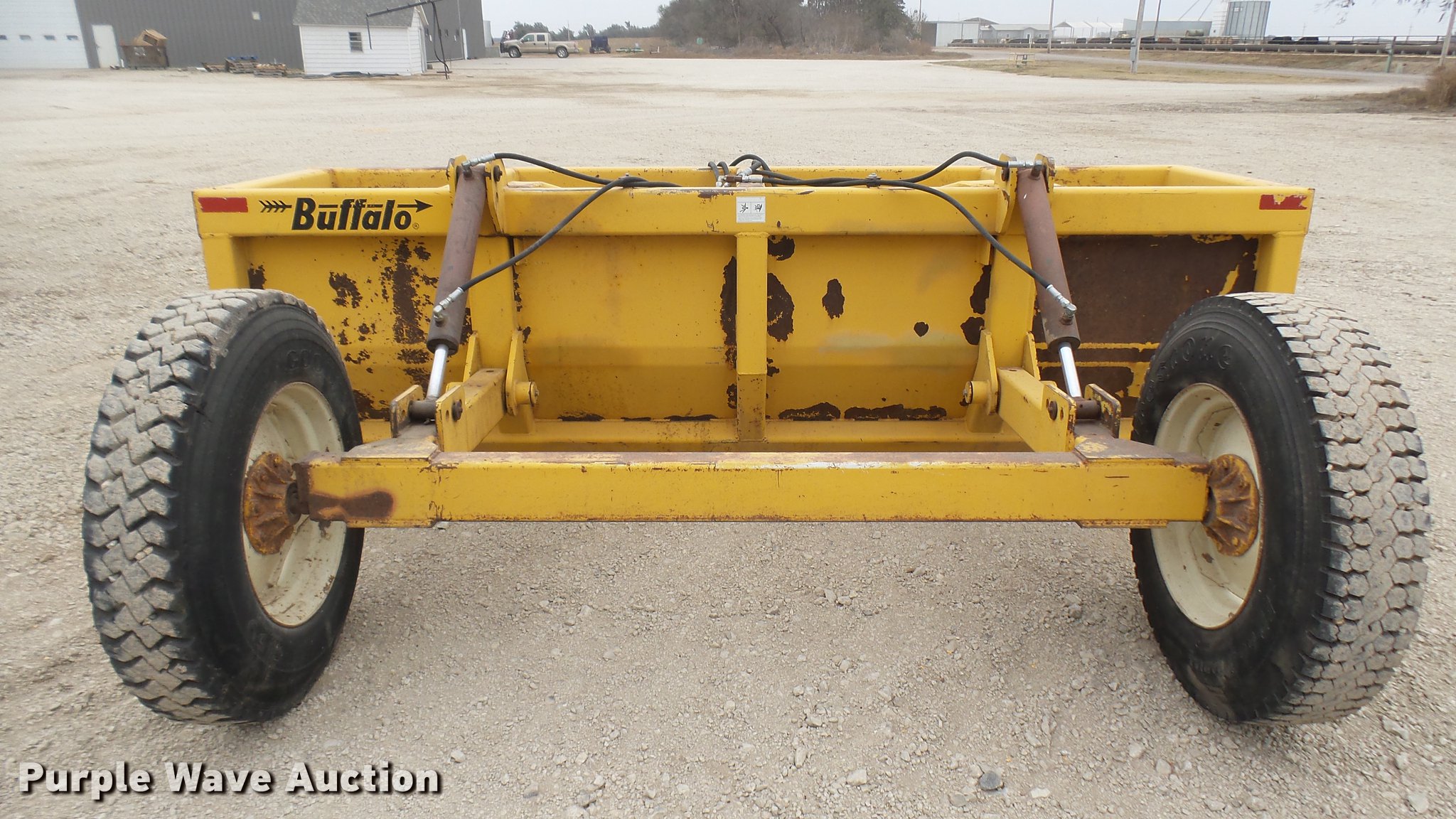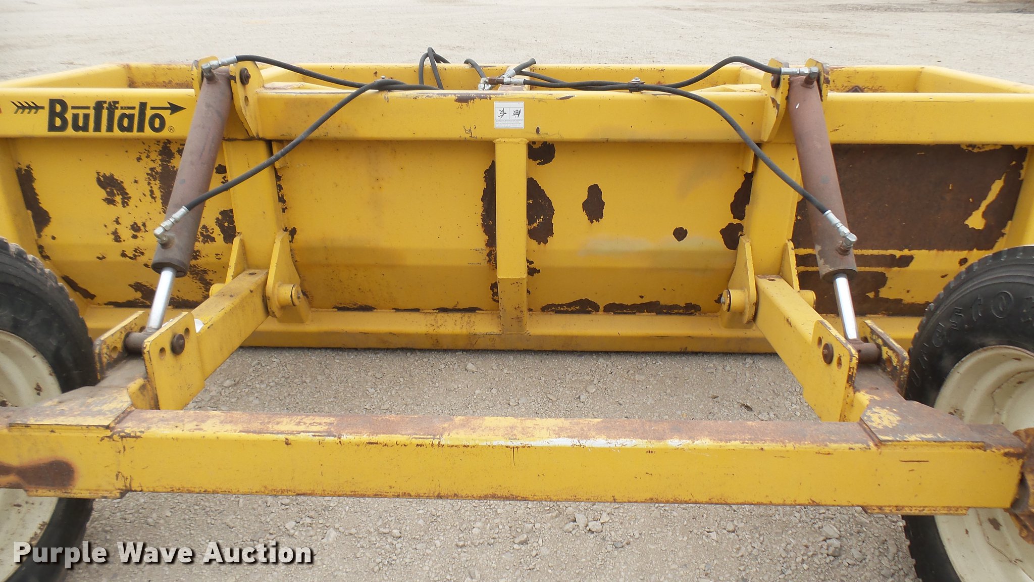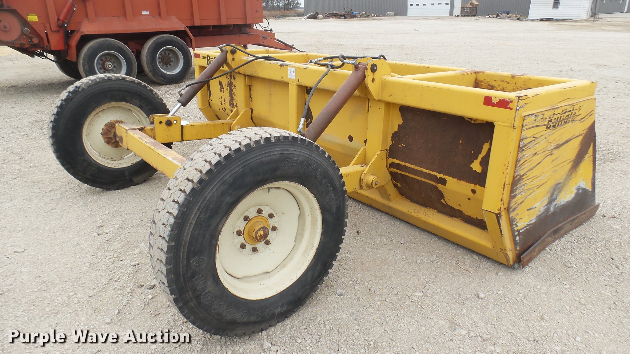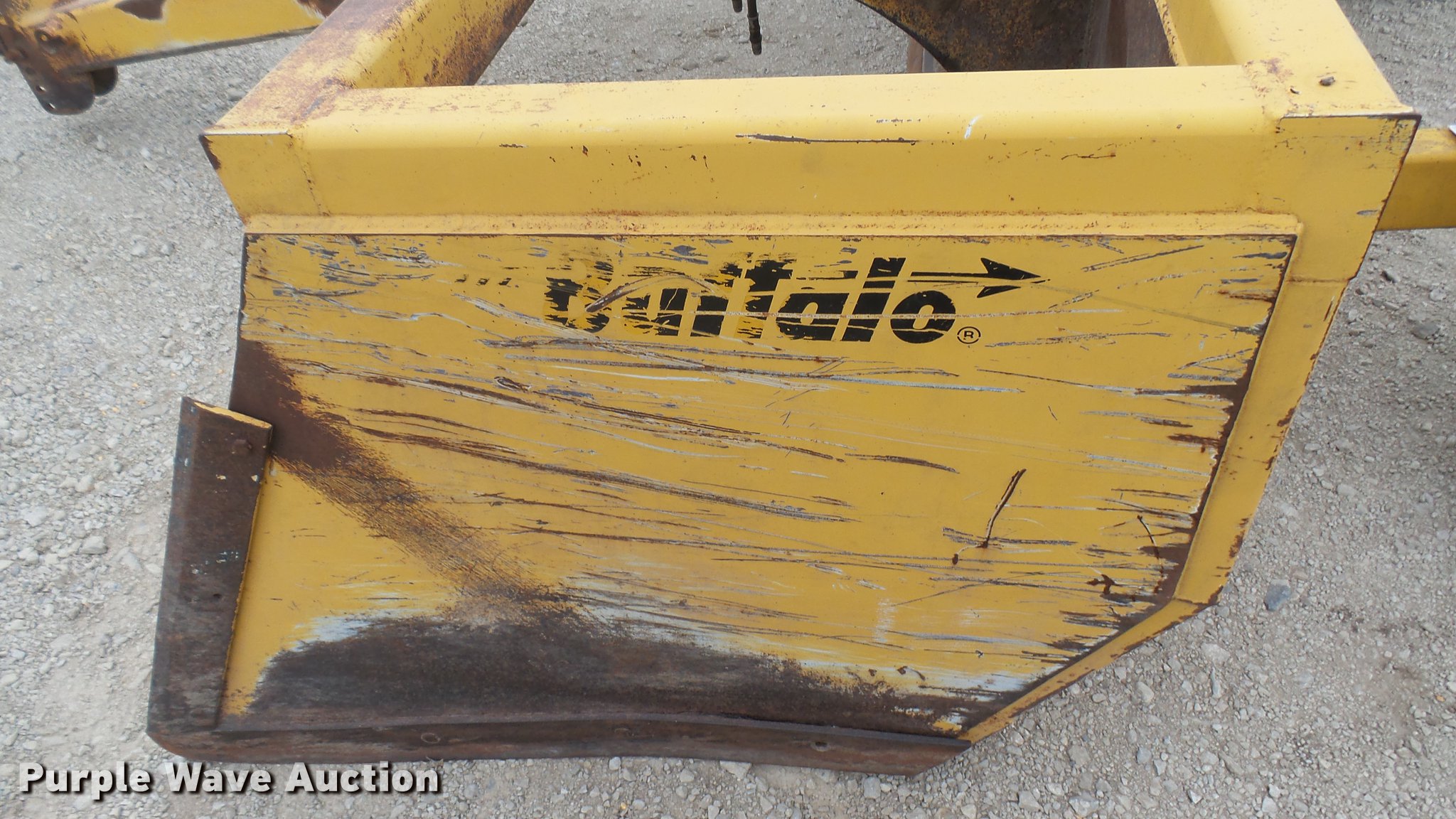 Purple Wave is selling a used Pull Type Scraper in Kansas. This item is a Buffalo box blade with the following: 12'W, Hydraulic lift, Pin hitch, 10R22.5 tires
