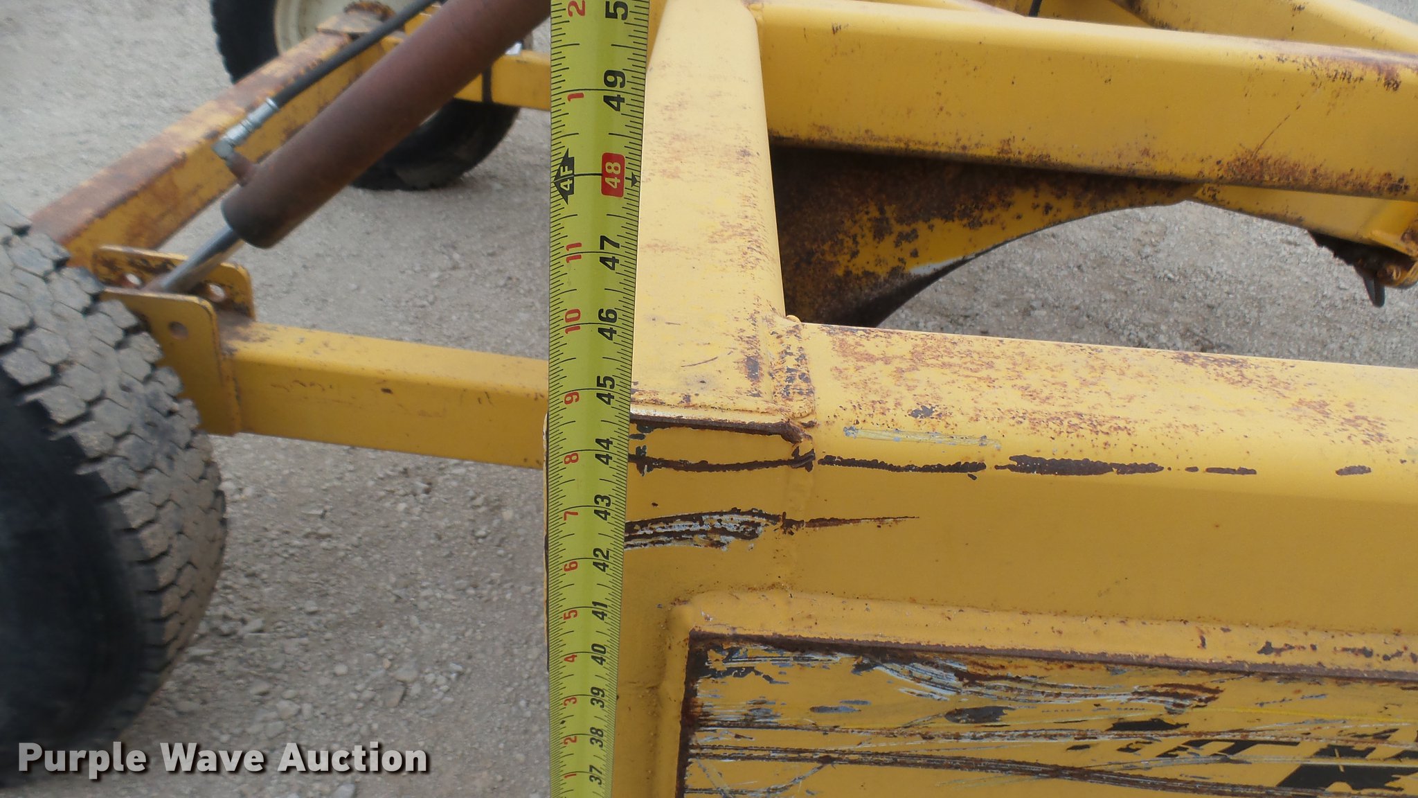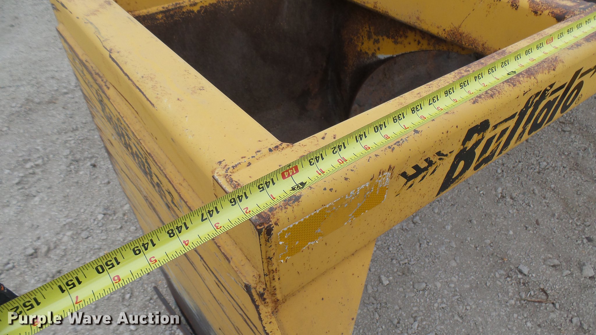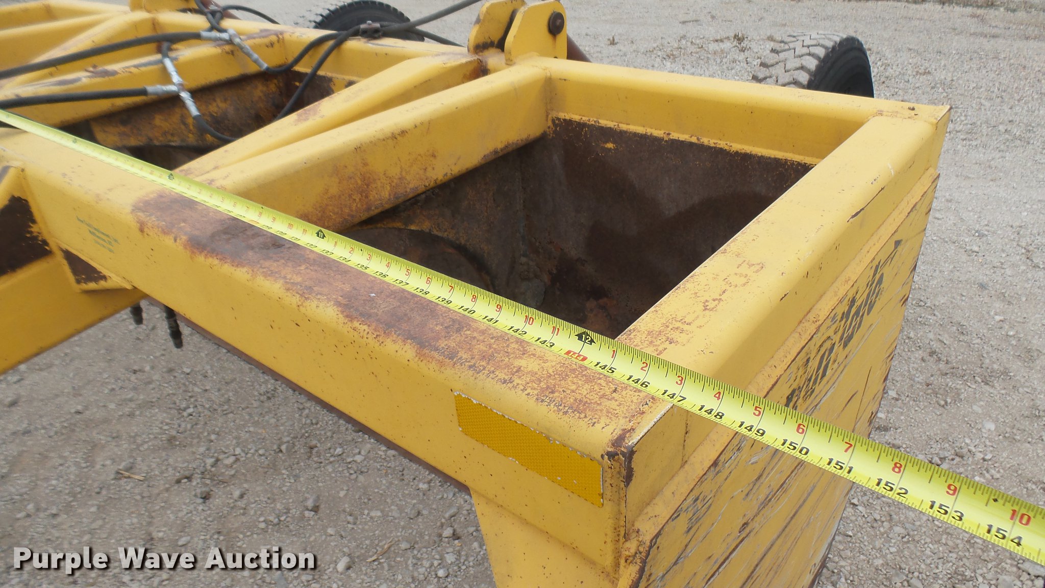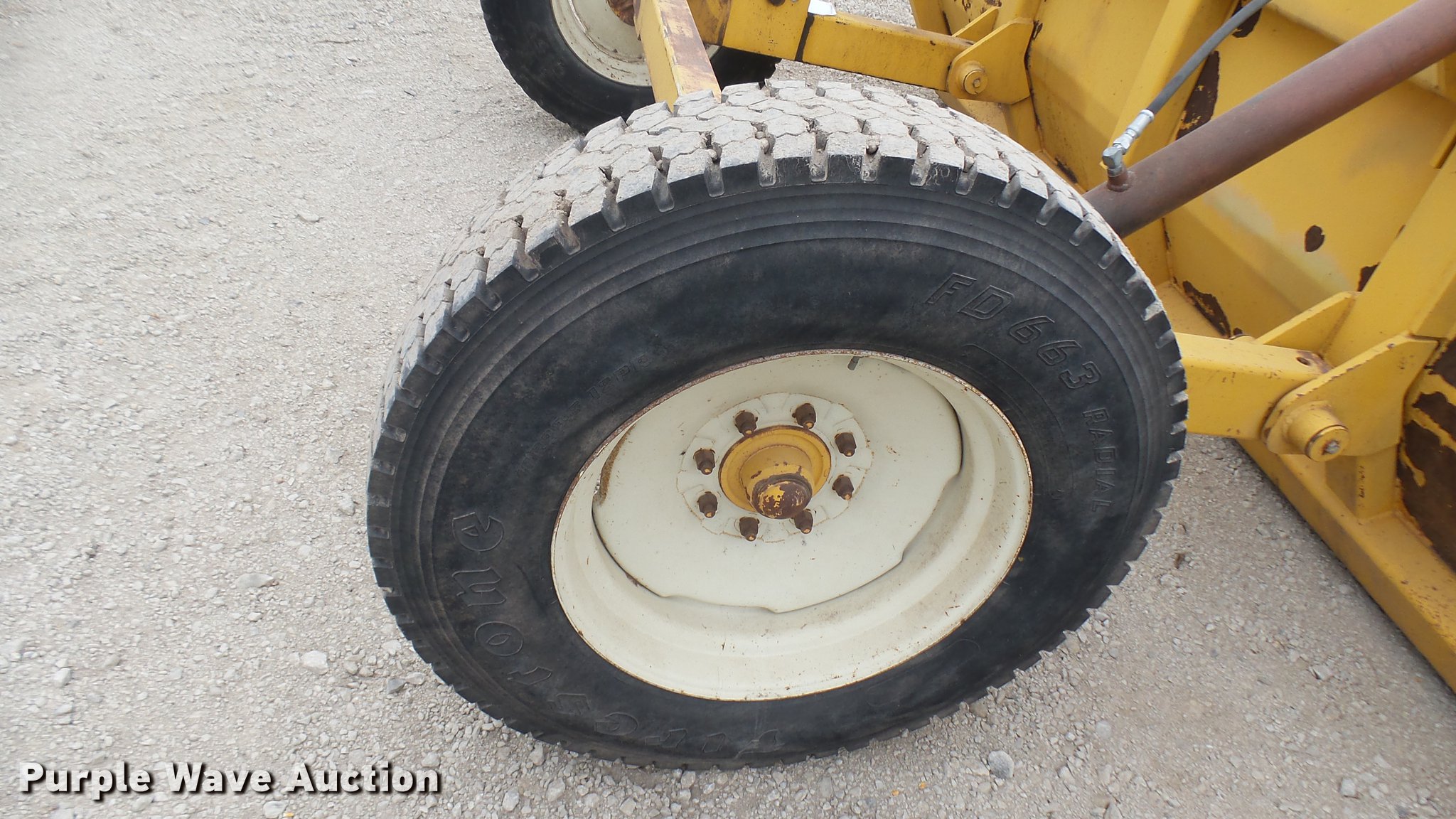 Purple Wave is selling a used Pull Type Scraper in Kansas. This item is a Buffalo box blade with the following: 12'W, Hydraulic lift, Pin hitch, 10R22.5 tires