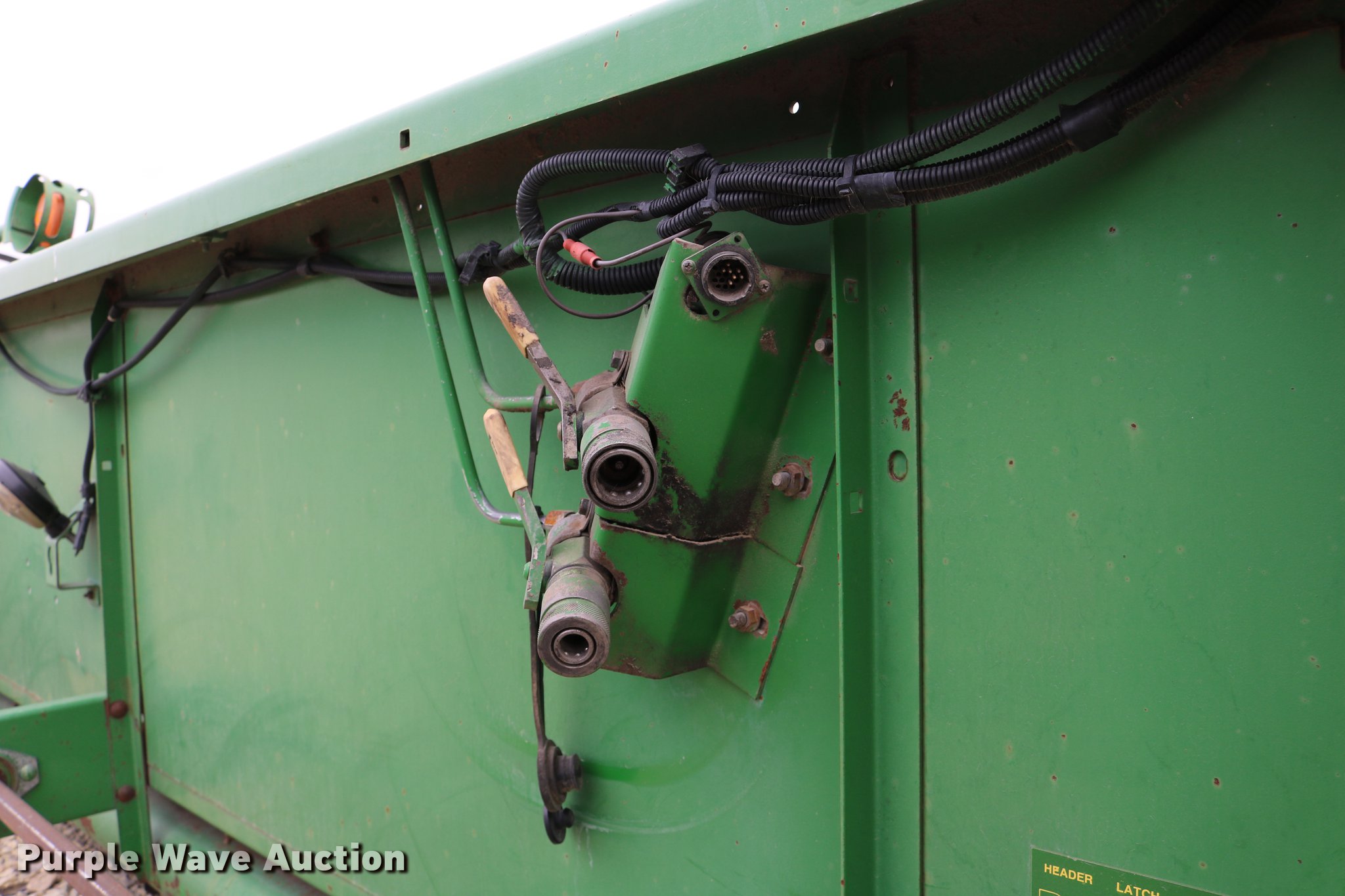 1997 John Deere 925R rigid head. 25'W, Bat reel, Hydraulic fore/aft, Hydraulic reel height control, Dual drivelines, Serial H00925R671029. Concordia Tractor, Inc.. 1441 Union Rd. Concordia, KS 66901