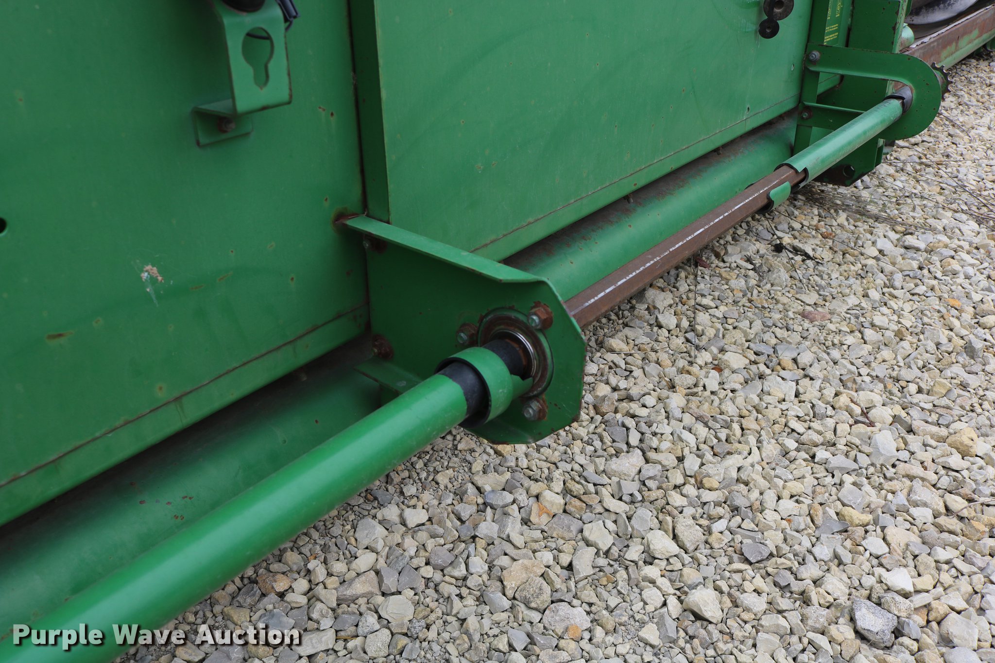 Purple Wave is selling a used Platform or Stripper Head in Kansas. This item is a 1997 John Deere 925R rigid head with the following: 25'W, Bat reel, Hydraulic fore/aft, Hydraulic reel height control, Dual drivelines, Serial H00925R671029