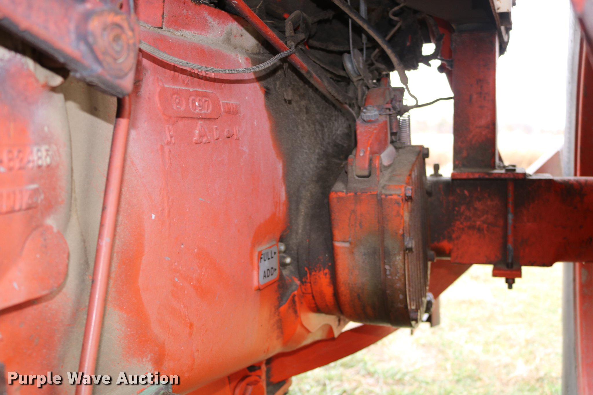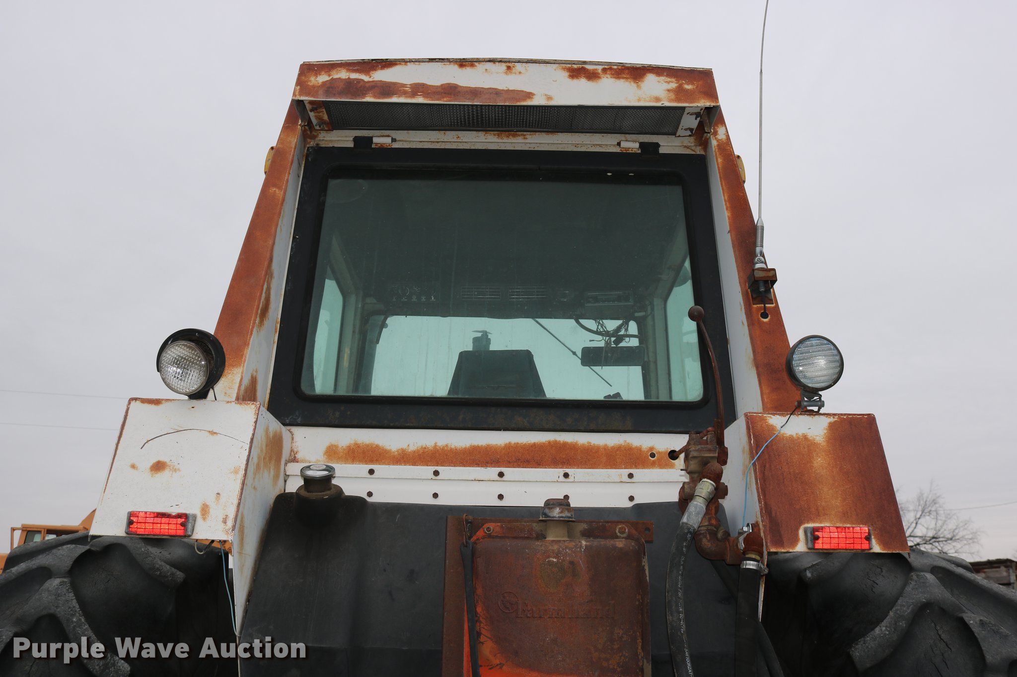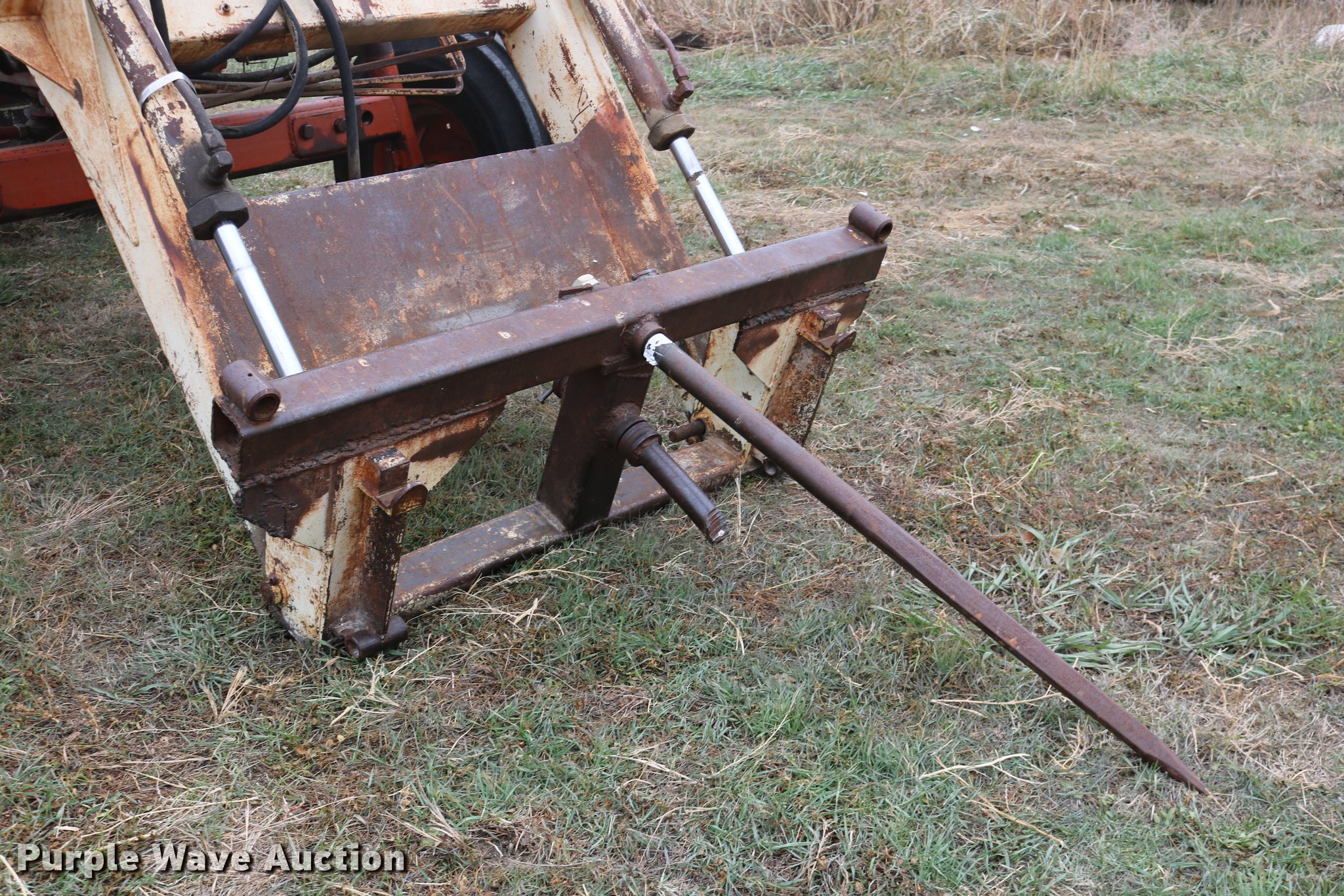 Purple Wave is selling a used Tractor in Kansas. This item is a 1975 Case 1175 tractor with the following: 7,450 hours on meter, Six cylinder turbo diesel engine, Manual transmission, 8F-2R gears, AC and heat, Tilt steering wheel, AM/FM, Suspension seat, Loader, Model 900, Bale spear, One-lever loader control, Farm Hand pump hooked to PTO to run loader, Three point, 540/1000 PTO, (2) rear hydraulic remotes, (2) wheel weights, Approx. 107" wheelbase, 10.00-16SL front tires, 20.8-38 rear tires, Non-operational radio, Non-operational AC, Non-operational blower motor, Cracked engine exhaust manifold, Replacement manifold and gaskets included, Serial 87736412460855