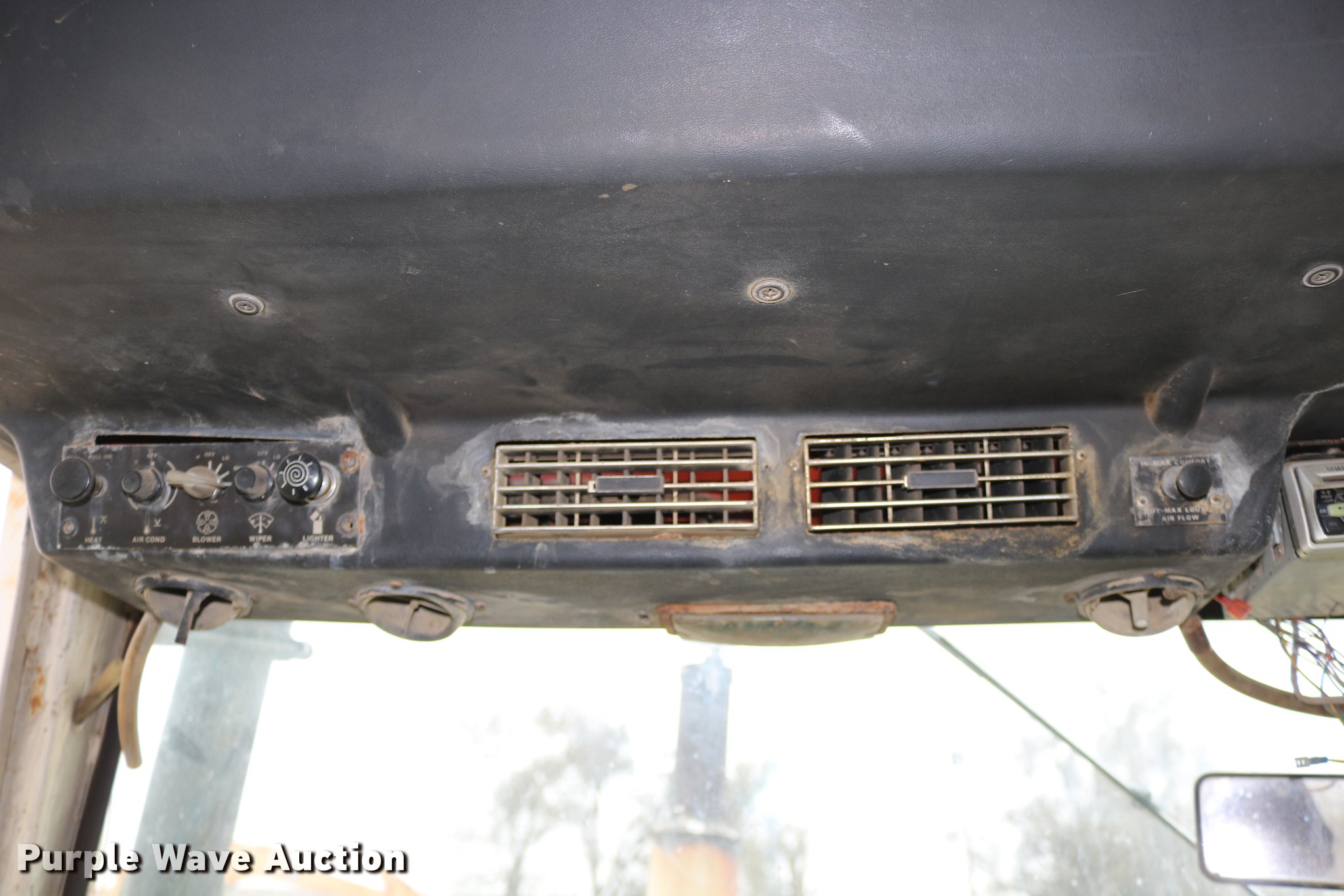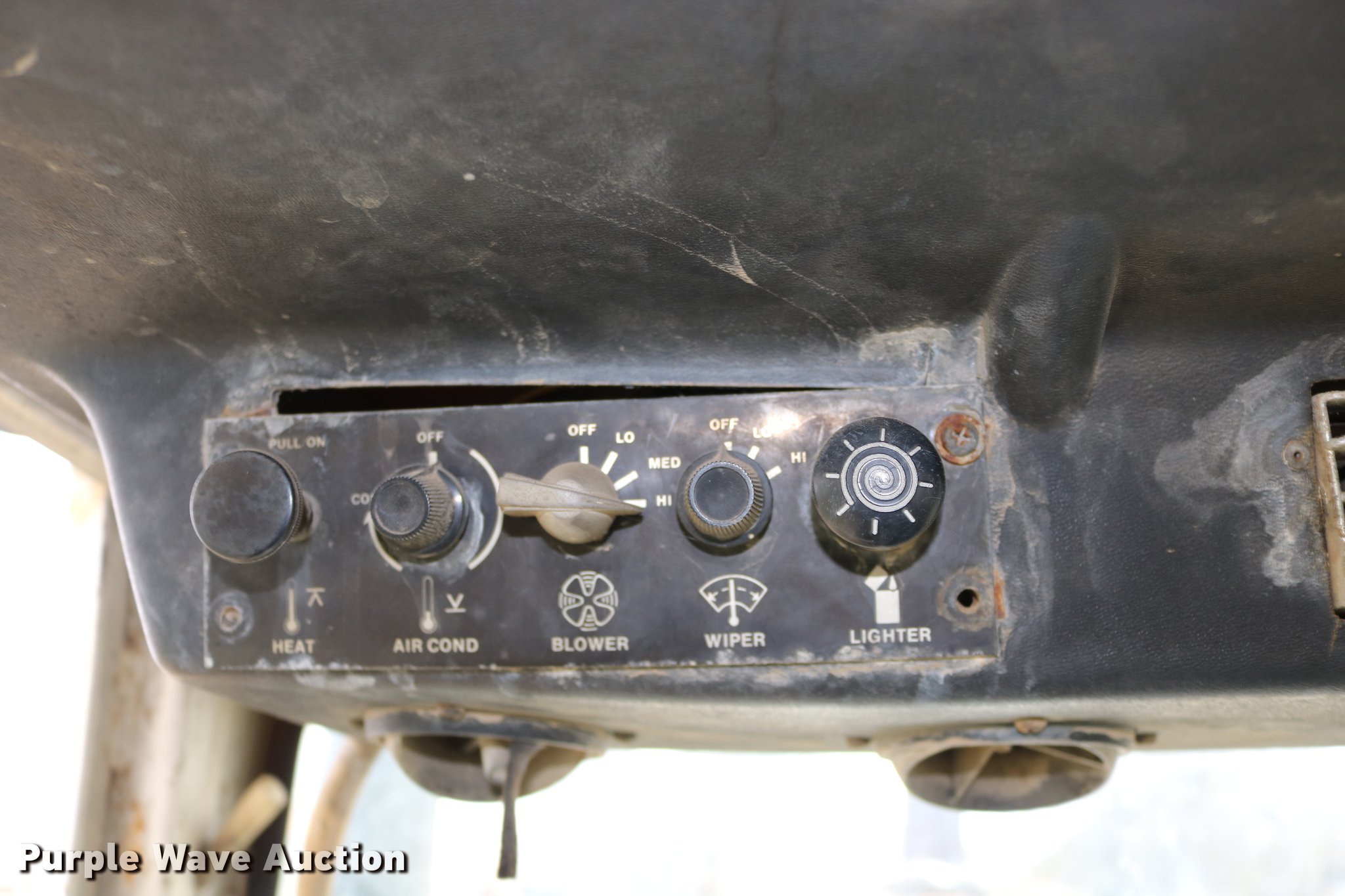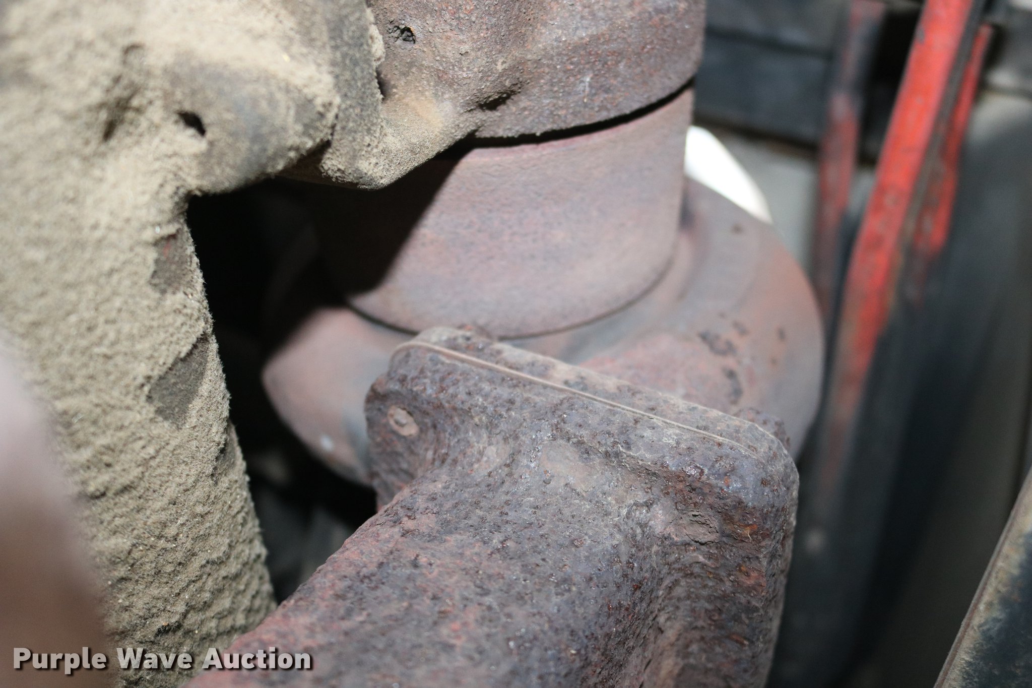 Purple Wave is selling a used Tractor in Kansas. This item is a 1975 Case 1175 tractor with the following: 7,450 hours on meter, Six cylinder turbo diesel engine, Manual transmission, 8F-2R gears, AC and heat, Tilt steering wheel, AM/FM, Suspension seat, Loader, Model 900, Bale spear, One-lever loader control, Farm Hand pump hooked to PTO to run loader, Three point, 540/1000 PTO, (2) rear hydraulic remotes, (2) wheel weights, Approx. 107" wheelbase, 10.00-16SL front tires, 20.8-38 rear tires, Non-operational radio, Non-operational AC, Non-operational blower motor, Cracked engine exhaust manifold, Replacement manifold and gaskets included, Serial 87736412460855