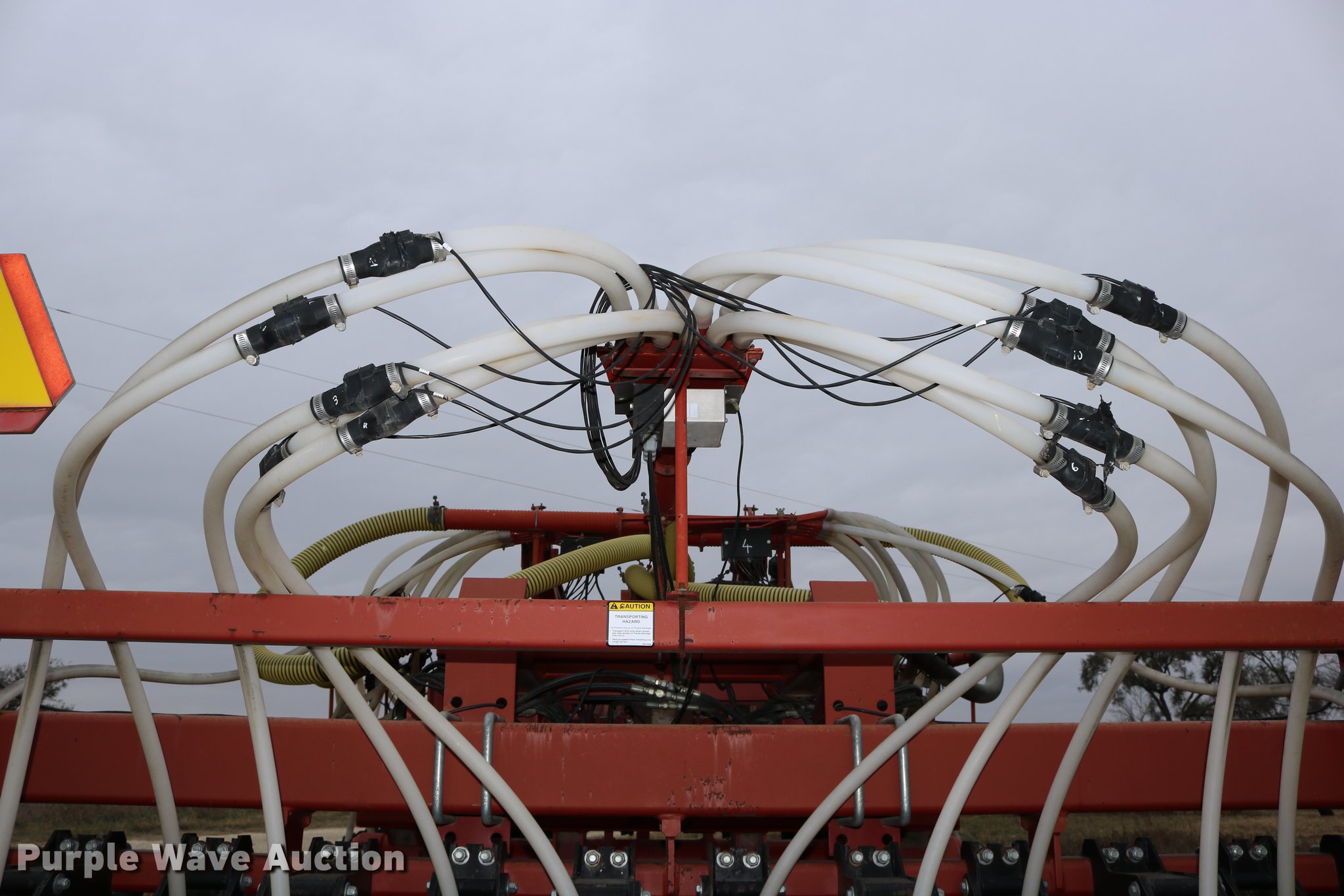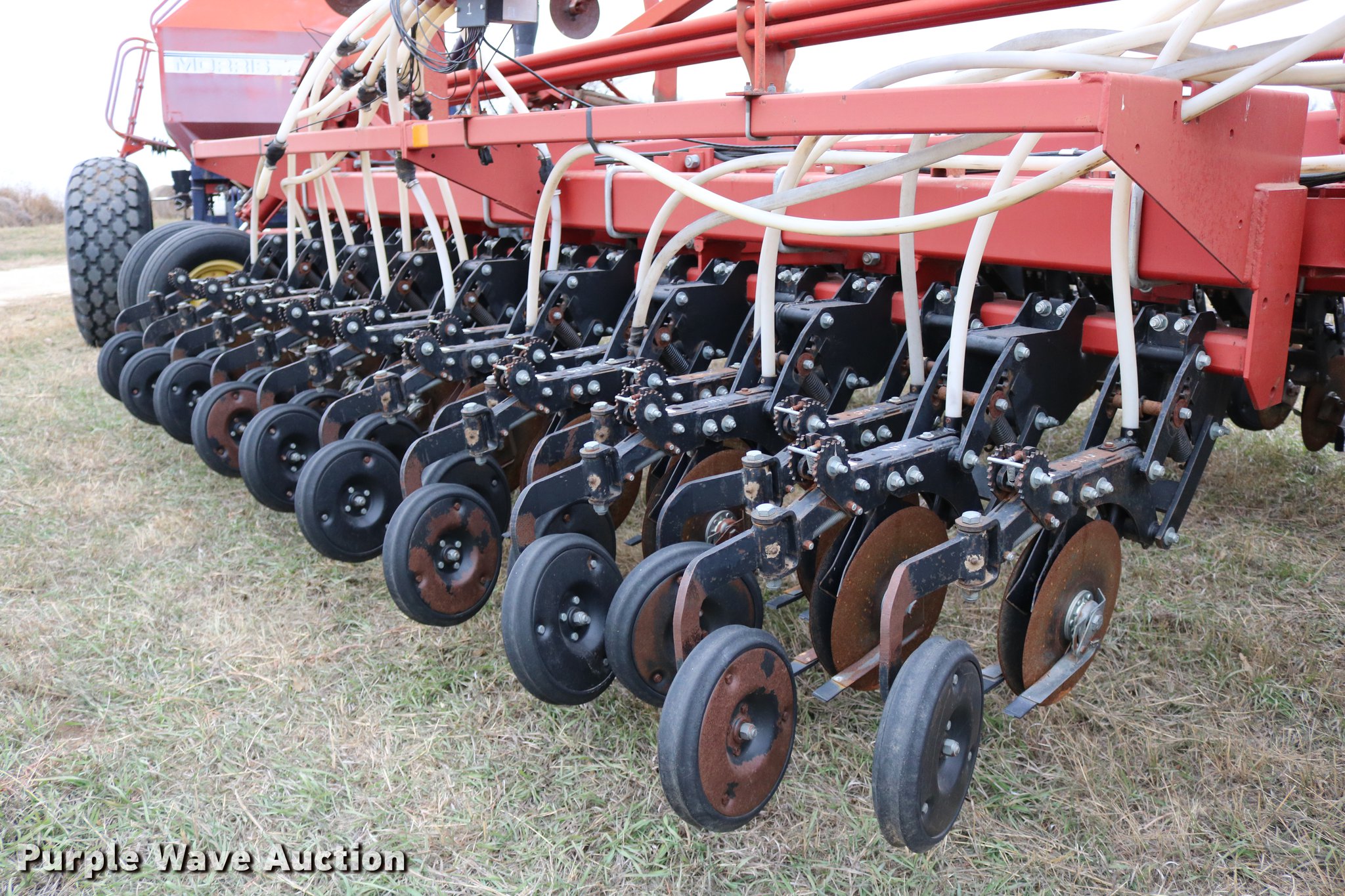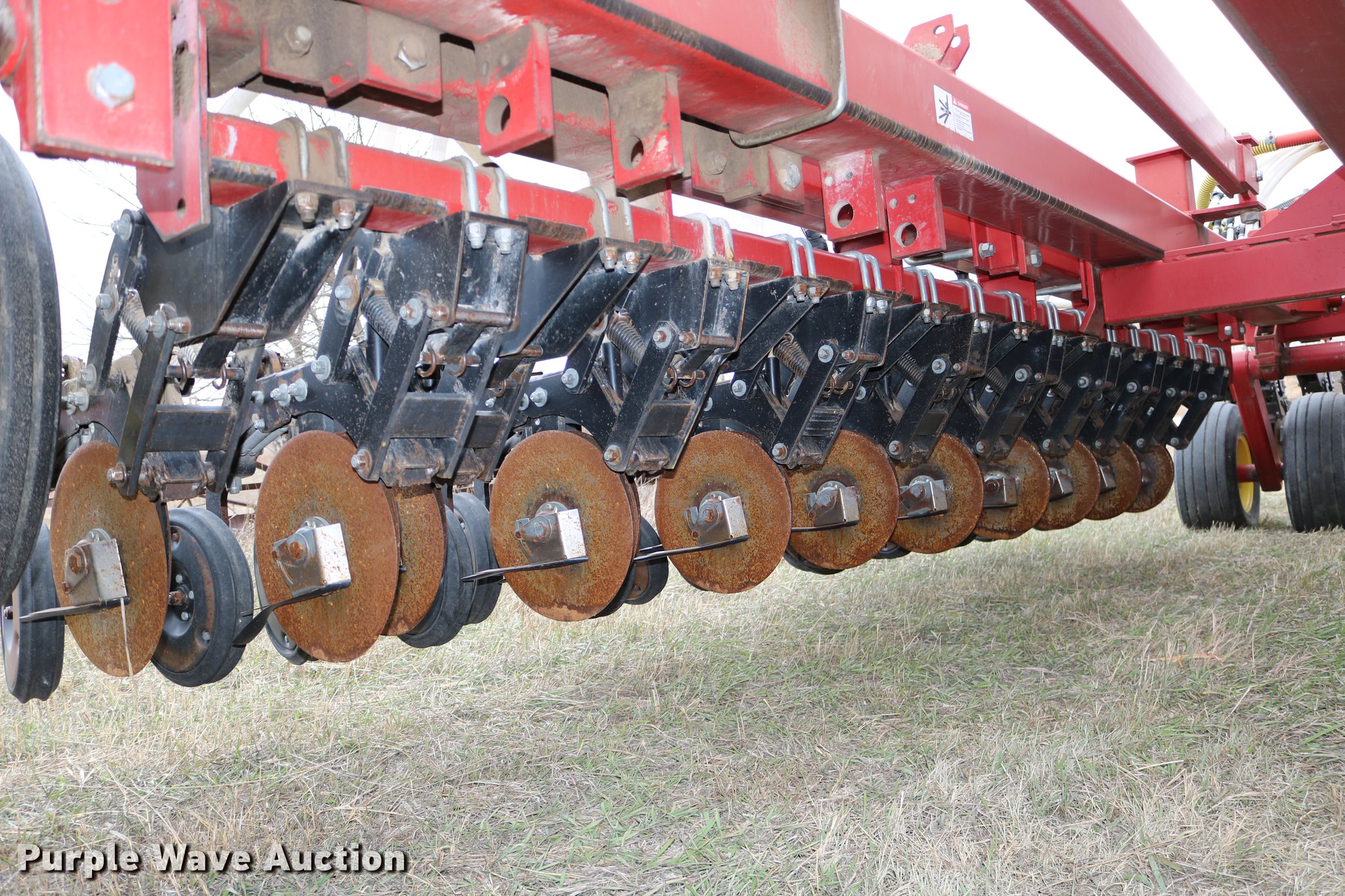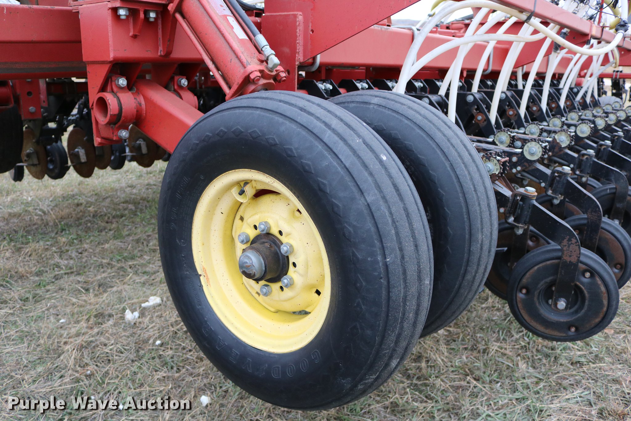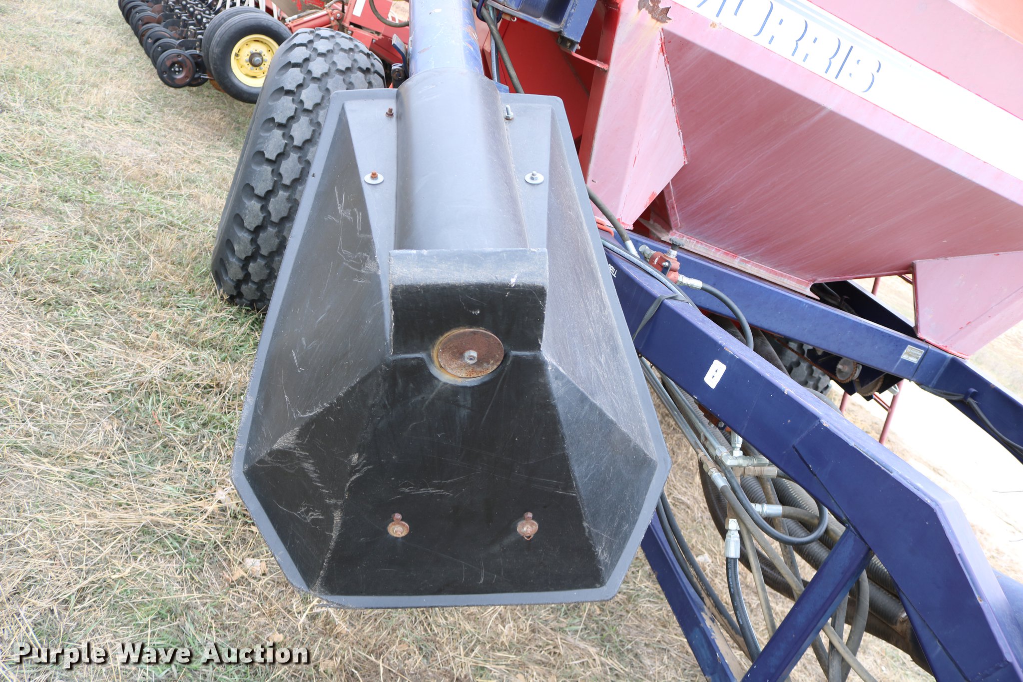 Purple Wave is selling a used Air Seeder in Kansas. This item is a Sunflower 9130-40 no-till air seeder with the following: 40'W, 60 row units, 10" row spacing, Marker arms, Hydraulic front fold, Bulk fill system, Air delivery, 2001 Morris 7280 commodity cart, 180 bushel capacity, (2) compartments, 80 bushel front capacity, 100 bushel rear capacity, Serial 7289500214, Double disk openers, Single gauge wheel closing system, Morris N27010R0 monitor, Serial j0123AR-178, Morris N27011 clutch controller, Serial 018820-000056, Clevis hitch, Three point, (4) 12.5L-15 transport tires, (4) 9.5L-15 drive/outside tires, (2) 23.1-26 seed delivery tires, Serial 09130E20010001