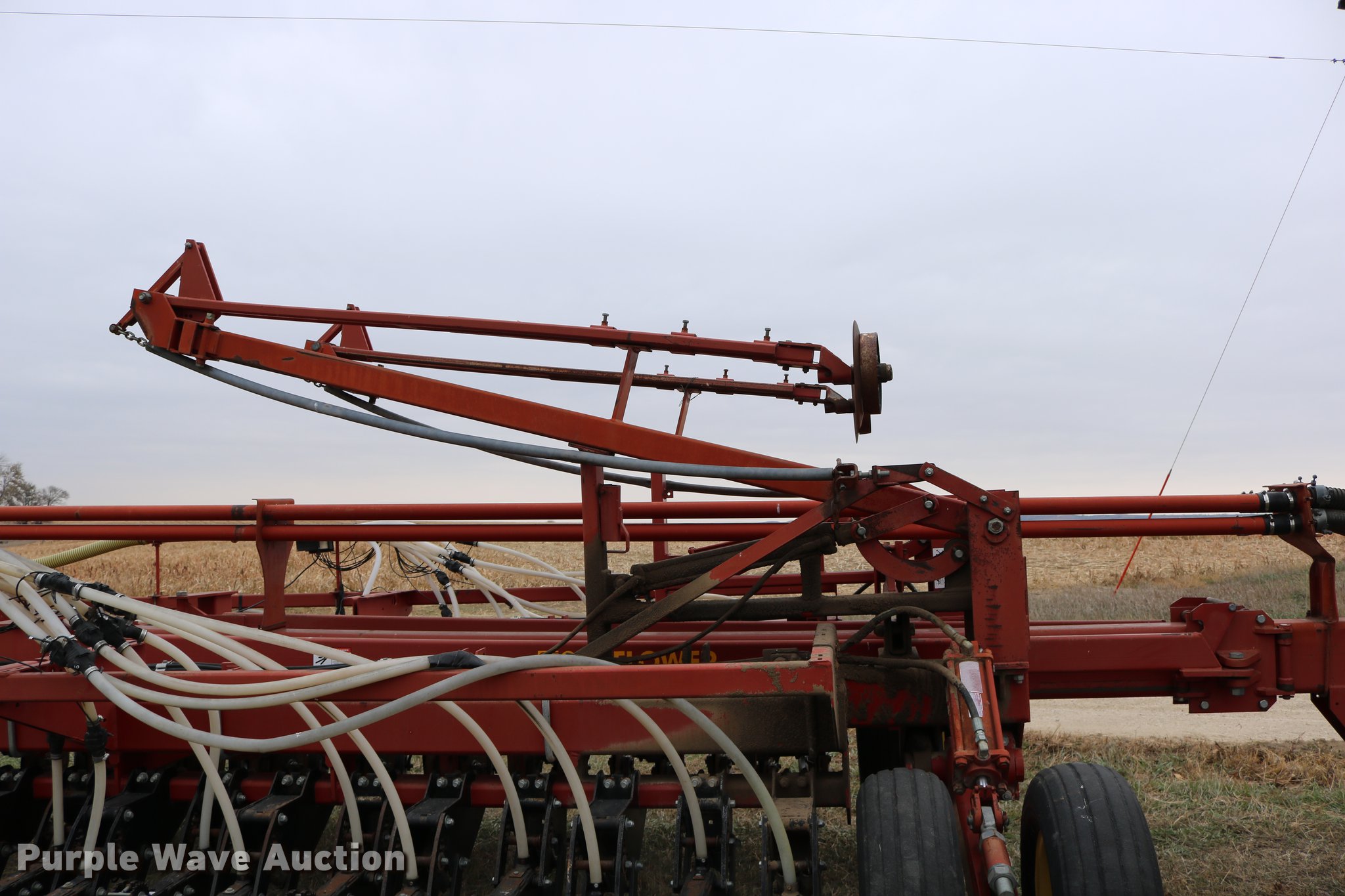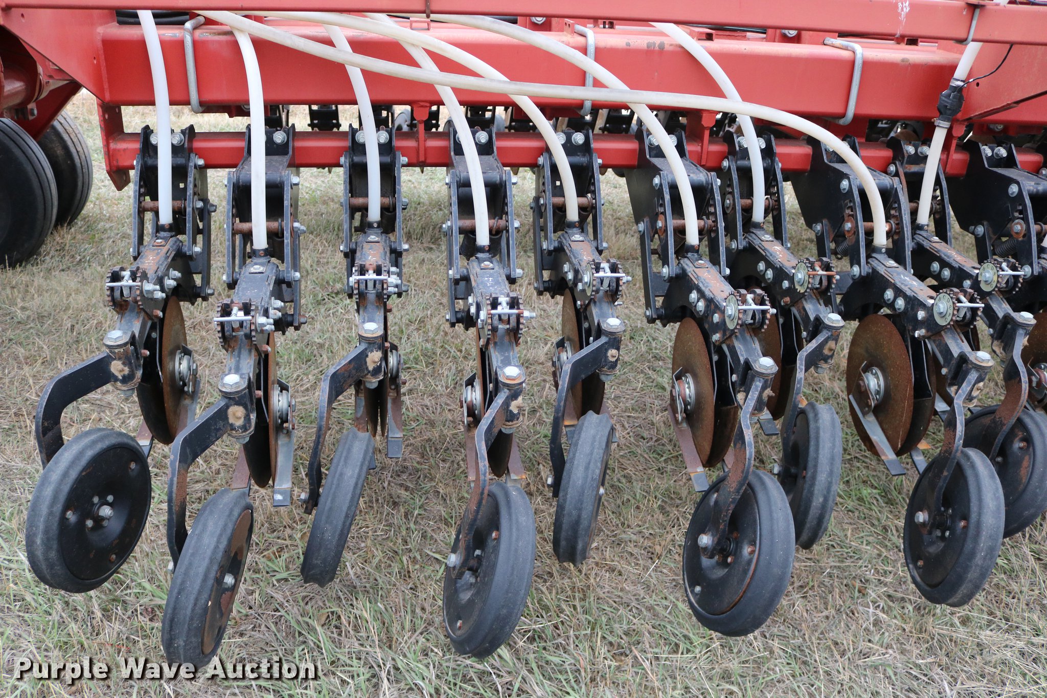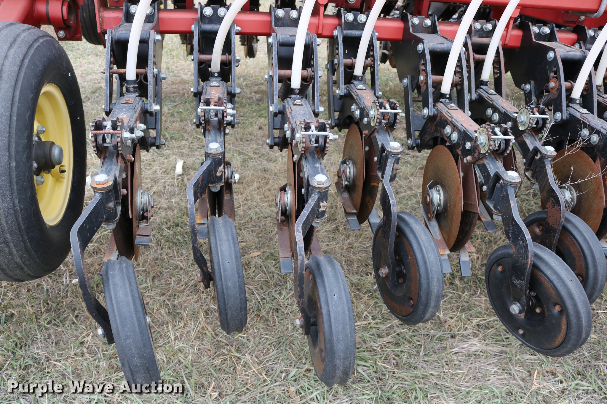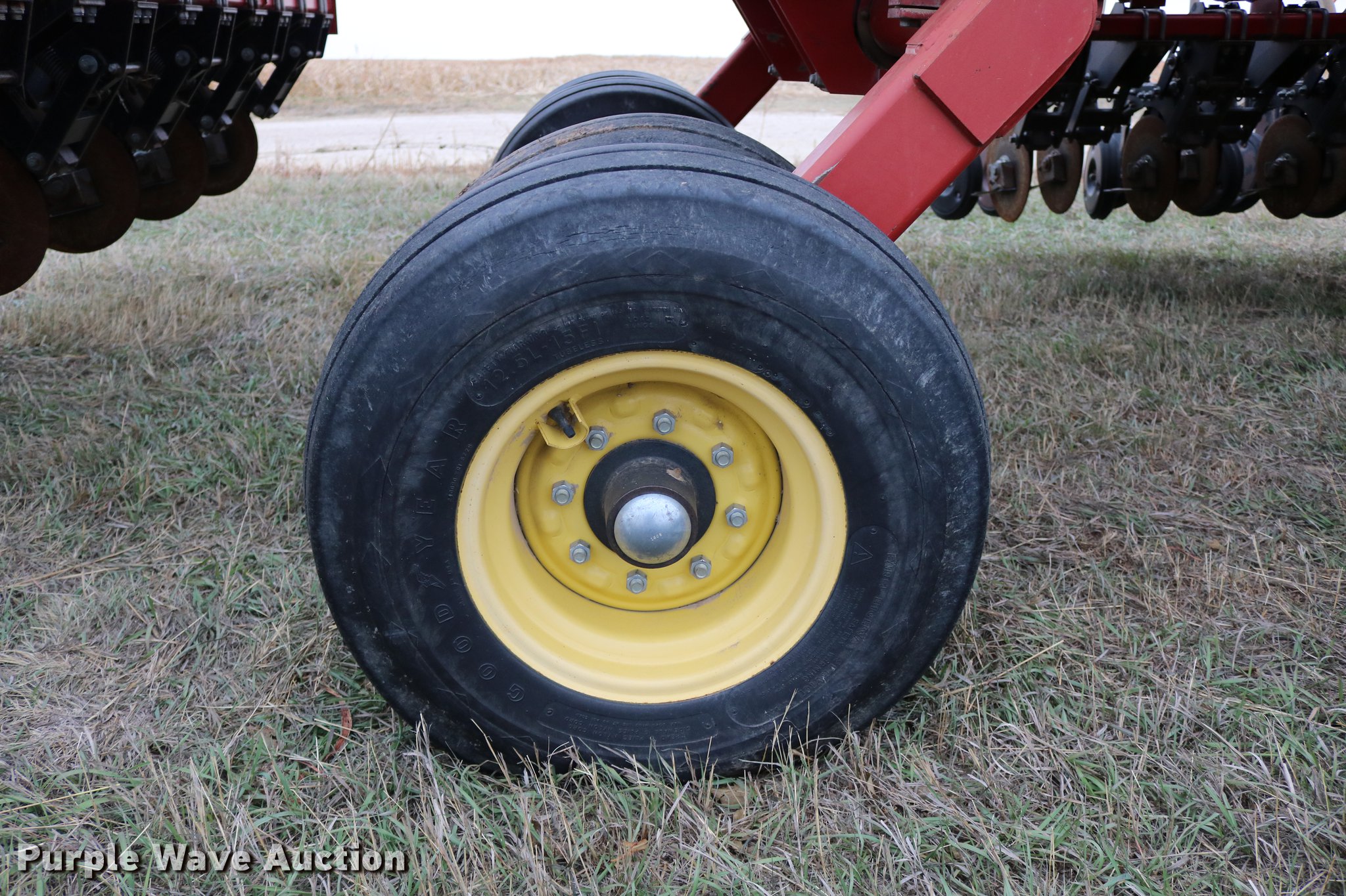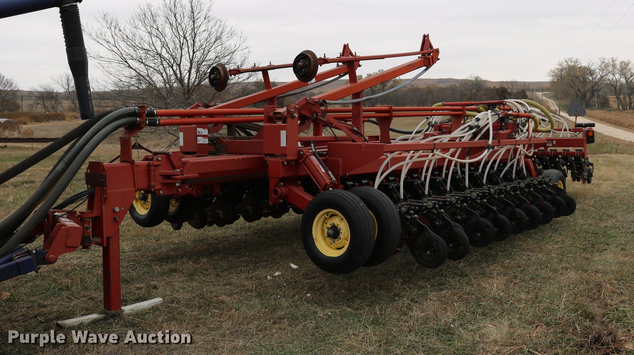 Purple Wave is selling a used Air Seeder in Kansas. This item is a Sunflower 9130-40 no-till air seeder with the following: 40'W, 60 row units, 10" row spacing, Marker arms, Hydraulic front fold, Bulk fill system, Air delivery, 2001 Morris 7280 commodity cart, 180 bushel capacity, (2) compartments, 80 bushel front capacity, 100 bushel rear capacity, Serial 7289500214, Double disk openers, Single gauge wheel closing system, Morris N27010R0 monitor, Serial j0123AR-178, Morris N27011 clutch controller, Serial 018820-000056, Clevis hitch, Three point, (4) 12.5L-15 transport tires, (4) 9.5L-15 drive/outside tires, (2) 23.1-26 seed delivery tires, Serial 09130E20010001