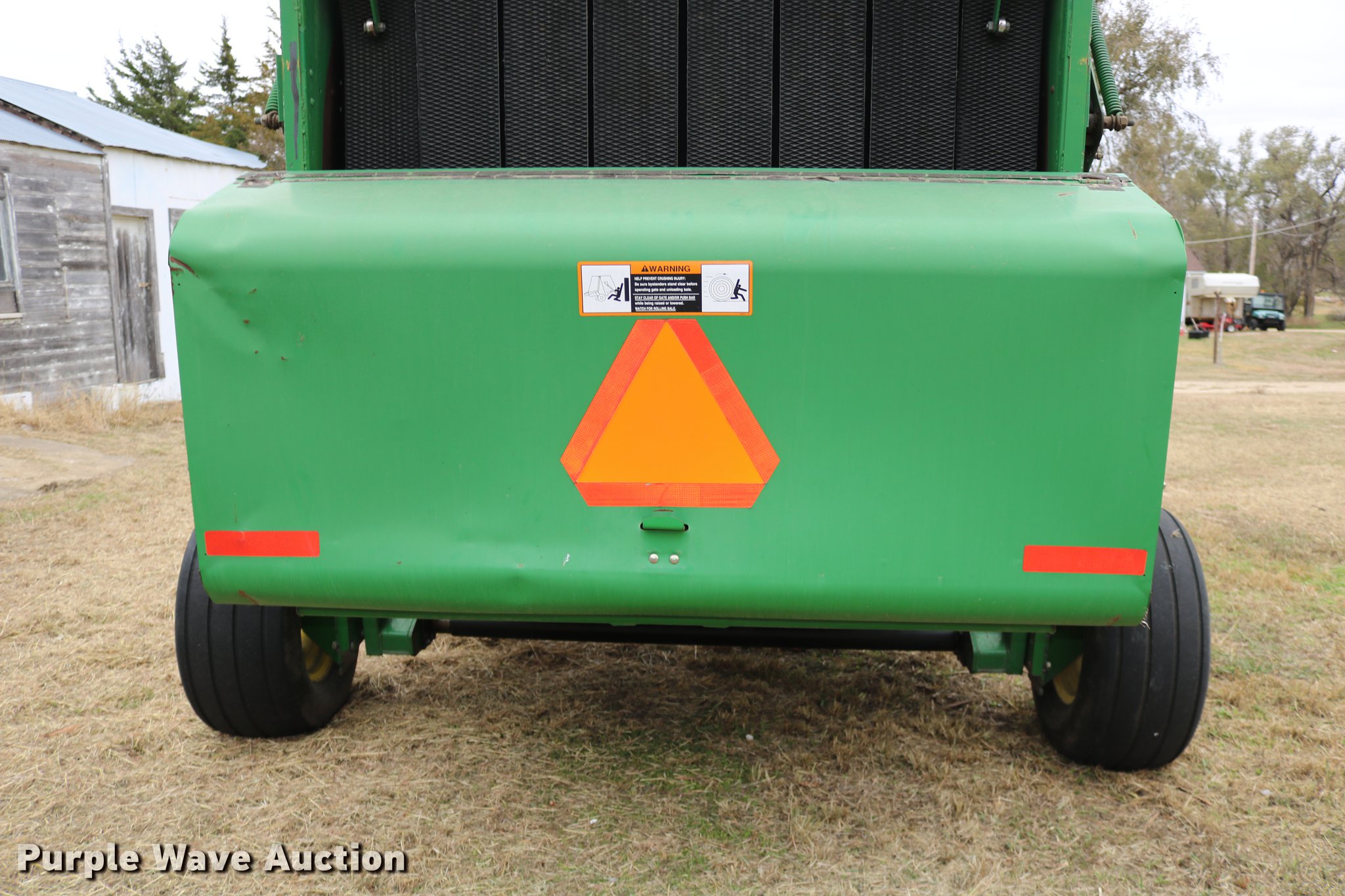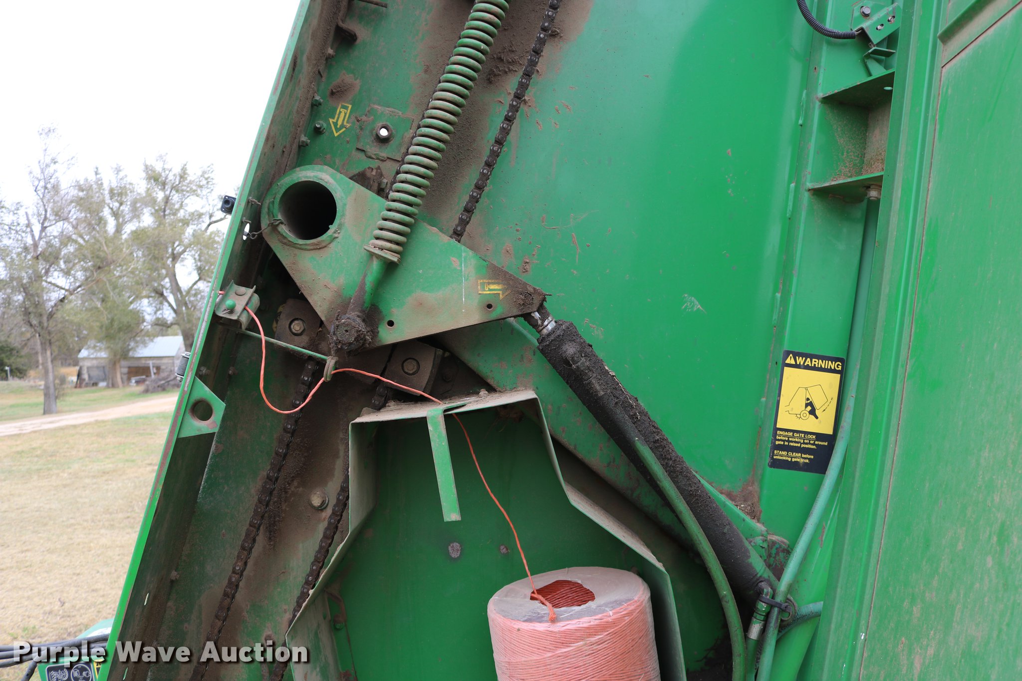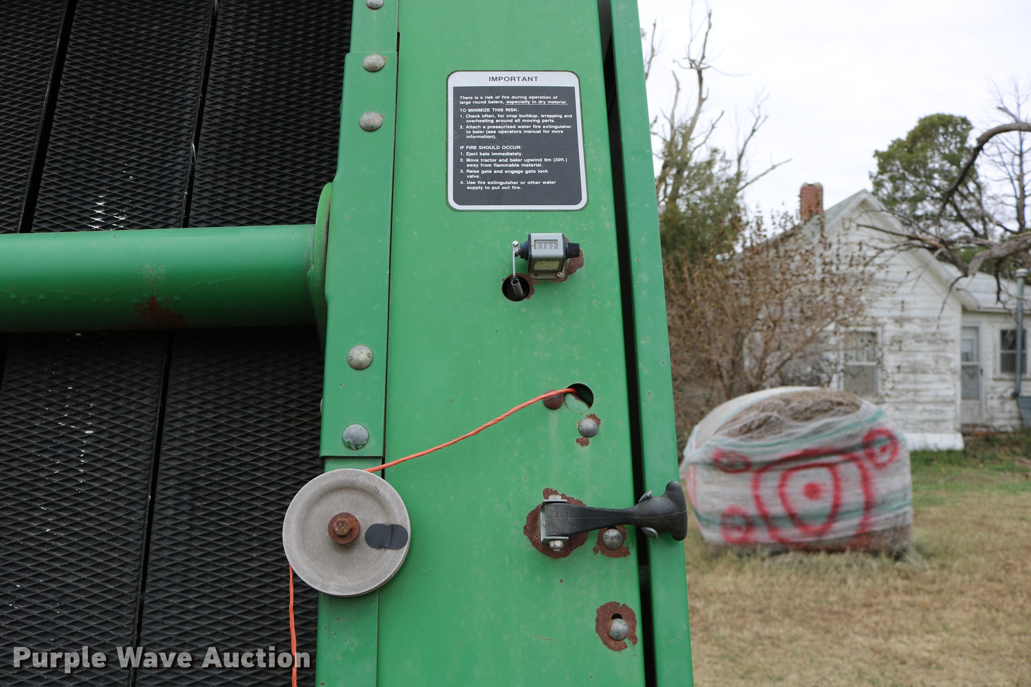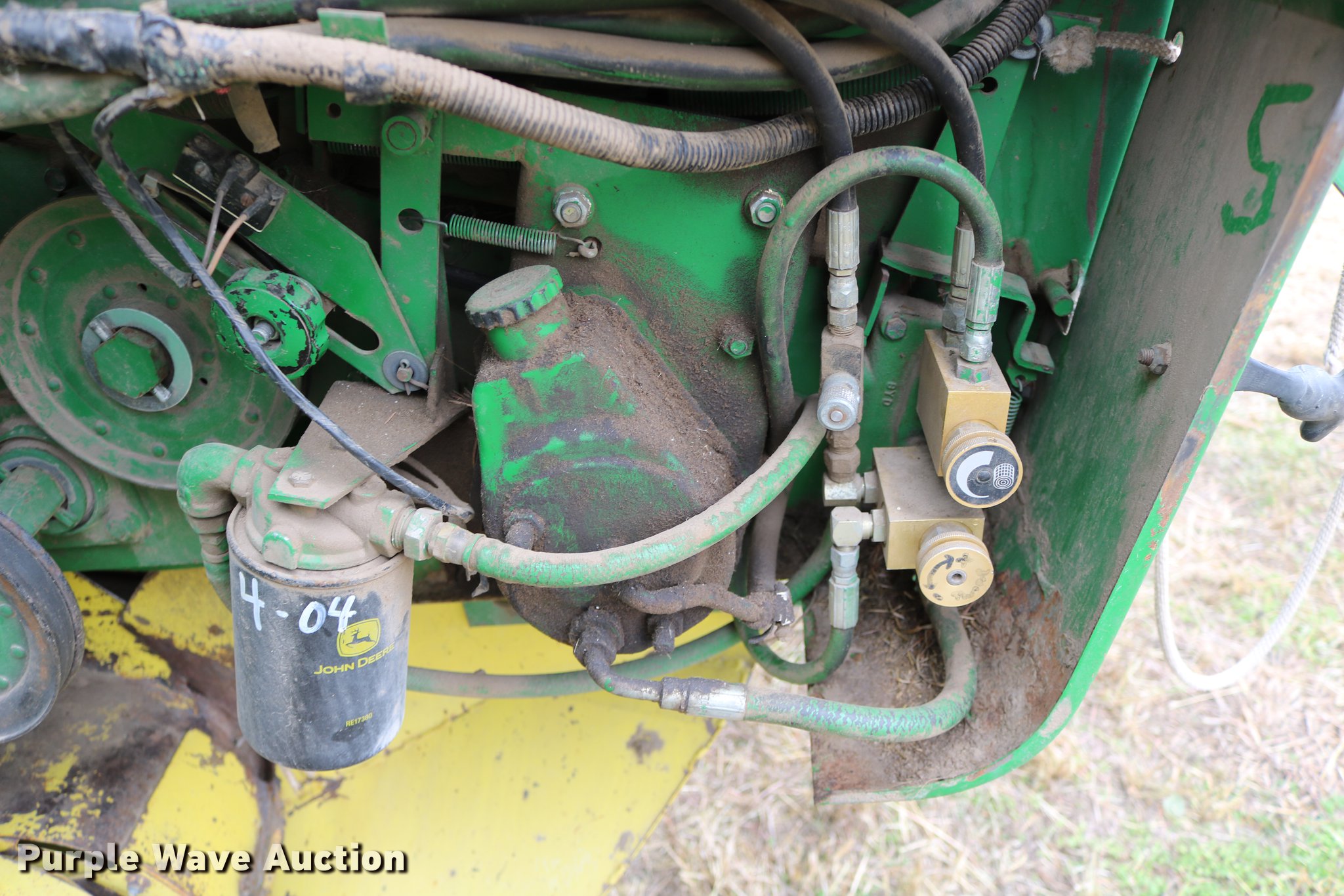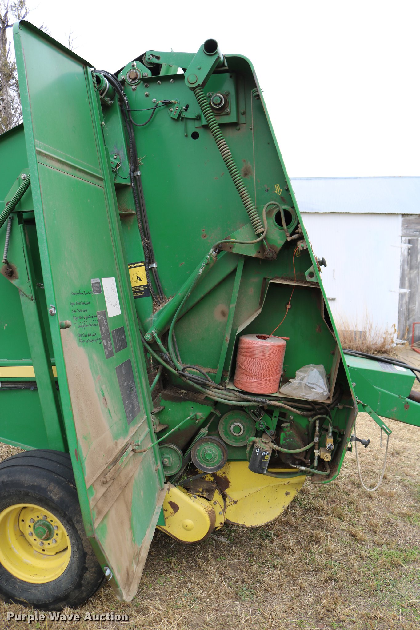 Purple Wave is selling a used Round Baler in Kansas. This item is a 1990 John Deere 535 round baler with the following: 5' x 6' bale capacity, 60"W pickup, Hydraulic pickup lift, 16x6.50-8 gauge wheels, John Deere monitor, Auto-tie, Twin twine tie, Net-wrap, Bale kicker, 540/1000 PTO, Clevis hitch, 31x13.5-15 tires, Serial E00535X861792