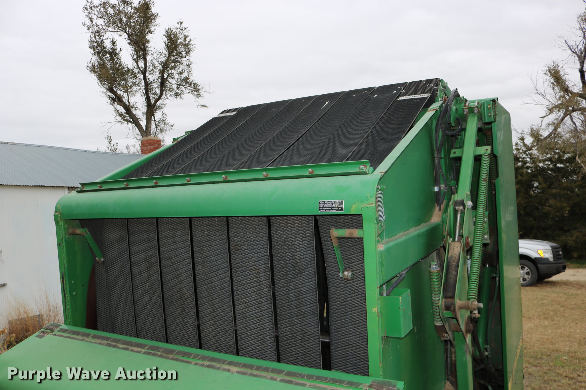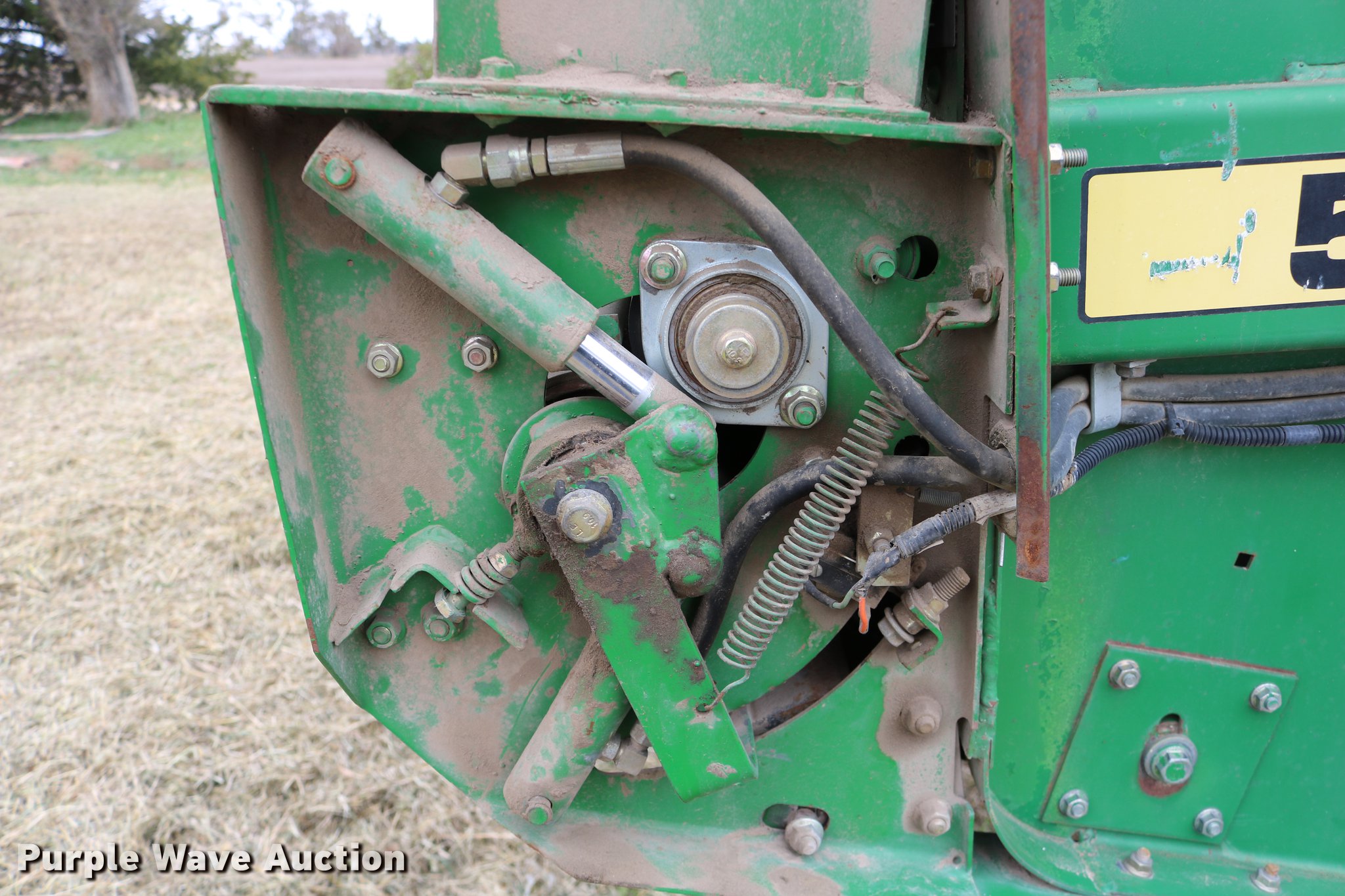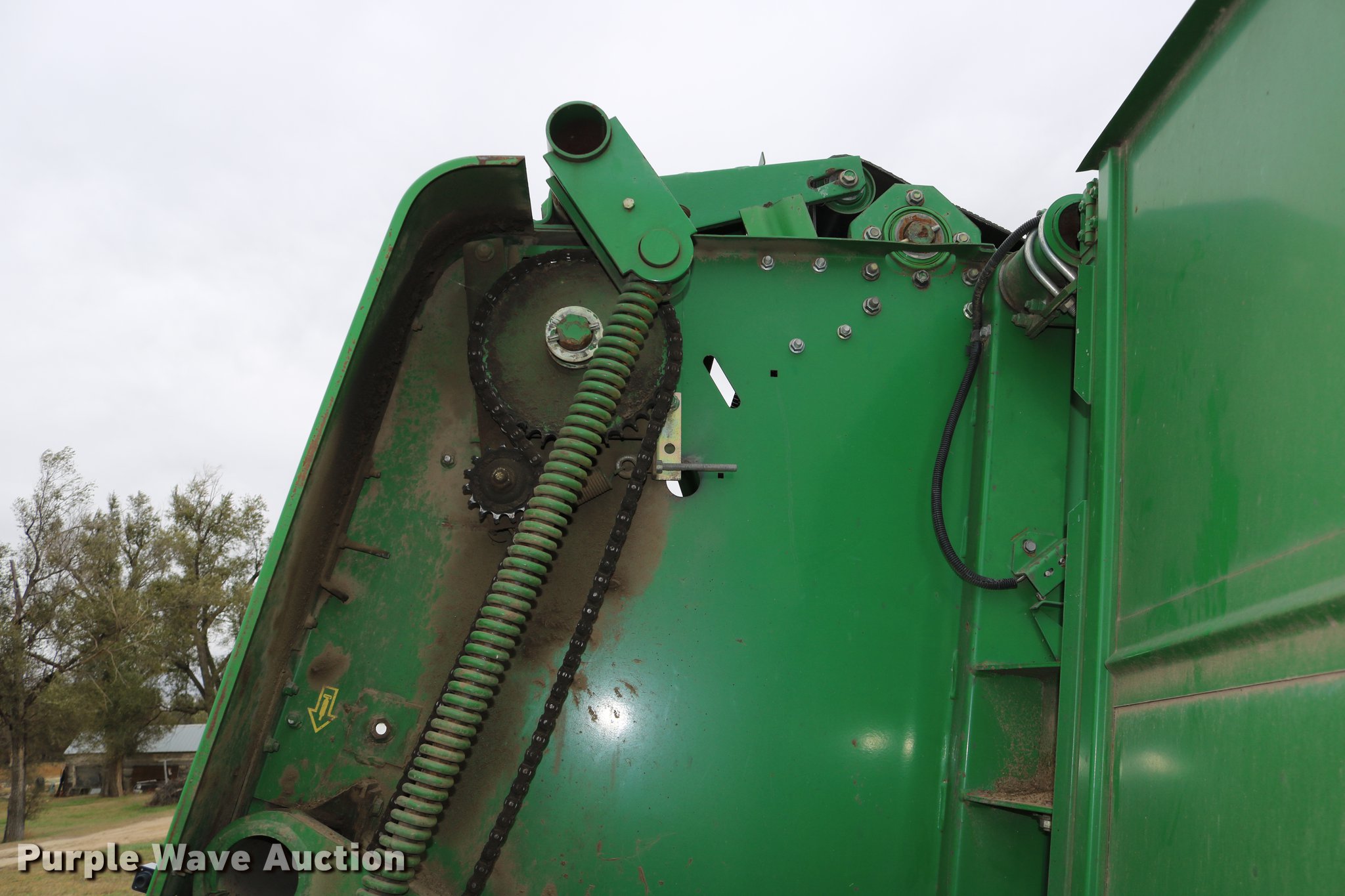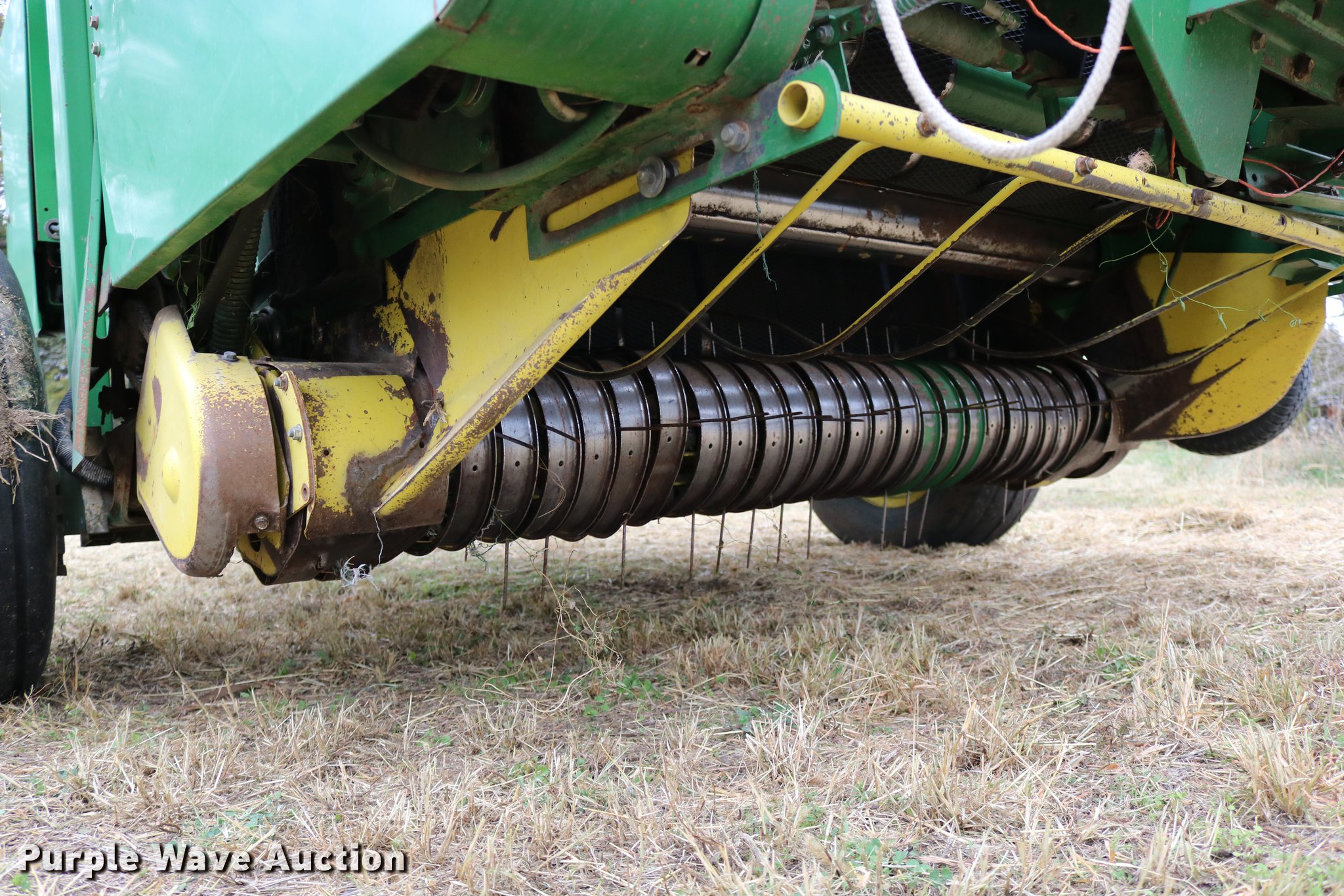Purple Wave is selling a used Round Baler in Kansas. This item is a 1990 John Deere 535 round baler with the following: 5' x 6' bale capacity, 60"W pickup, Hydraulic pickup lift, 16x6.50-8 gauge wheels, John Deere monitor, Auto-tie, Twin twine tie, Net-wrap, Bale kicker, 540/1000 PTO, Clevis hitch, 31x13.5-15 tires, Serial E00535X861792