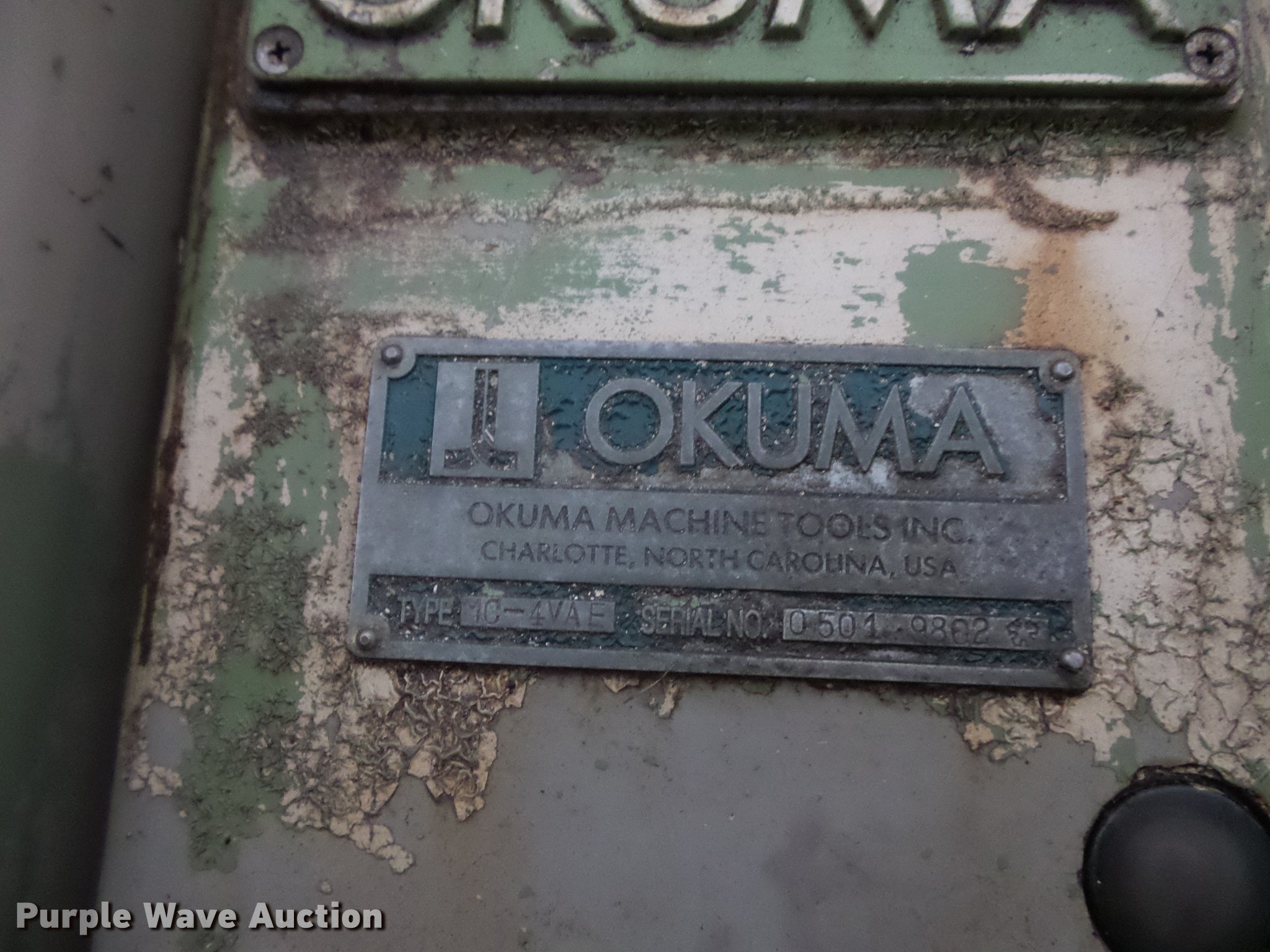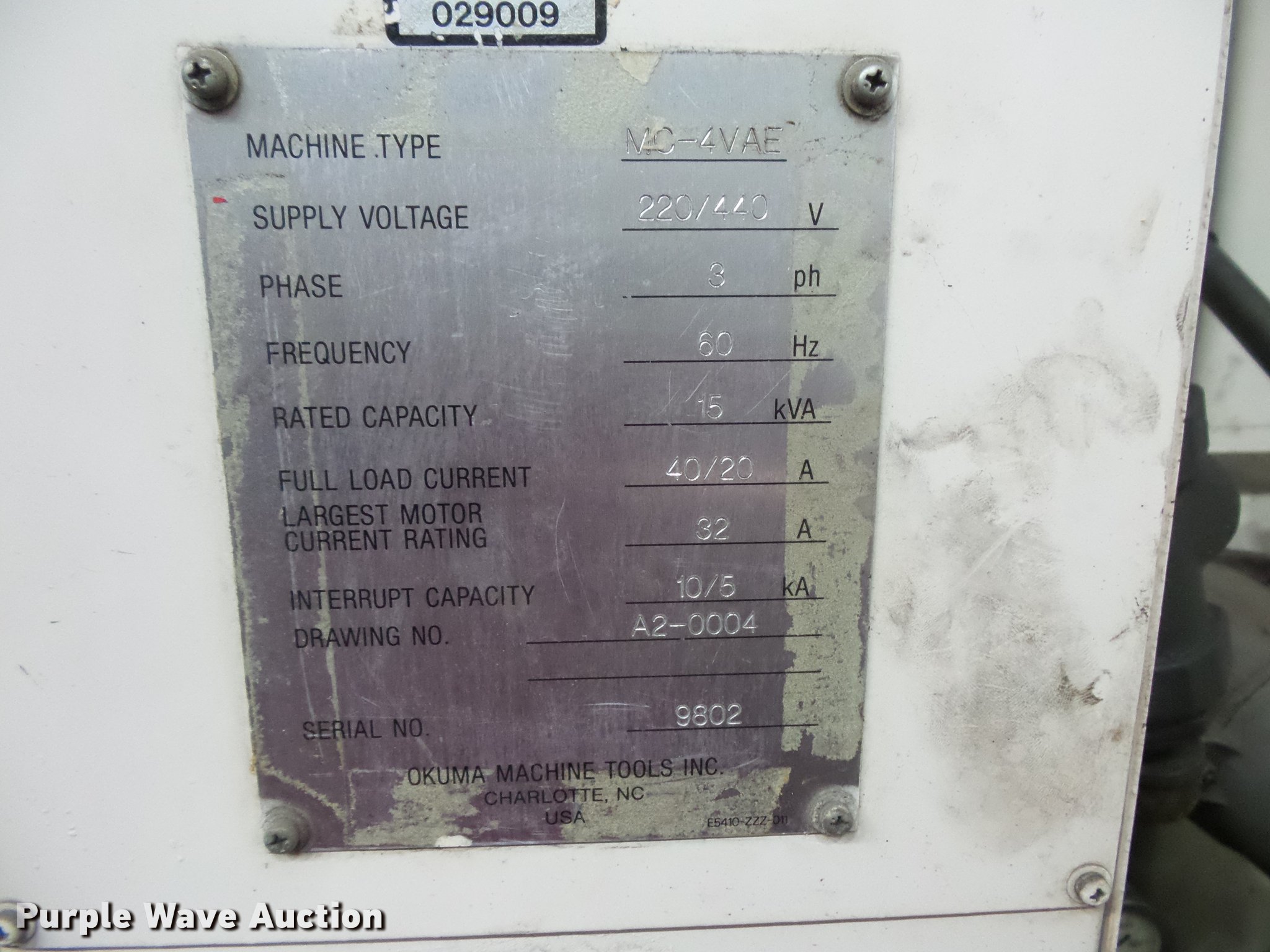 Purple Wave is selling a used Tools in Minnesota. This item is a Okuma vertical mill with the following: Type MC-4VAE, 220/440V, Three phase, Serial 9802