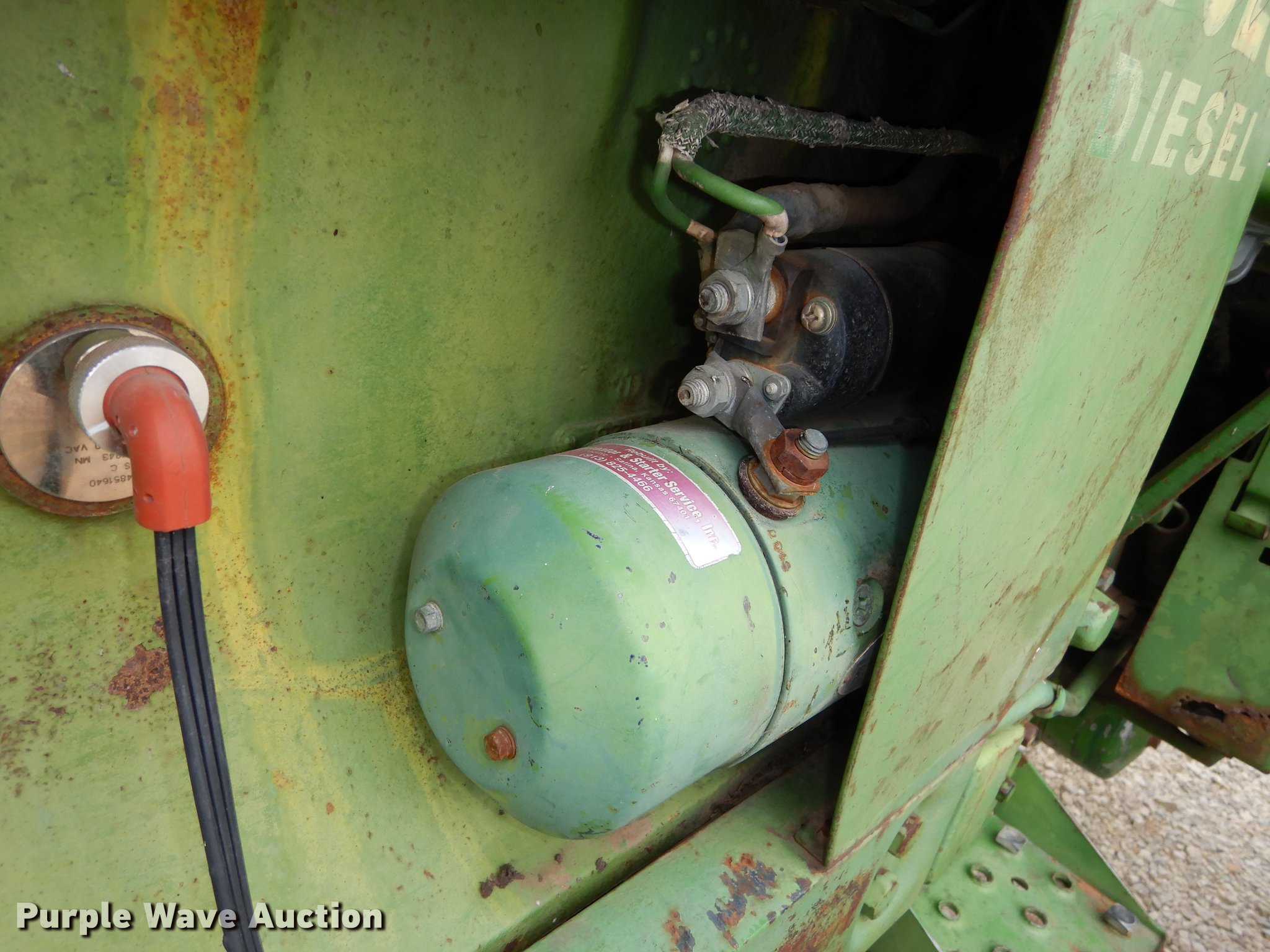 Purple Wave is selling a used Tractor in Kansas. This item is a 1972 John Deere 4020 tractor with the following: 5,372 hours on meter, John Deere six cylinder diesel engine, Type 6404DR-01, Serial 331903R, 10F-2R gears, Suspension seat, Front work lights, Rear work light, Block heater, Three point, Top link, Live 540/1000 PTO, Draw bar, (2) rear hydraulic remote sets, (4) suitcase weights, Wheel weights, 10.00-16 front tires, 18.4-34 rear tires, Step needs to be replaced, Serial 269153R