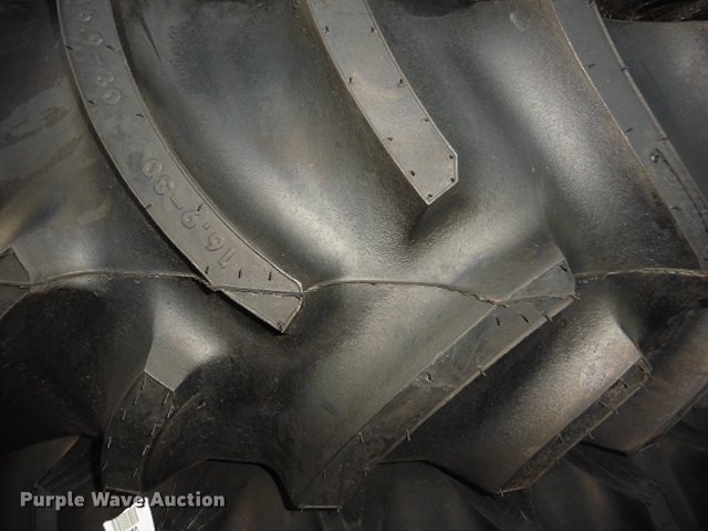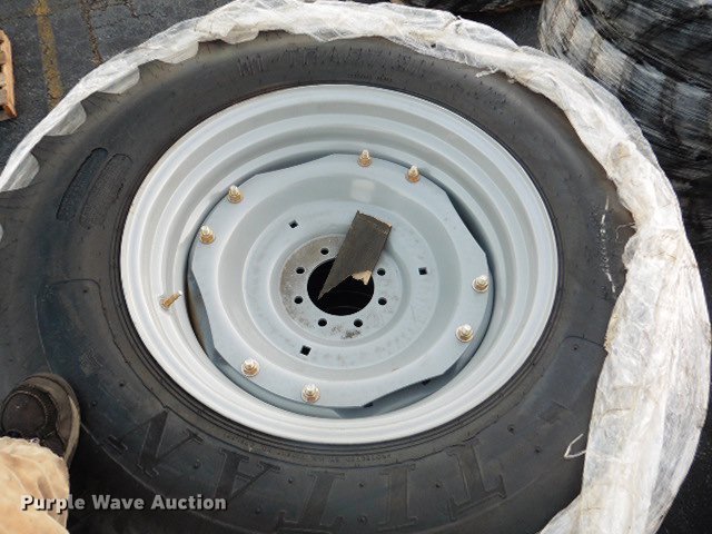 Purple Wave is selling a used Industrial Tires or Tracks in Maryland. This item is a (7) Titan 16.9-30 rear tire assemblies with the following: Right side, Bolt pattern: 8 bolt, 8" diameter, Pilot: 6", R1 Ag lug, Usage: MF4600, MF4600M, Item# 4330280M91