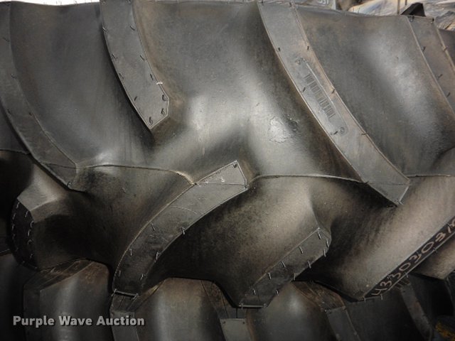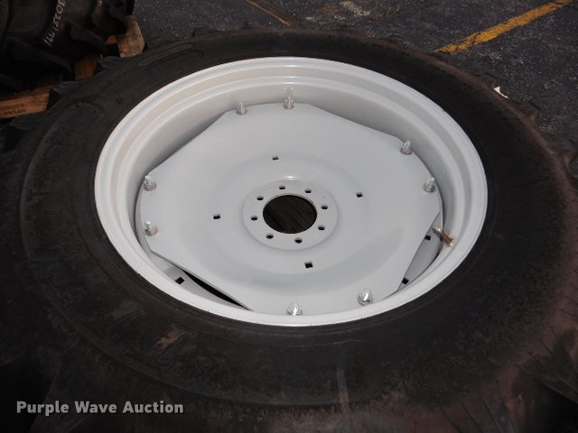 Purple Wave is selling a used Industrial Tires or Tracks in Texas. This item is a (4) Titan 16.9/34 rear tire assemblies with the following: Left side, Bolt pattern: 8 bolt, 8" diameter, Pilot: 6", Tread: R1 Ag lug, Usage: MF4600, MF4600M, Item# 4330303M91