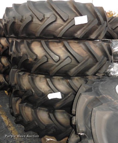 Purple Wave is selling a used Industrial Tires or Tracks in Maryland. This item is a (6) Galaxy 16.9/34 rear tire assemblies with the following: Right side, Bolt pattern: 8 bolt, 8" diameter, Pilot: 6", Tread: R1 Ag lug, Usage: MF4600, MF4600M, Item# 4330550M91