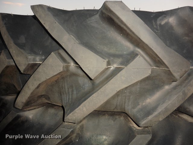 Purple Wave is selling a used Industrial Tires or Tracks in Texas. This item is a (4) Goodyear 13.6x28 R1 rear tire assemblies with the following: Bolt pattern: 8 bolt, 6" diameter, Pilot: 4.262", Tread: R1 Ag lug, Usage: MF2600, Item# 4338601R