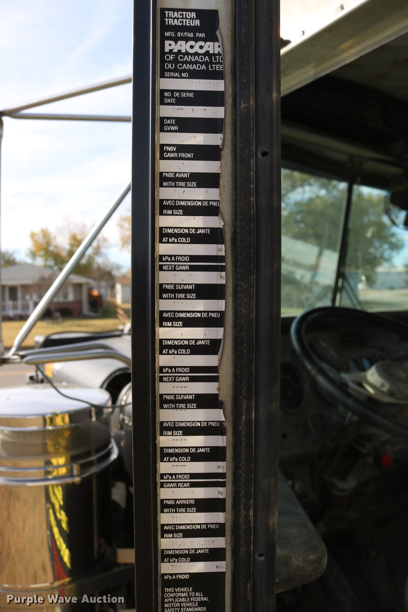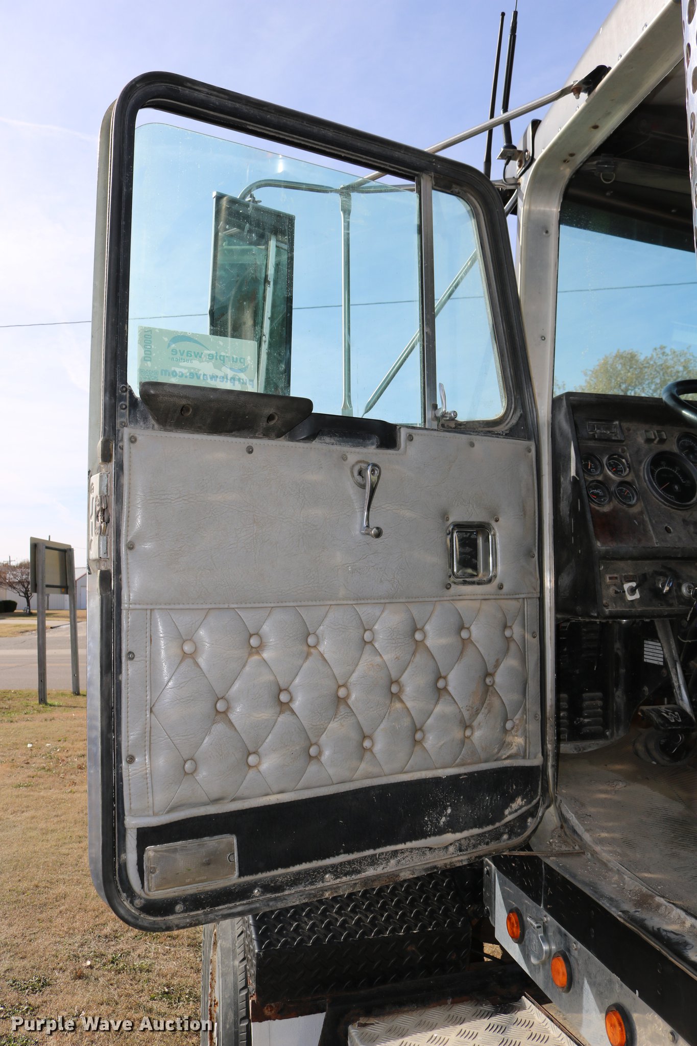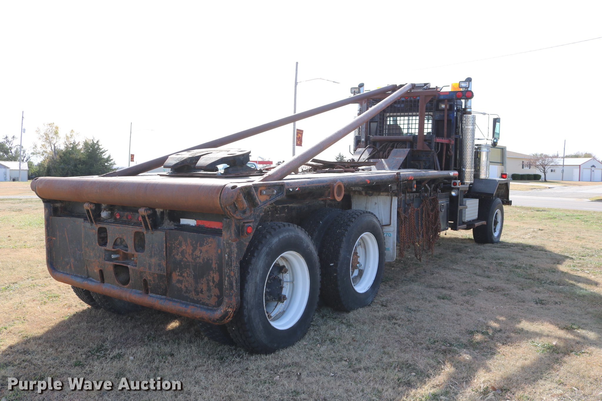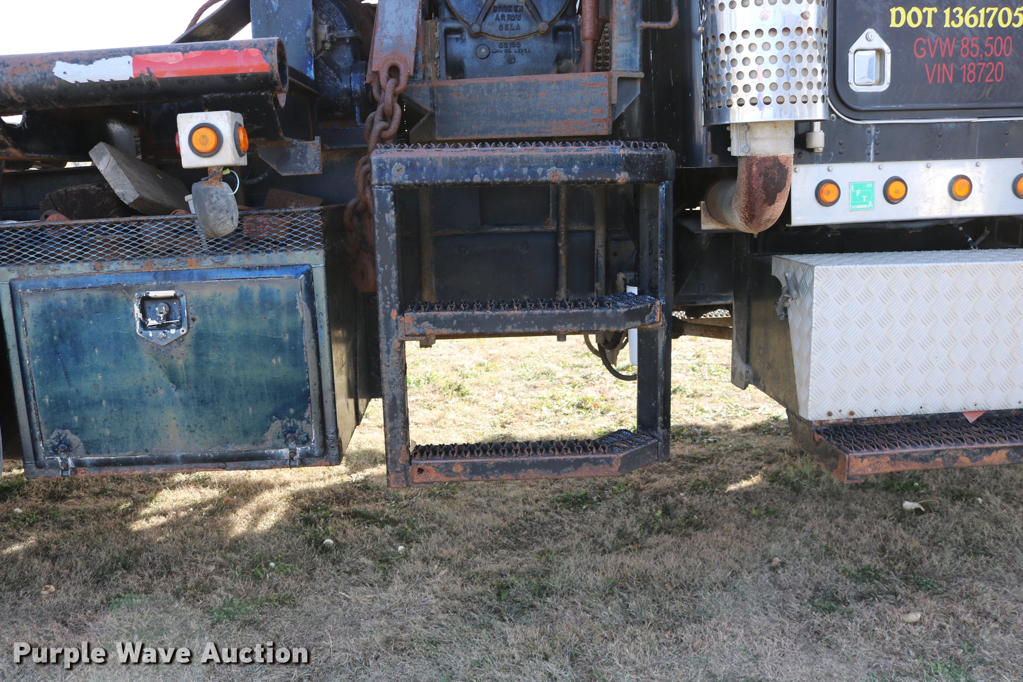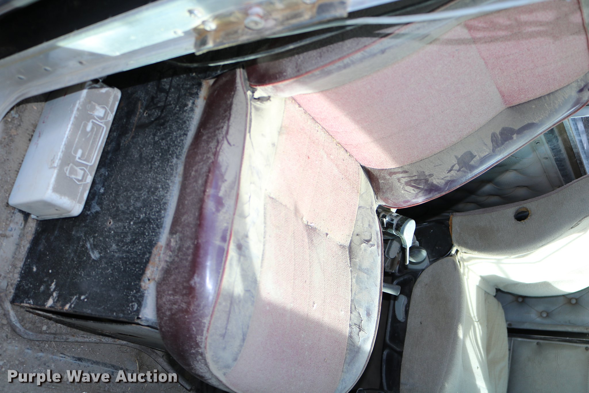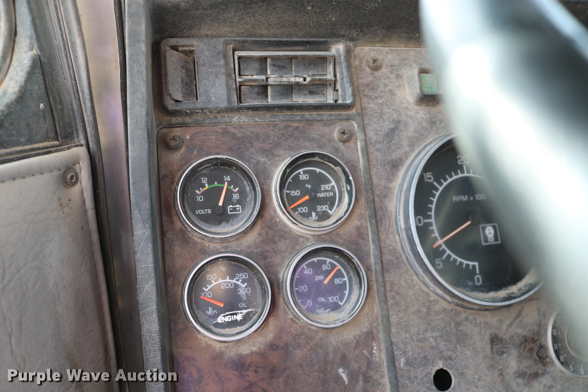 Purple Wave is selling a used Flat Bed Truck in Kansas. This item is a 1988 Kenworth LW900 flatbed truck with the following: 6,674 km on odometer, 5,109 hours on meter, Caterpillar 3406 DITA six cylinder turbo diesel engine, Eaton Fuller 1362C 13 speed manual transmission, Tandem axle, AC and heat, AM/FM/CD, Heated mirrors, Air suspension seat, Block heater, PTO, Dual exhaust stacks, Flatbed, Wood and steel floor, Headache rack, Branden winch, Tulsa winch, 18.5' gin poles, Toolboxes, Rolling tailboard, Fifth wheel plate, Trailer wiring, Outlet broken, Dual fuel tanks, Spring over walking beam suspension, Air brakes, Approx. 276" wheelbase, 425/65R22.5 front tires, 11R22.5 rear tires, GVWR 29,031 lbs, FAWR 9,165 lbs, IAWR 10,433 lbs, RAWR 10,433 lbs, Low air pressure light on, No power steering, One fuel tank may not be hooked up, Two air hoses disconnected by PTO