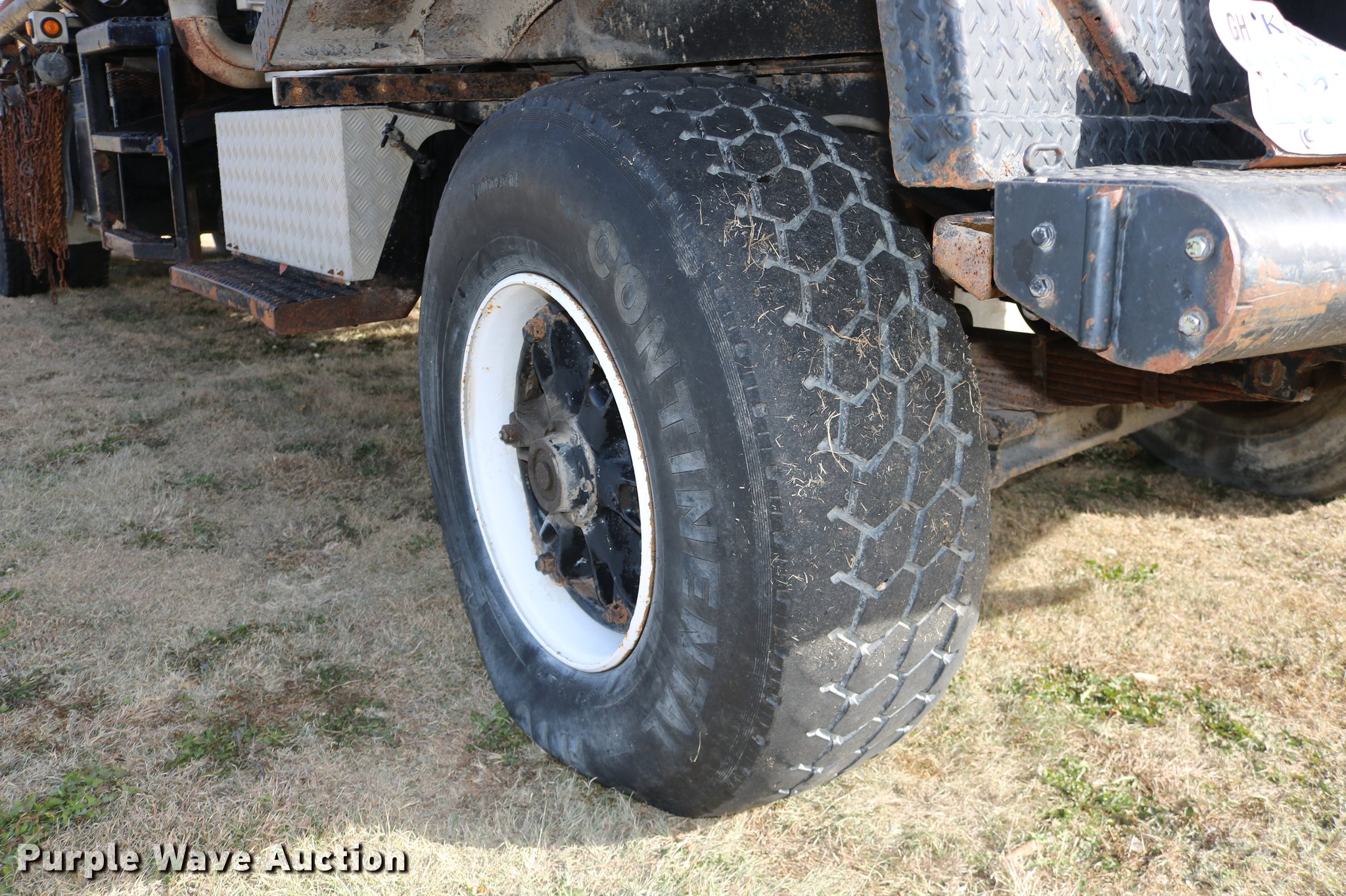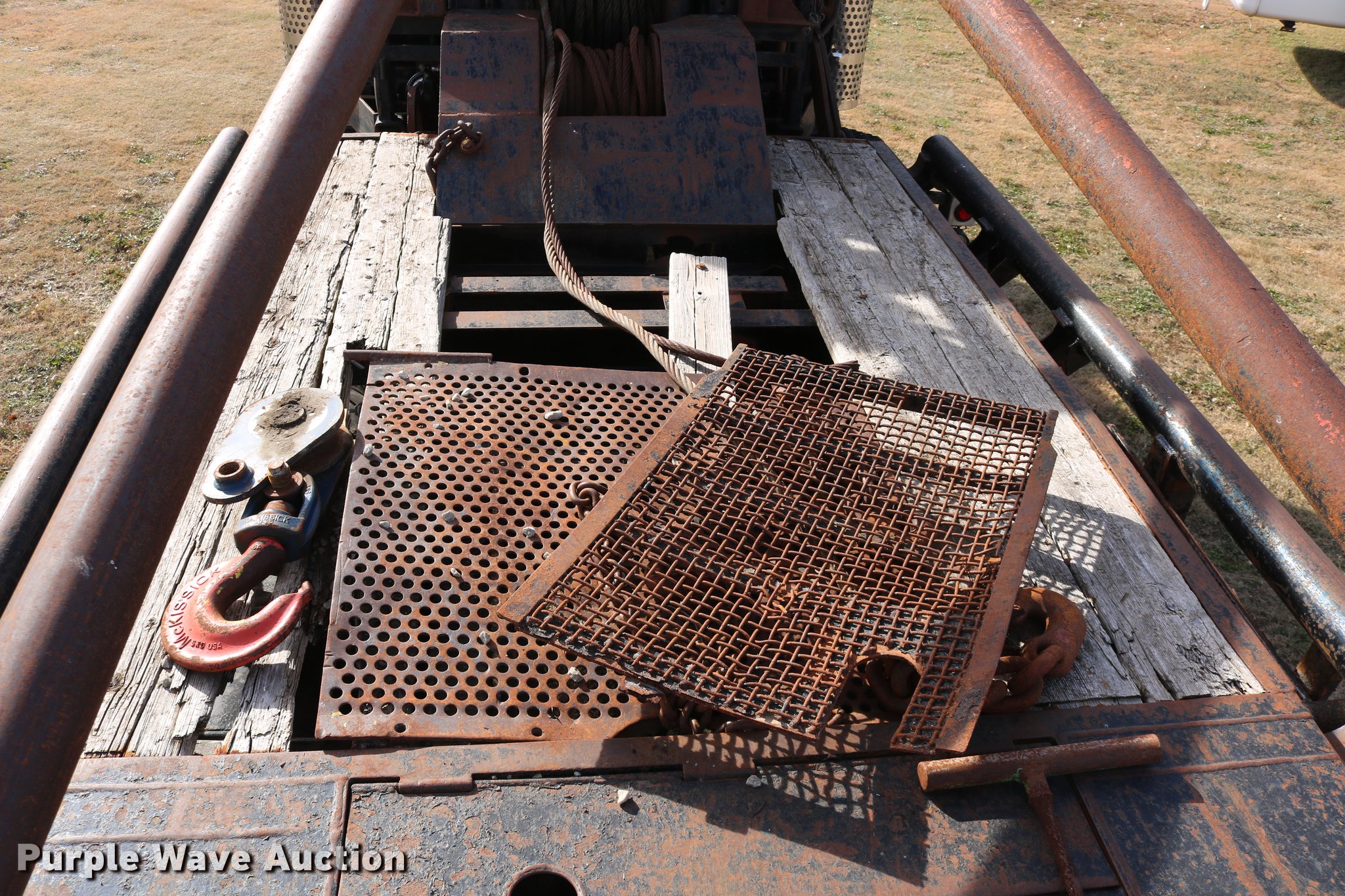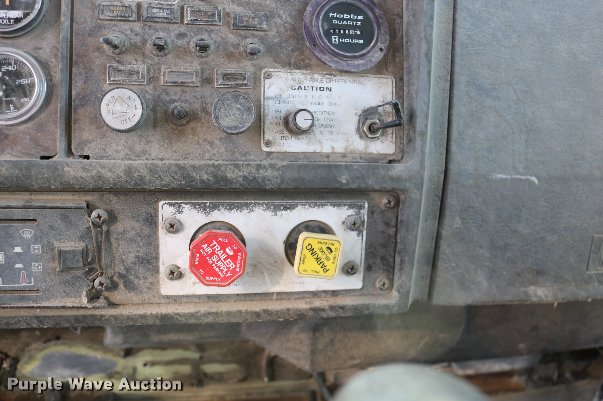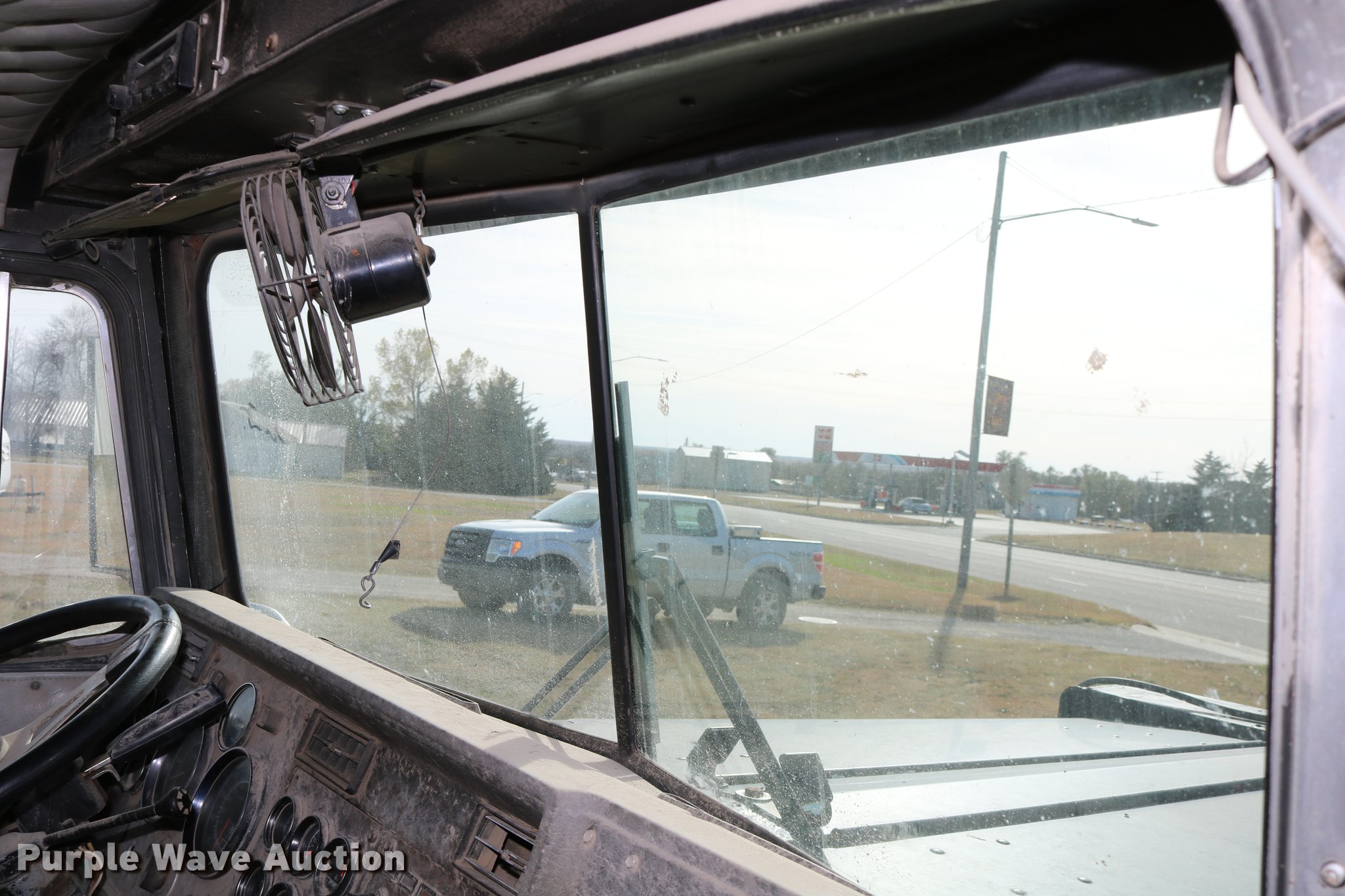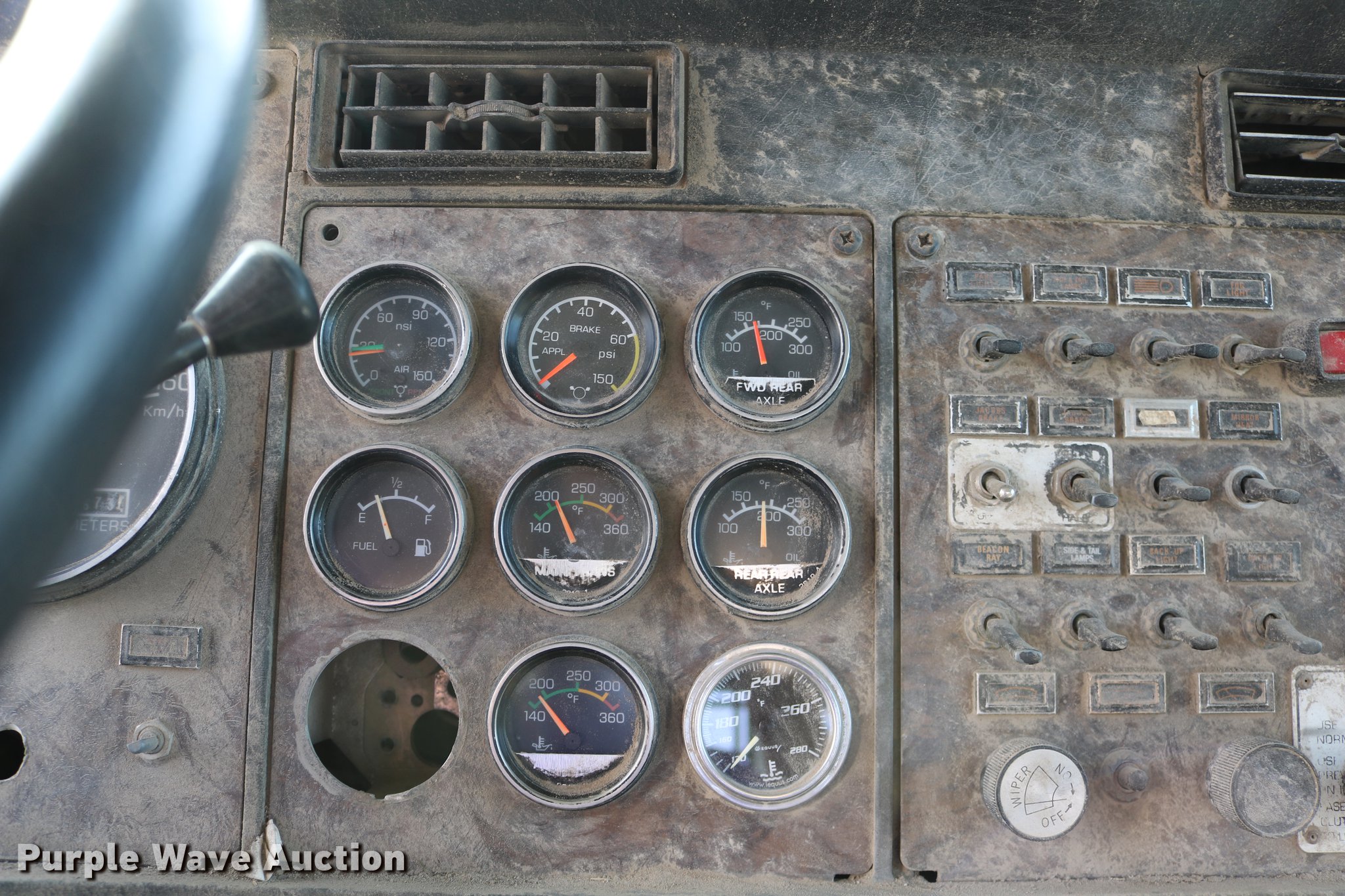 Purple Wave is selling a used Flat Bed Truck in Kansas. This item is a 1988 Kenworth LW900 flatbed truck with the following: 6,674 km on odometer, 5,109 hours on meter, Caterpillar 3406 DITA six cylinder turbo diesel engine, Eaton Fuller 1362C 13 speed manual transmission, Tandem axle, AC and heat, AM/FM/CD, Heated mirrors, Air suspension seat, Block heater, PTO, Dual exhaust stacks, Flatbed, Wood and steel floor, Headache rack, Branden winch, Tulsa winch, 18.5' gin poles, Toolboxes, Rolling tailboard, Fifth wheel plate, Trailer wiring, Outlet broken, Dual fuel tanks, Spring over walking beam suspension, Air brakes, Approx. 276" wheelbase, 425/65R22.5 front tires, 11R22.5 rear tires, GVWR 29,031 lbs, FAWR 9,165 lbs, IAWR 10,433 lbs, RAWR 10,433 lbs, Low air pressure light on, No power steering, One fuel tank may not be hooked up, Two air hoses disconnected by PTO