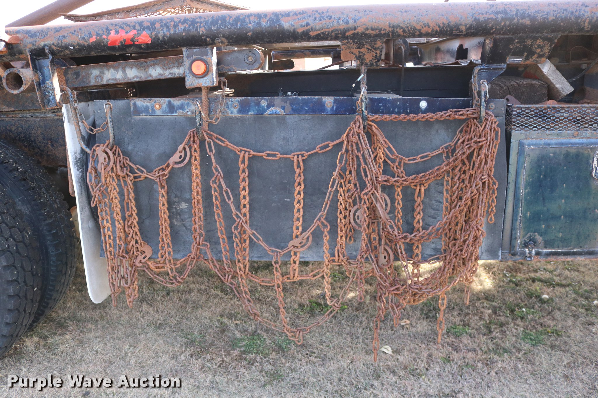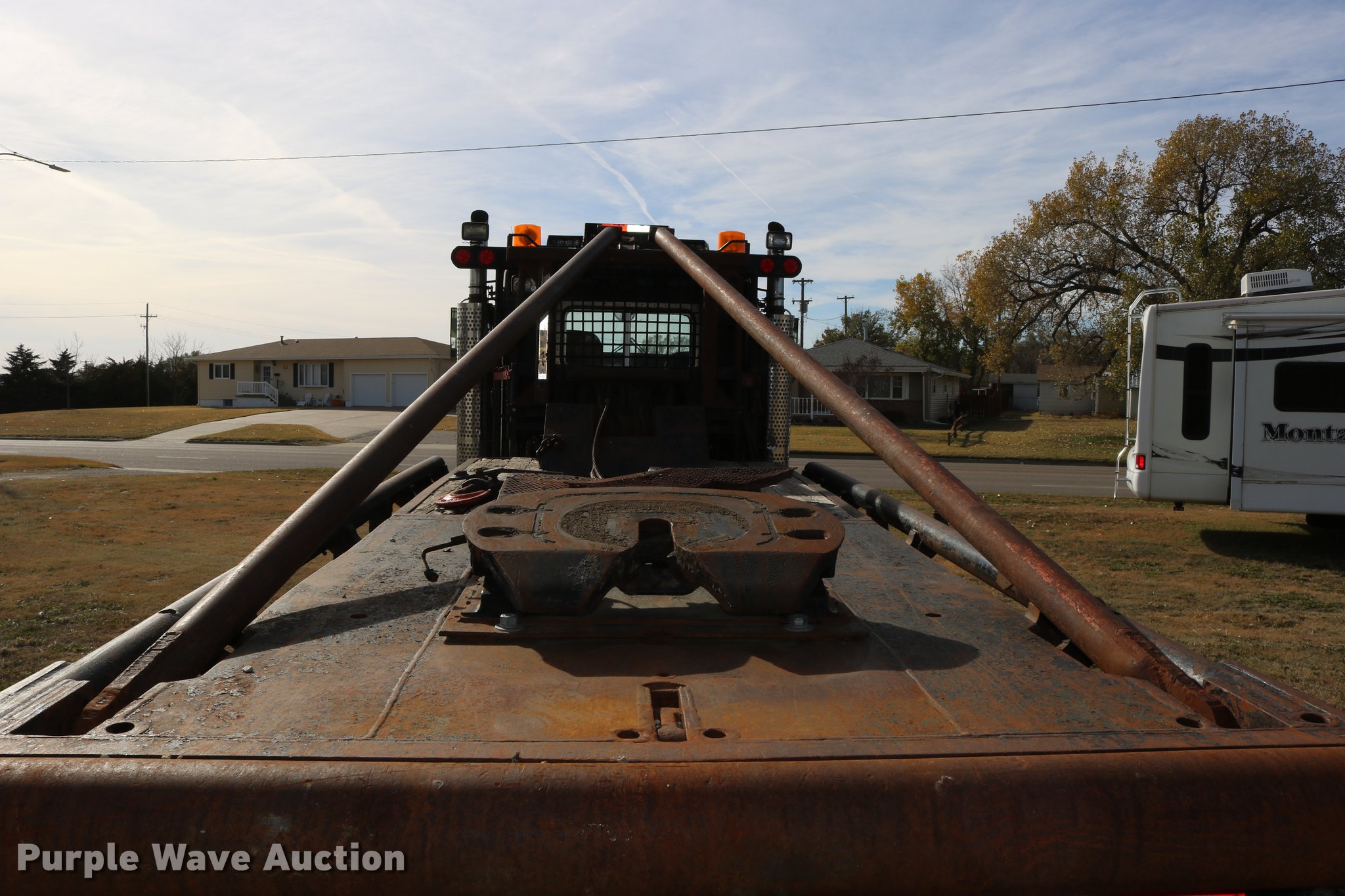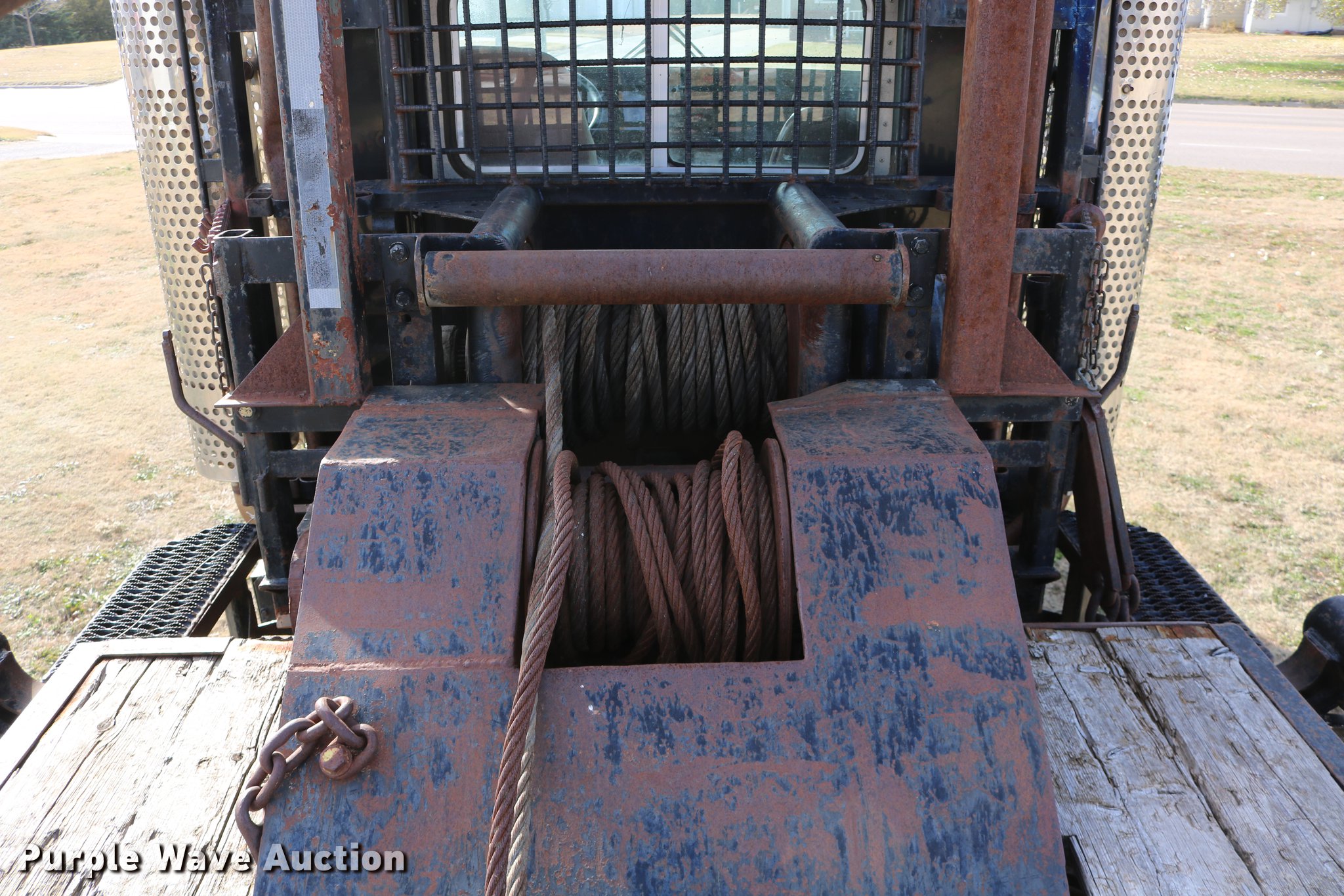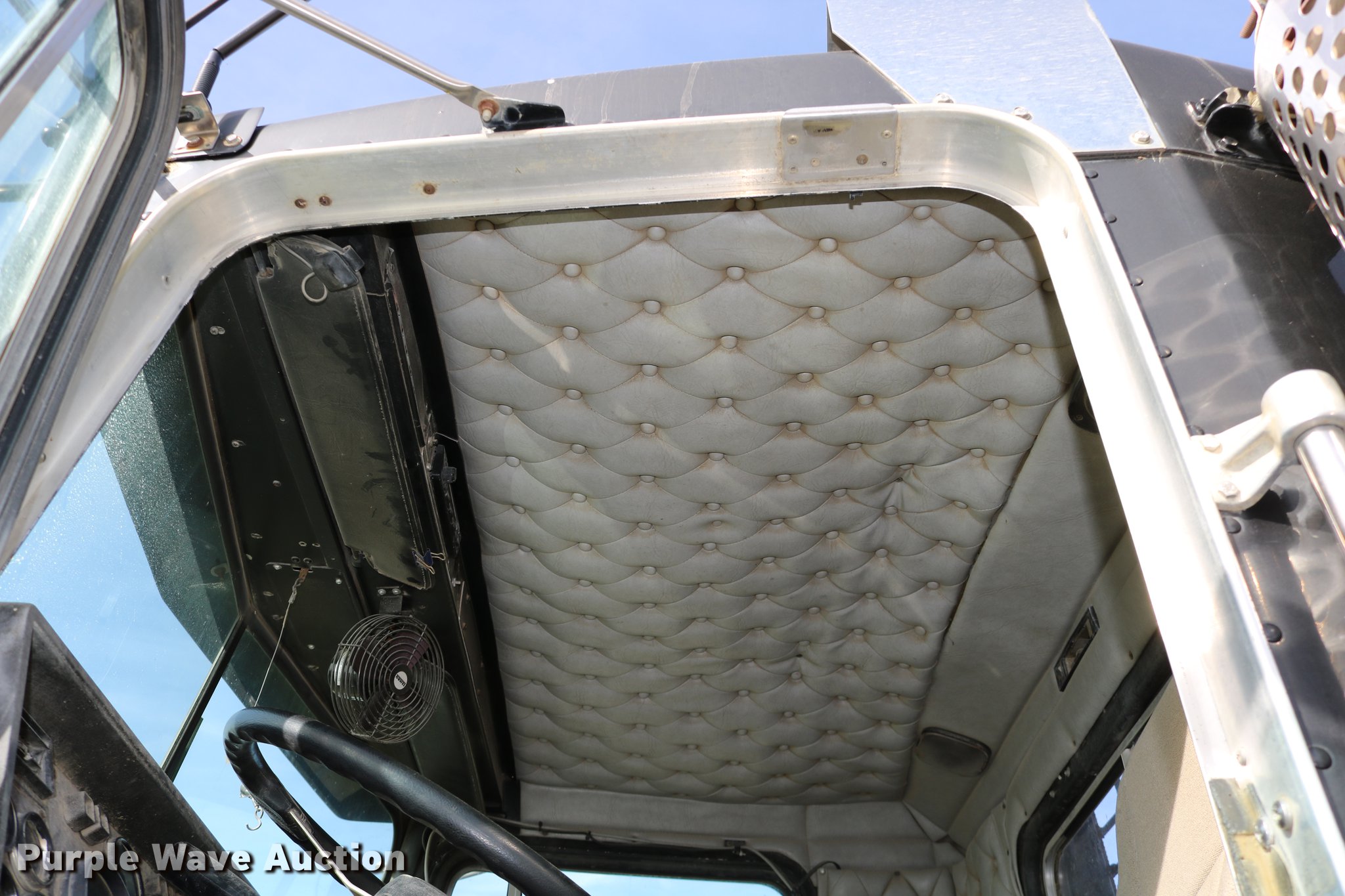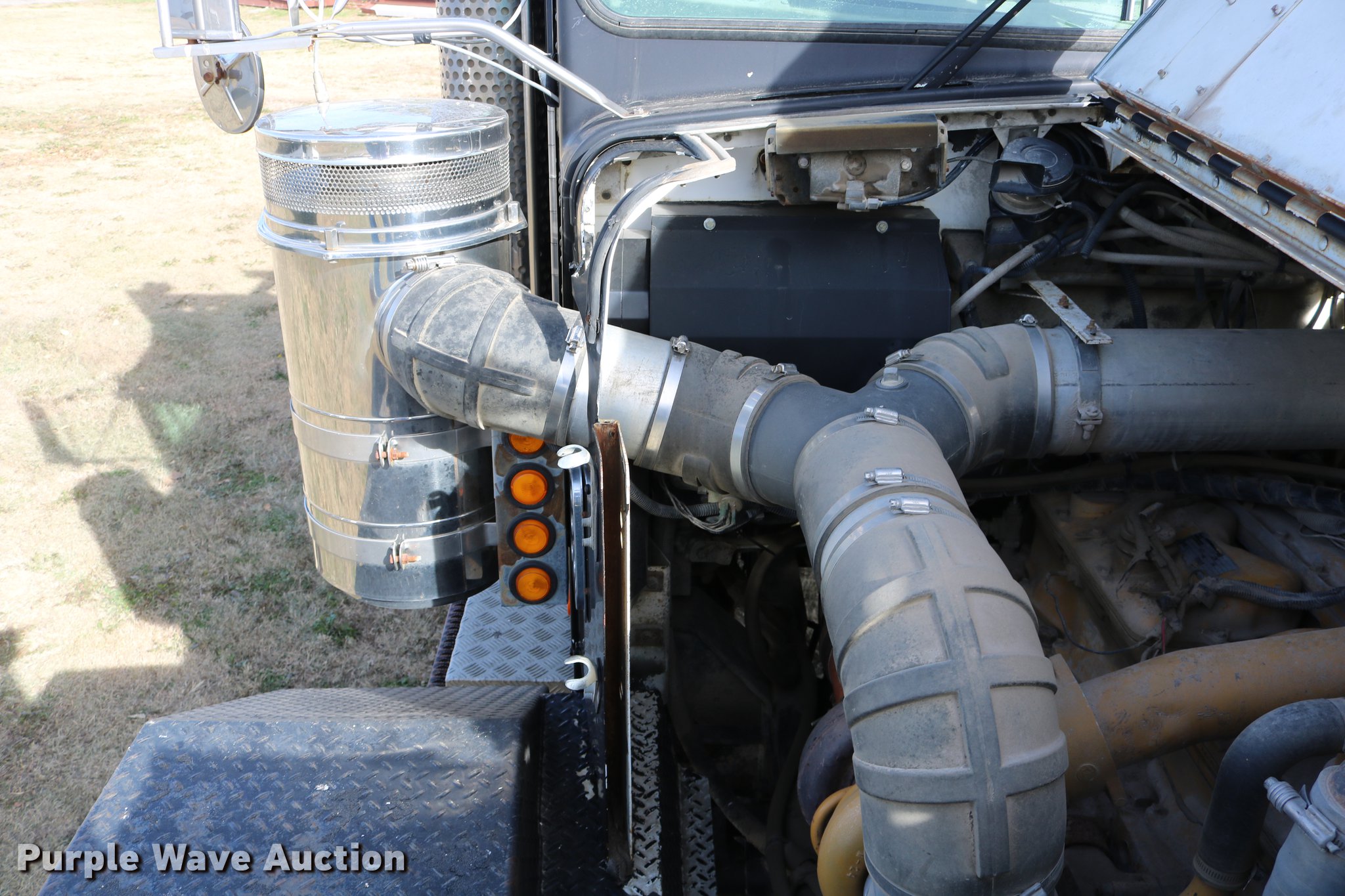 Purple Wave is selling a used Flat Bed Truck in Kansas. This item is a 1988 Kenworth LW900 flatbed truck with the following: 6,674 km on odometer, 5,109 hours on meter, Caterpillar 3406 DITA six cylinder turbo diesel engine, Eaton Fuller 1362C 13 speed manual transmission, Tandem axle, AC and heat, AM/FM/CD, Heated mirrors, Air suspension seat, Block heater, PTO, Dual exhaust stacks, Flatbed, Wood and steel floor, Headache rack, Branden winch, Tulsa winch, 18.5' gin poles, Toolboxes, Rolling tailboard, Fifth wheel plate, Trailer wiring, Outlet broken, Dual fuel tanks, Spring over walking beam suspension, Air brakes, Approx. 276" wheelbase, 425/65R22.5 front tires, 11R22.5 rear tires, GVWR 29,031 lbs, FAWR 9,165 lbs, IAWR 10,433 lbs, RAWR 10,433 lbs, Low air pressure light on, No power steering, One fuel tank may not be hooked up, Two air hoses disconnected by PTO