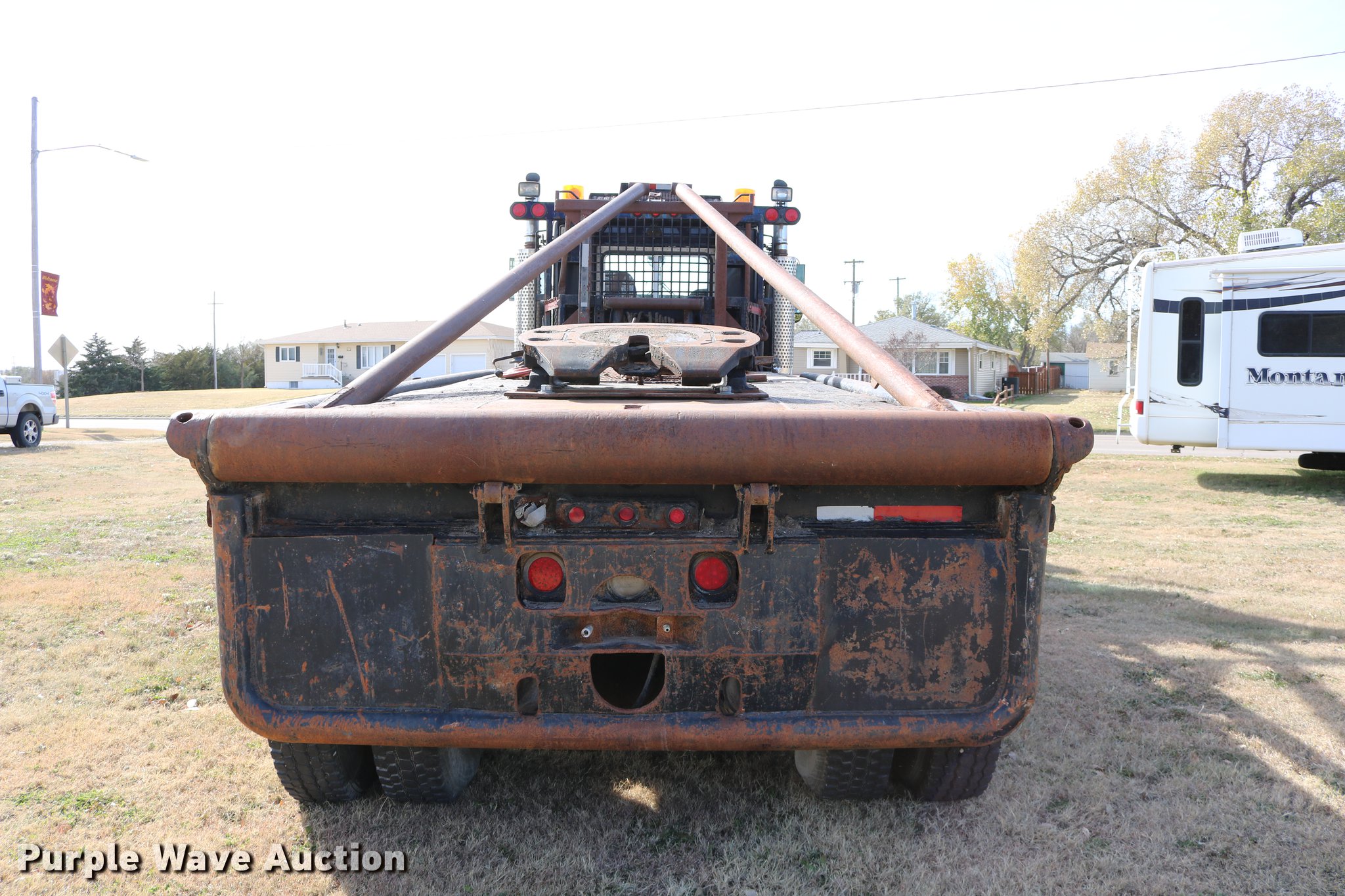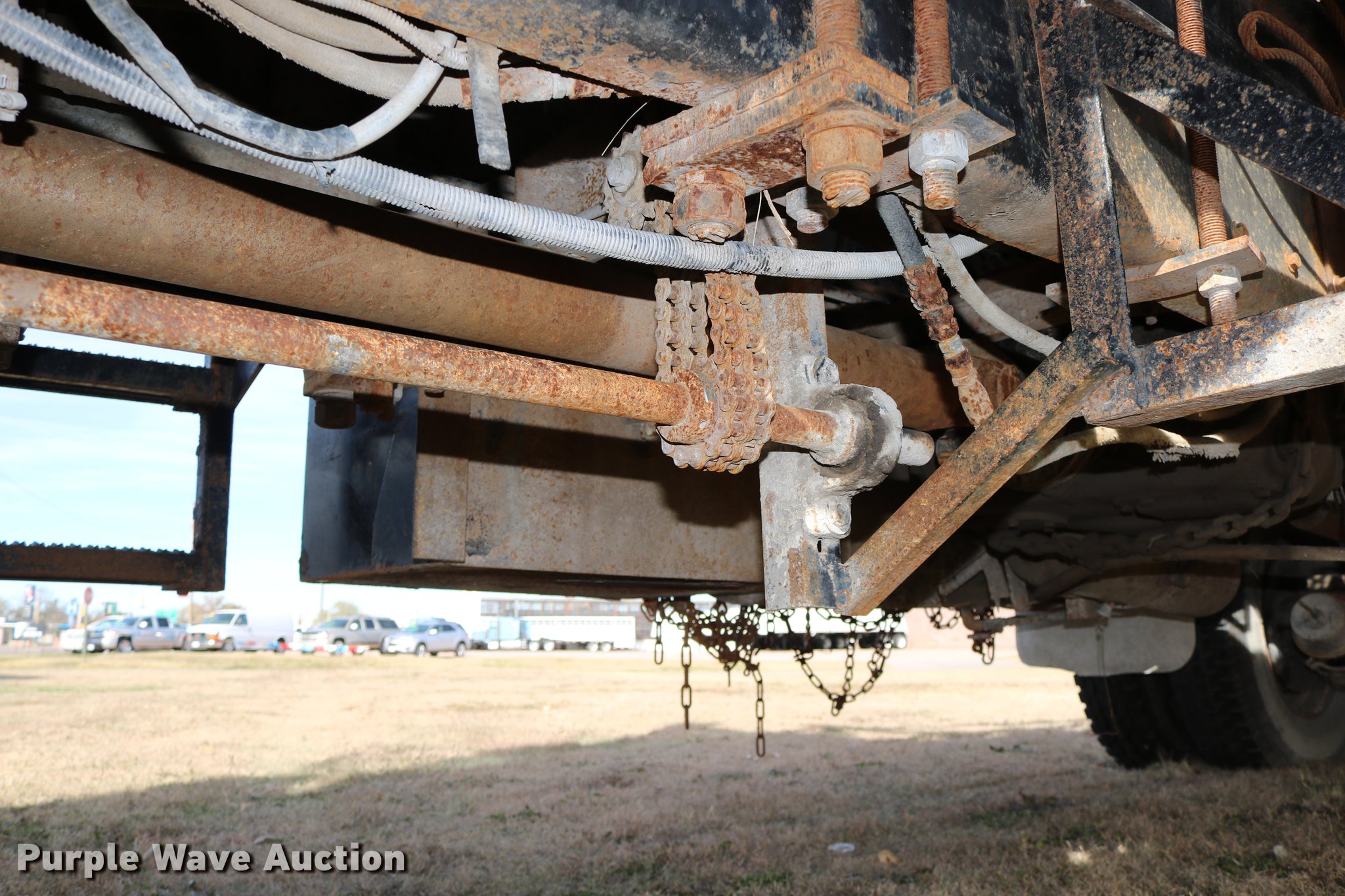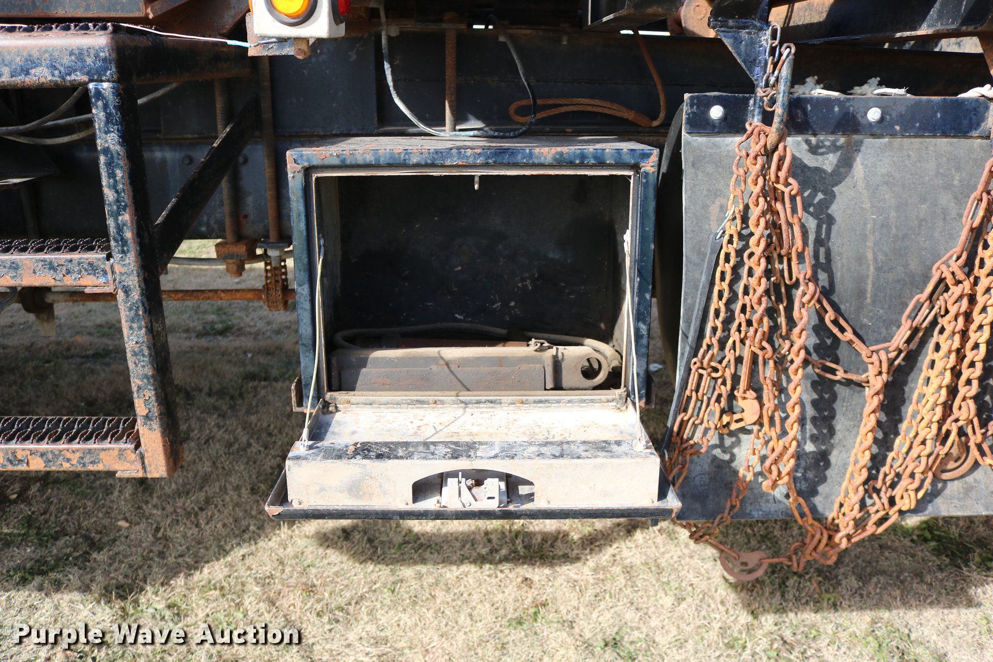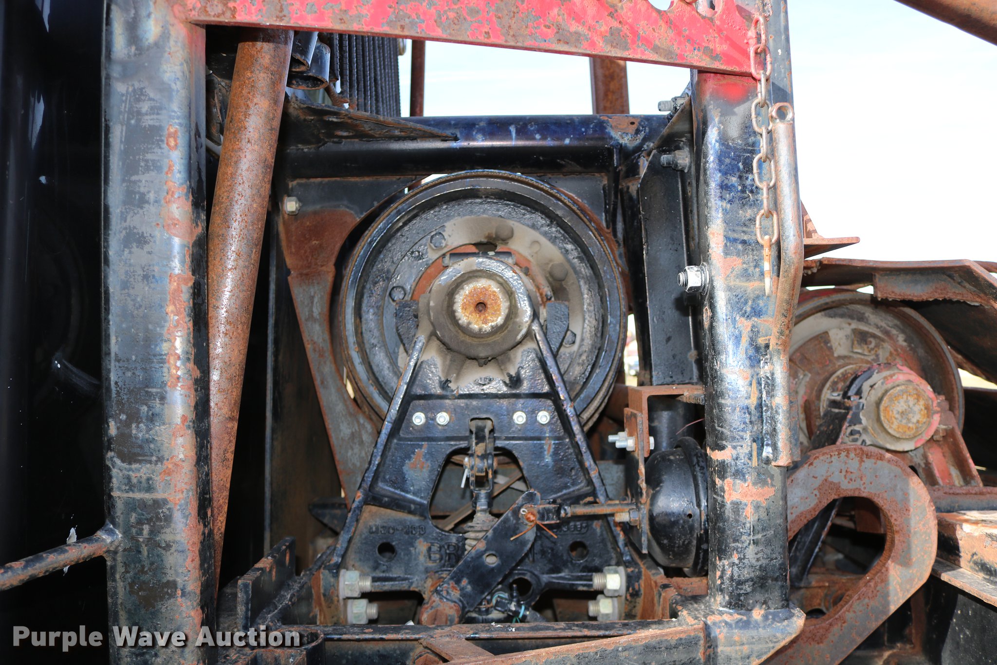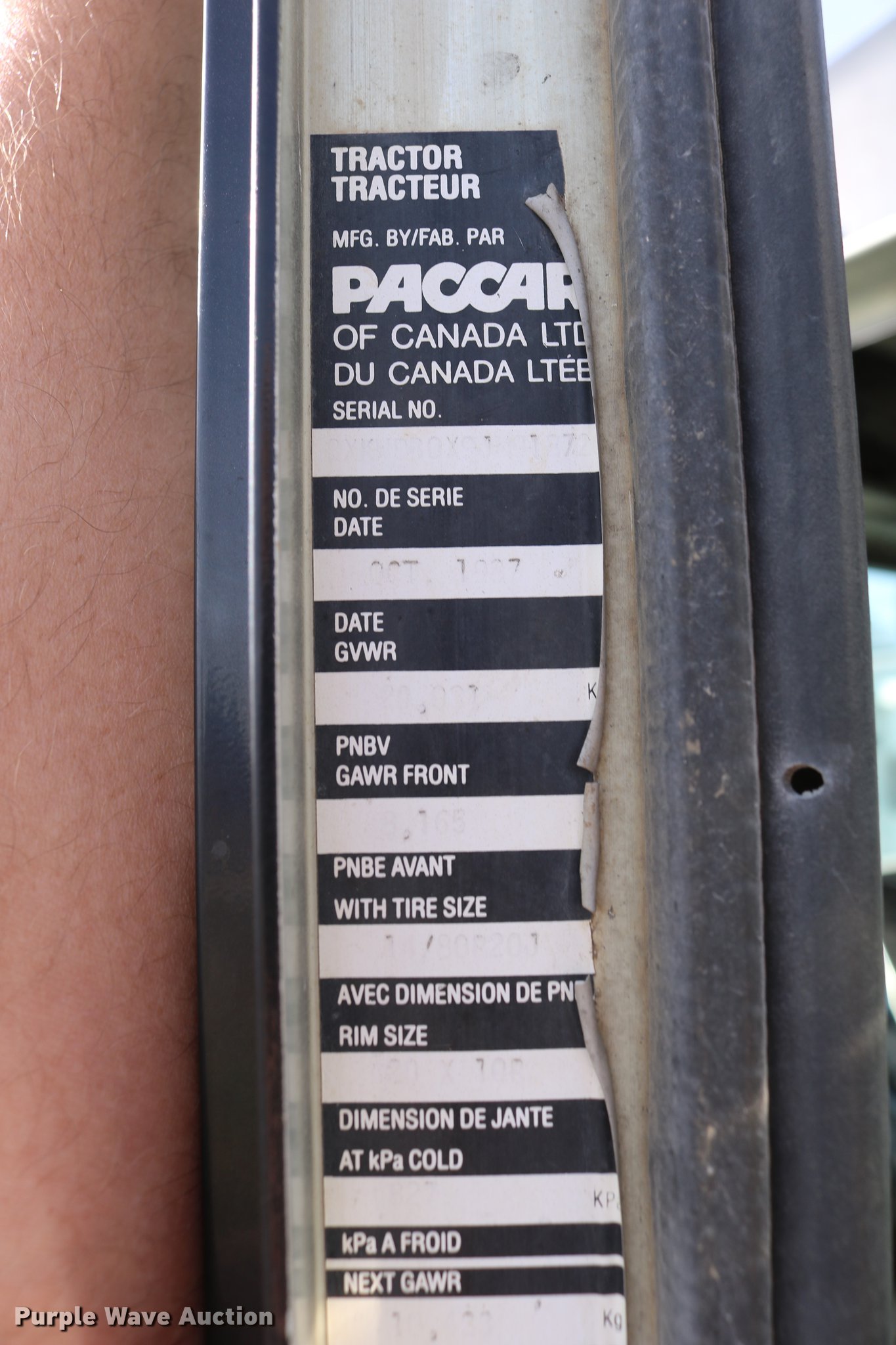 Purple Wave is selling a used Flat Bed Truck in Kansas. This item is a 1988 Kenworth LW900 flatbed truck with the following: 6,674 km on odometer, 5,109 hours on meter, Caterpillar 3406 DITA six cylinder turbo diesel engine, Eaton Fuller 1362C 13 speed manual transmission, Tandem axle, AC and heat, AM/FM/CD, Heated mirrors, Air suspension seat, Block heater, PTO, Dual exhaust stacks, Flatbed, Wood and steel floor, Headache rack, Branden winch, Tulsa winch, 18.5' gin poles, Toolboxes, Rolling tailboard, Fifth wheel plate, Trailer wiring, Outlet broken, Dual fuel tanks, Spring over walking beam suspension, Air brakes, Approx. 276" wheelbase, 425/65R22.5 front tires, 11R22.5 rear tires, GVWR 29,031 lbs, FAWR 9,165 lbs, IAWR 10,433 lbs, RAWR 10,433 lbs, Low air pressure light on, No power steering, One fuel tank may not be hooked up, Two air hoses disconnected by PTO
