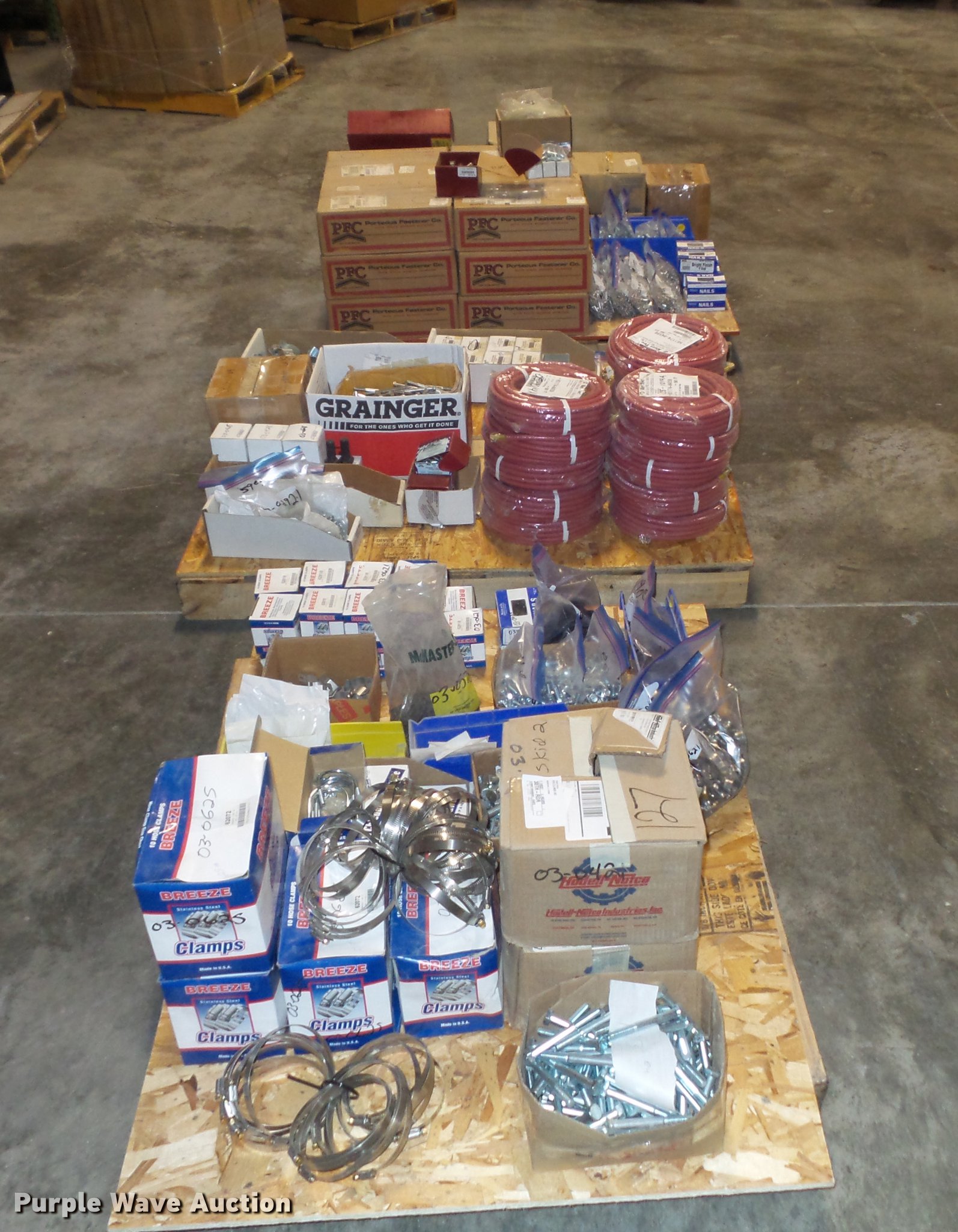 Purple Wave is selling a used Tools in Illinois. This item is a Hardware with the following: Bolts, nuts, and washers, Hinges, Hoses