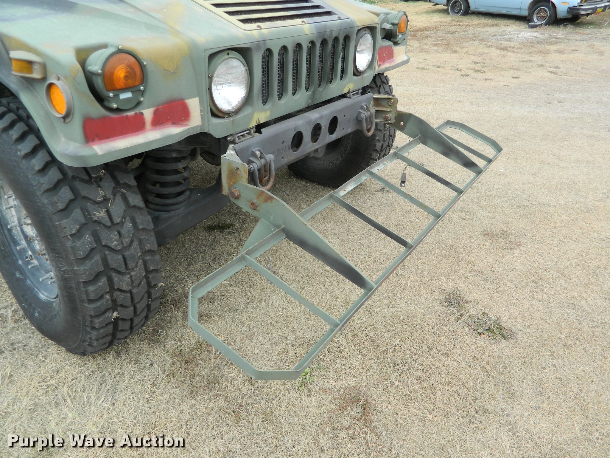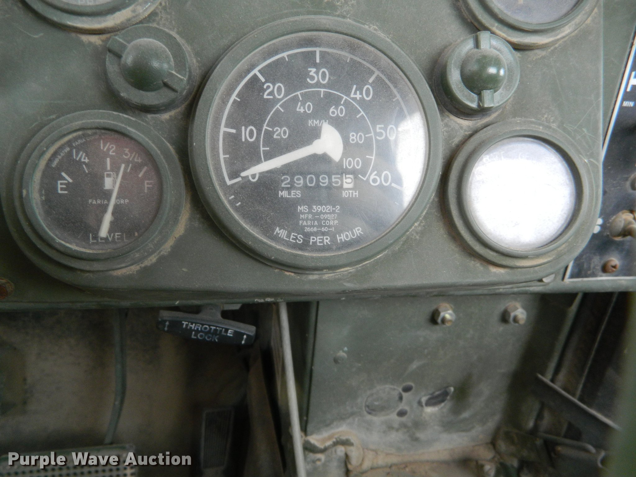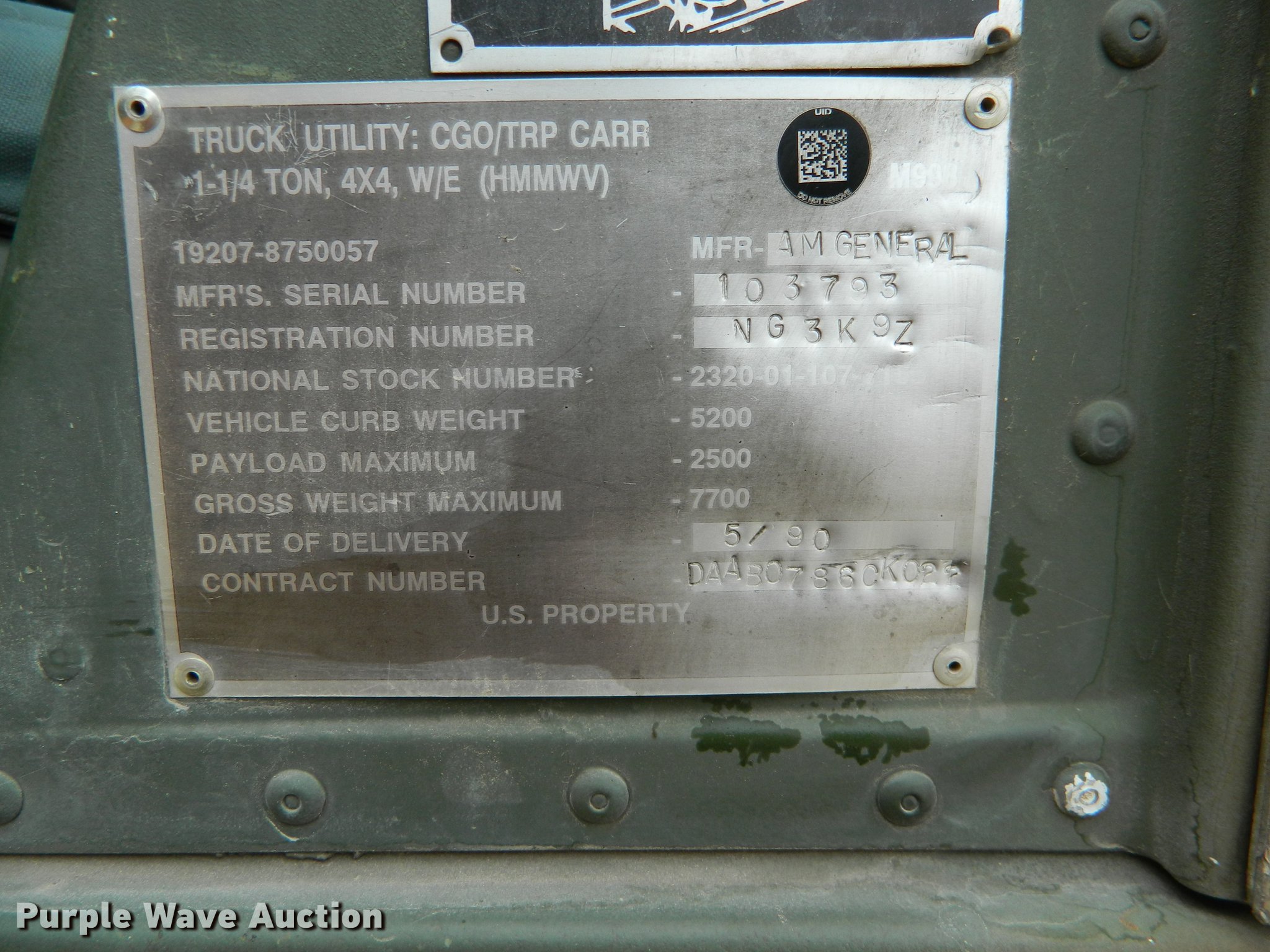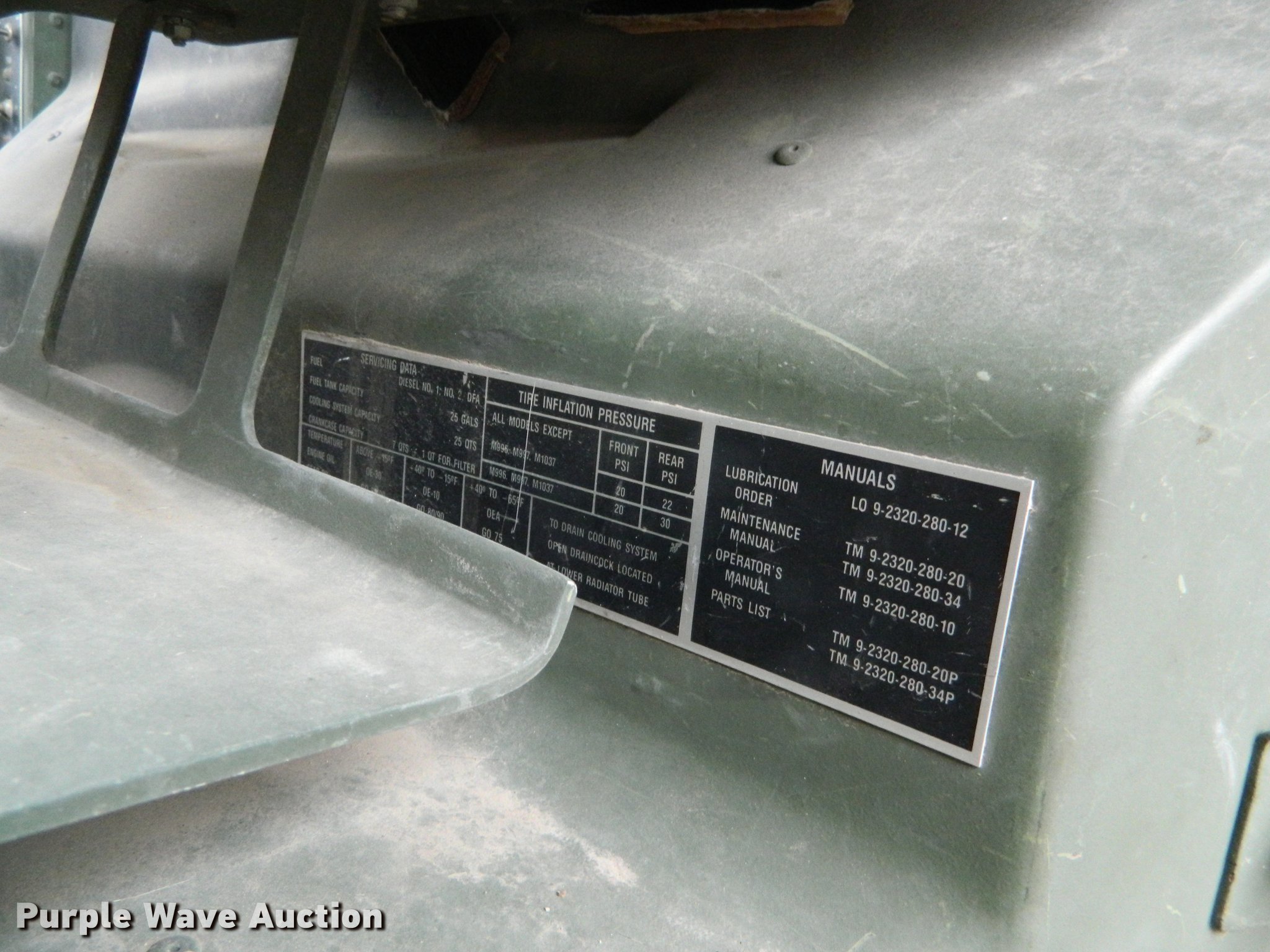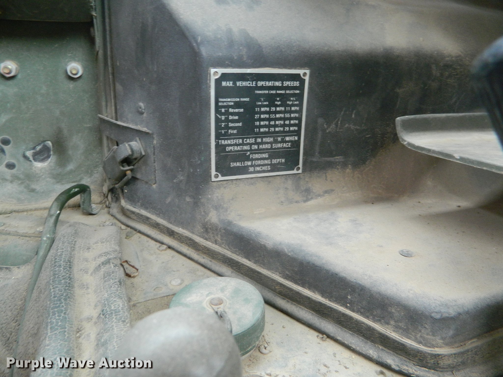 Purple Wave is selling a used 3/4 or 1 Ton Pickup or Van in Kansas. This item is a 1990 Am General M998 Humvee pickup truck with the following: 29,096 miles on odometer, 6.2L six cylinder diesel engine, Automatic transmission, Four wheel drive, Heat, Vinyl interior, Front tow hooks, Generator, 3 kW, Diesel engine, Folding seats in bed, Pintle hitch, Rear tie downs, 37x12.50R16.5 tires, Additional passenger door
