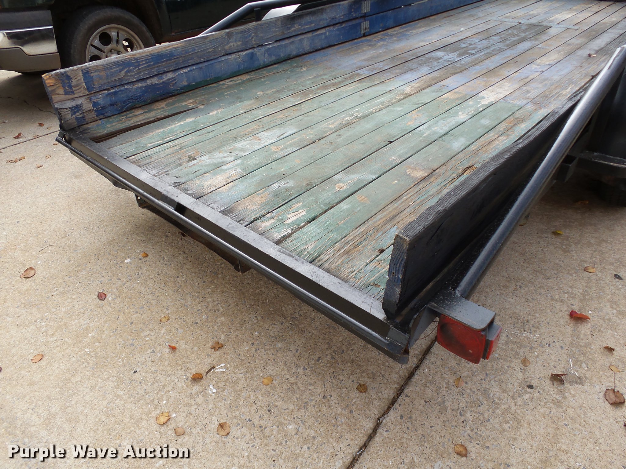 Purple Wave is selling a used Car or Utility Trailer in Oklahoma. This item is a 1991 B Welding car trailer with the following: 21.5'L x 102"W overall, 18.5'L x 76"W deck, 16"H side rails, 12"H side boards, Wood deck, Stake pockets, 2" ball hitch, Single leg landing gear, Spring suspension, Tandem axle, Electric brakes, GVWR 10,000 lbs, GAWR 5,000 lbs, Steel wheels, ST205/75D15 tires