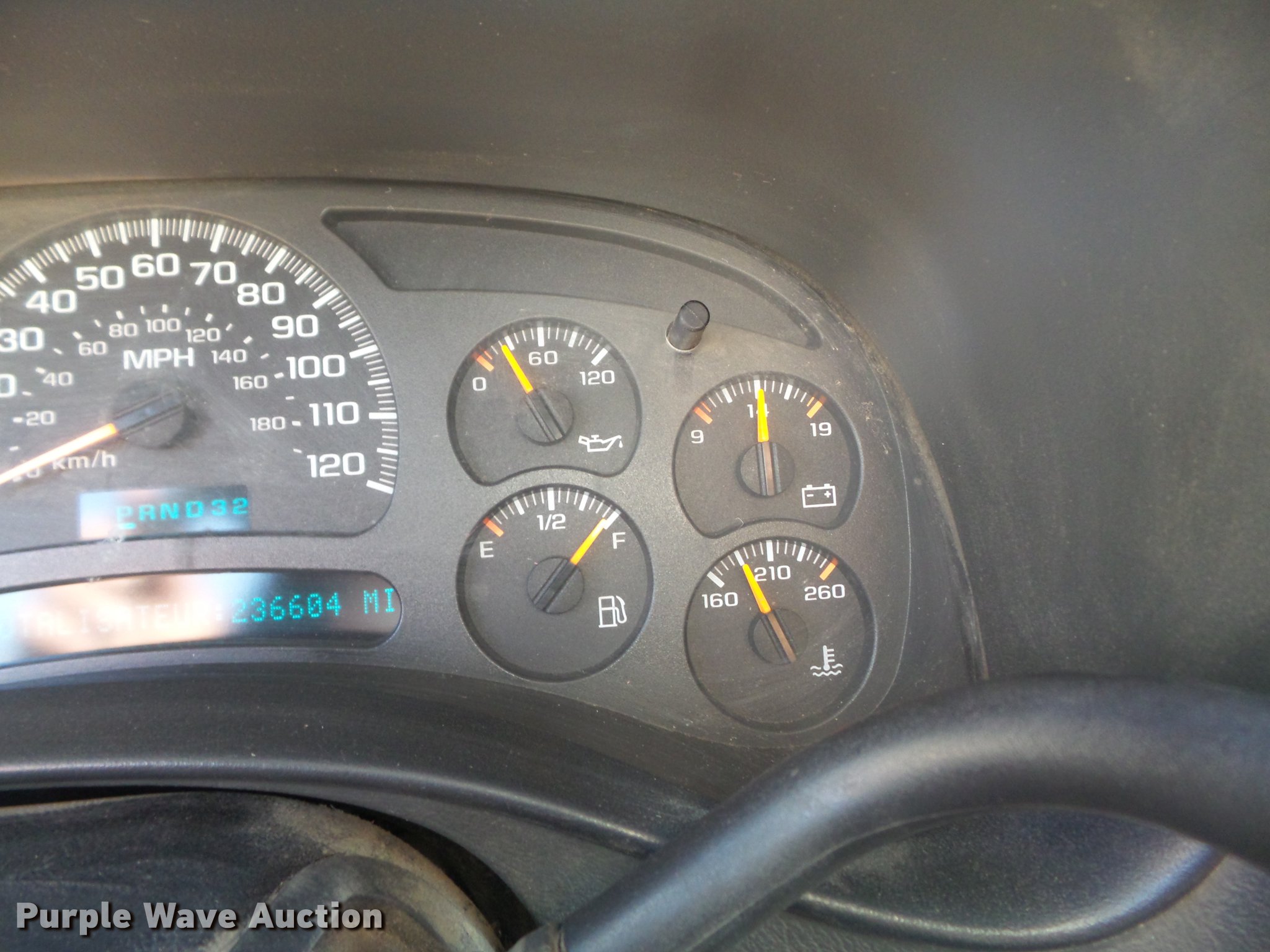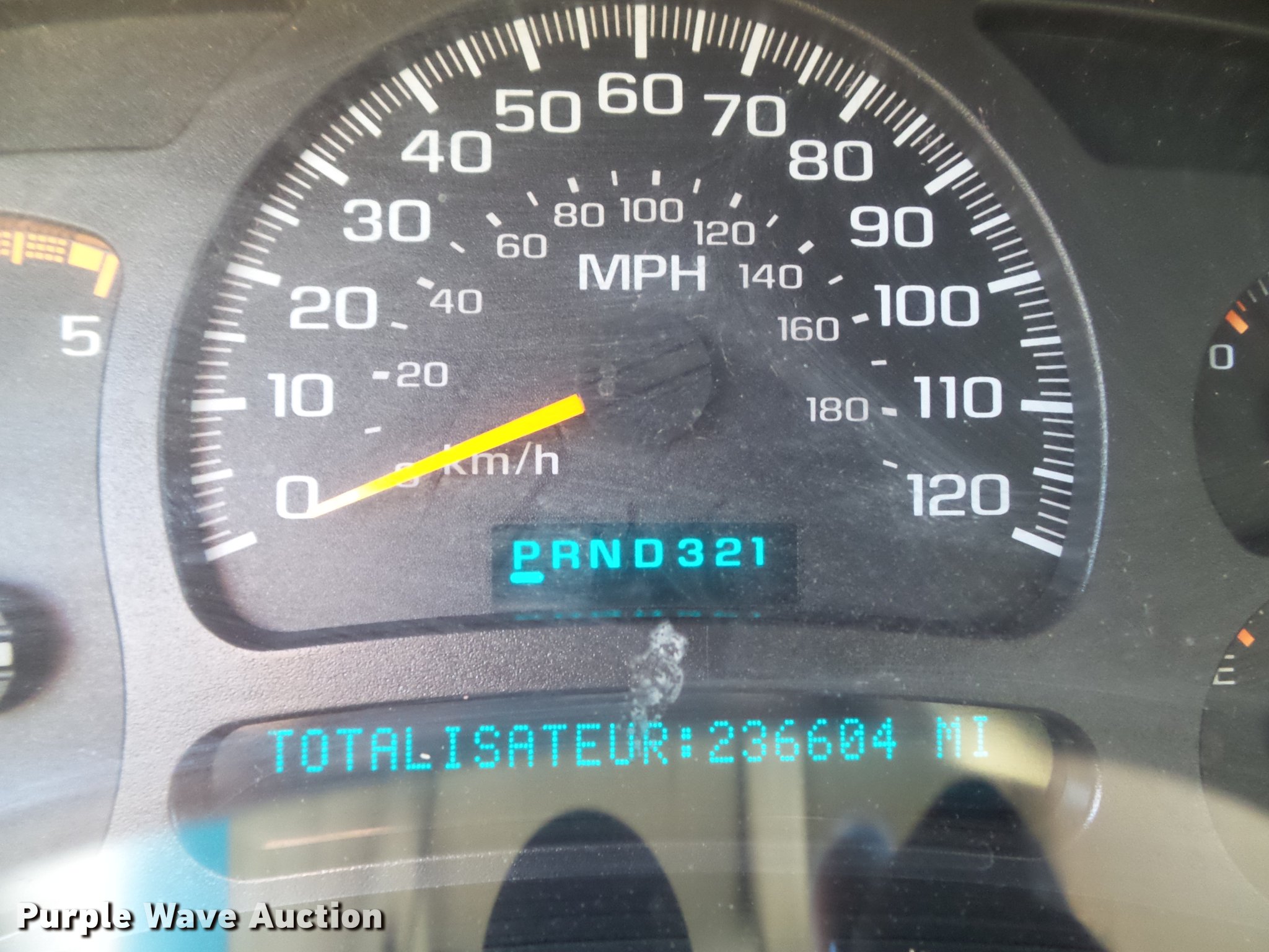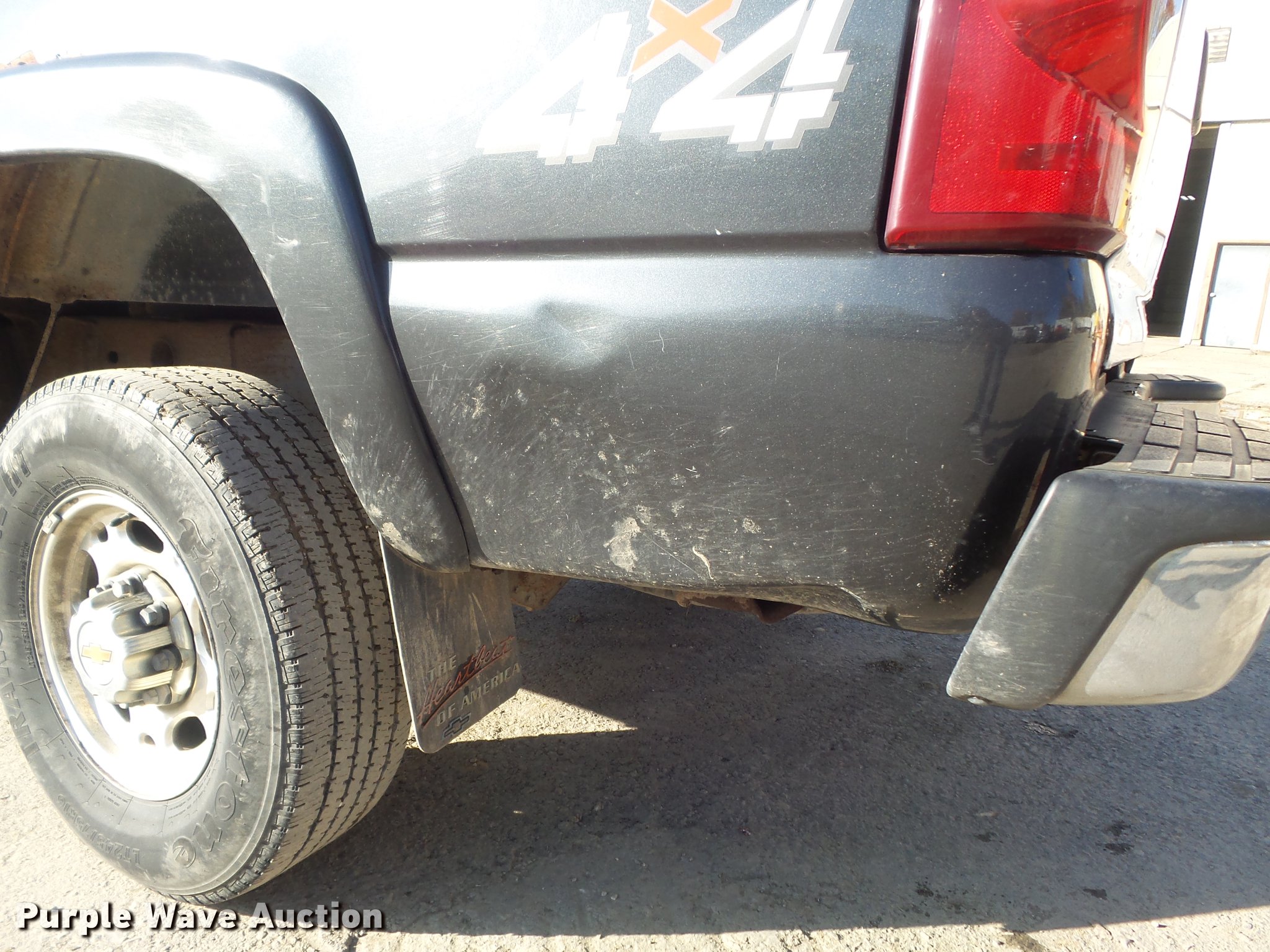 Purple Wave is selling a used 3/4 or 1 Ton Pickup or Van in Missouri. This item is a 2003 Chevrolet Silverado 2500HD Crew Cab pickup truck with the following: 236,604 miles on odometer, 6.6L V8 OHV 32V turbo diesel engine, Equipped with Bully Dog power chip, 55 to 110 HP boost,, Automatic transmission, Four wheel drive, AC and heat, Tilt, Cruise, AM/FM/CD, Power windows, locks, mirrors, and seat, Cloth inteiror, Front tow hooks, Long bed, Toolbox, Receiver hitch, Trailer wiring, LT245/75R16 tires, Dead battery, AC does not blow cold, may need to be recharged, Blower speed selector only works on settings two and three, Dashboard cluster flickers on and off, Service air bag light on, Hail damage