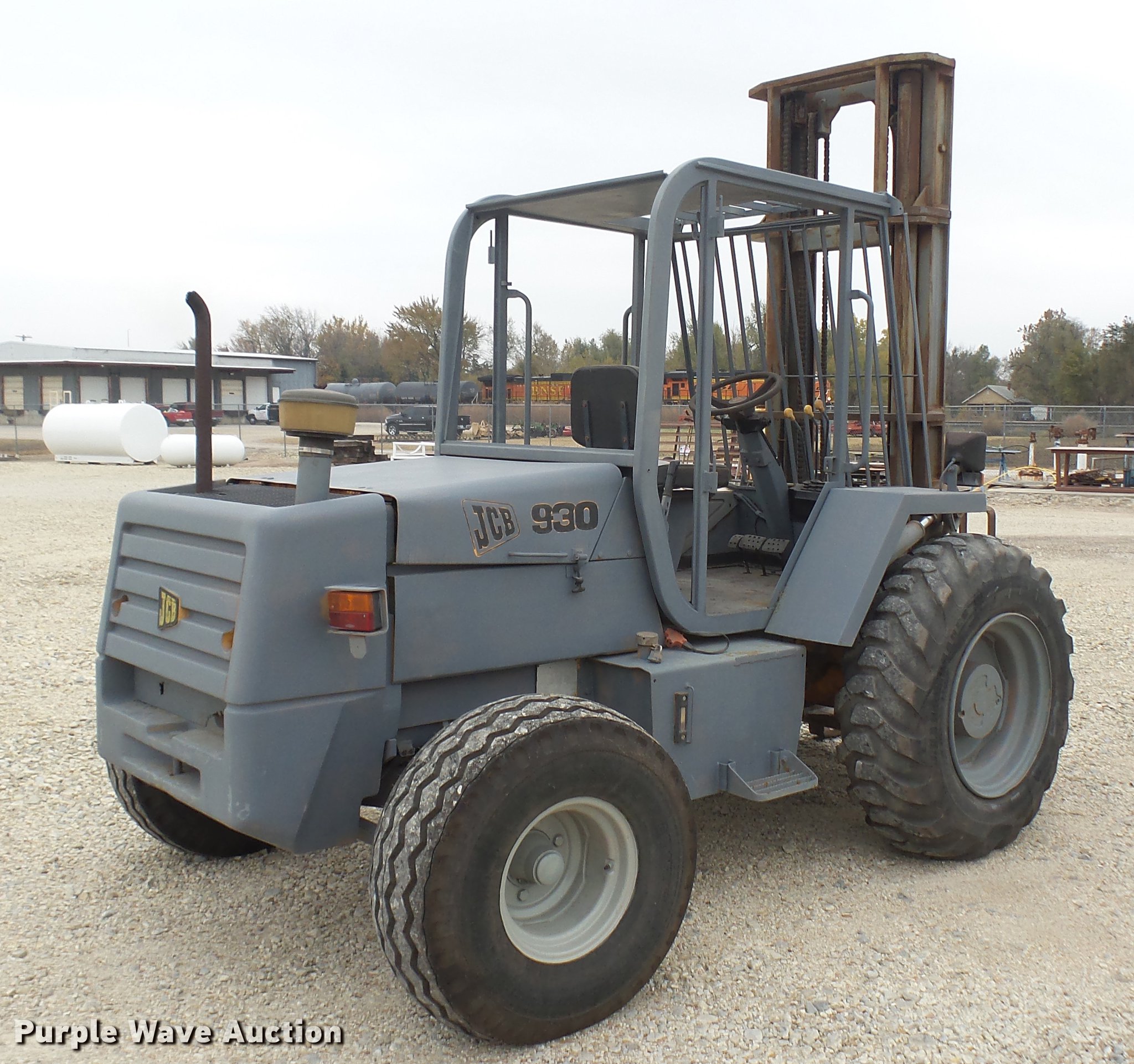 Purple Wave is selling a used Strt. Mast Rough Terr. Forklift in Kansas. This item is a 1996 JCB 930 forklift with the following: Perkins four cylinder diesel engine, Shuttle shift four speed transmission, 21' max lift height, Two stage mast, Side shift, Tilt, 48" fork length, 15.5-25 front tires, 14.5/75-16.1 rear tires, Serial SLP93002TE0661430
