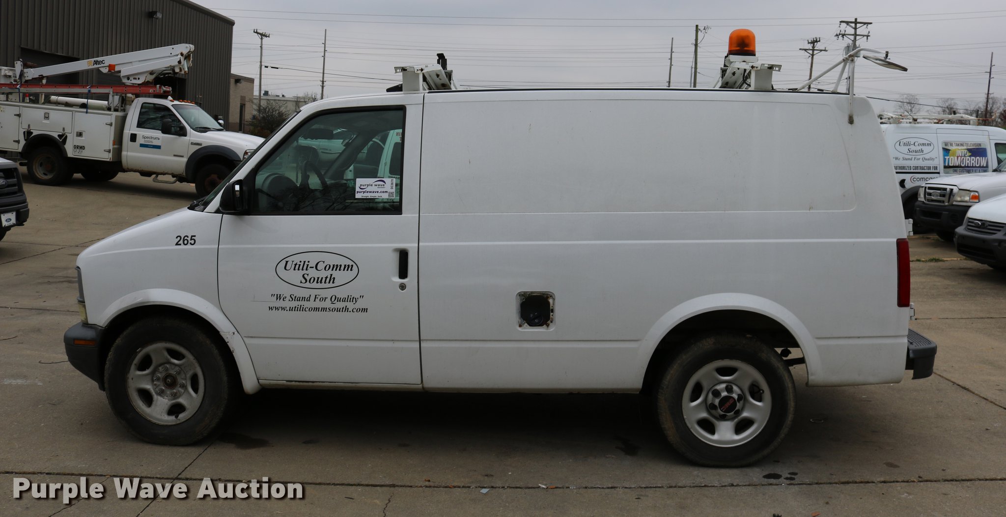 2005 GMC Safari van. Unknown miles on odometer, 4.3L V6 OHV 12V gas engine, Automatic transmission, AC and heat, AM/FM, Cloth interior, 215/70R16 tires, Non-operational instrument cluster, Bad startter, No battery, Engine overheats, Ignition switch issues, Radiator needs replaced, Rear door latch broken, Non-operational vehicle, Unit# 265. Kentucky title. 1GTDL19XX5B505909. Utili-Comm South. 6800 Powerline Dr. Florence, KY 41042