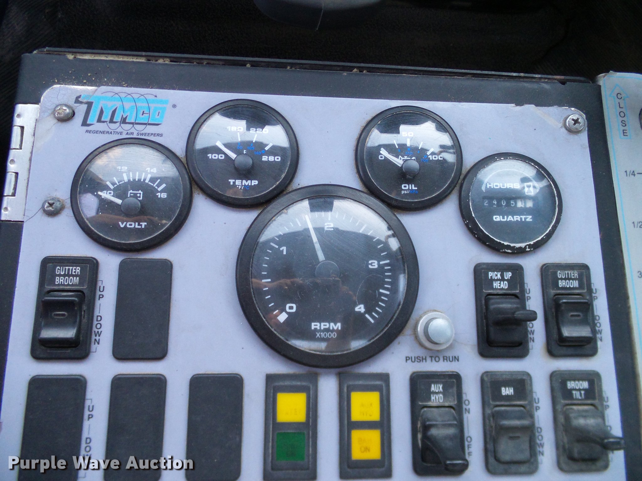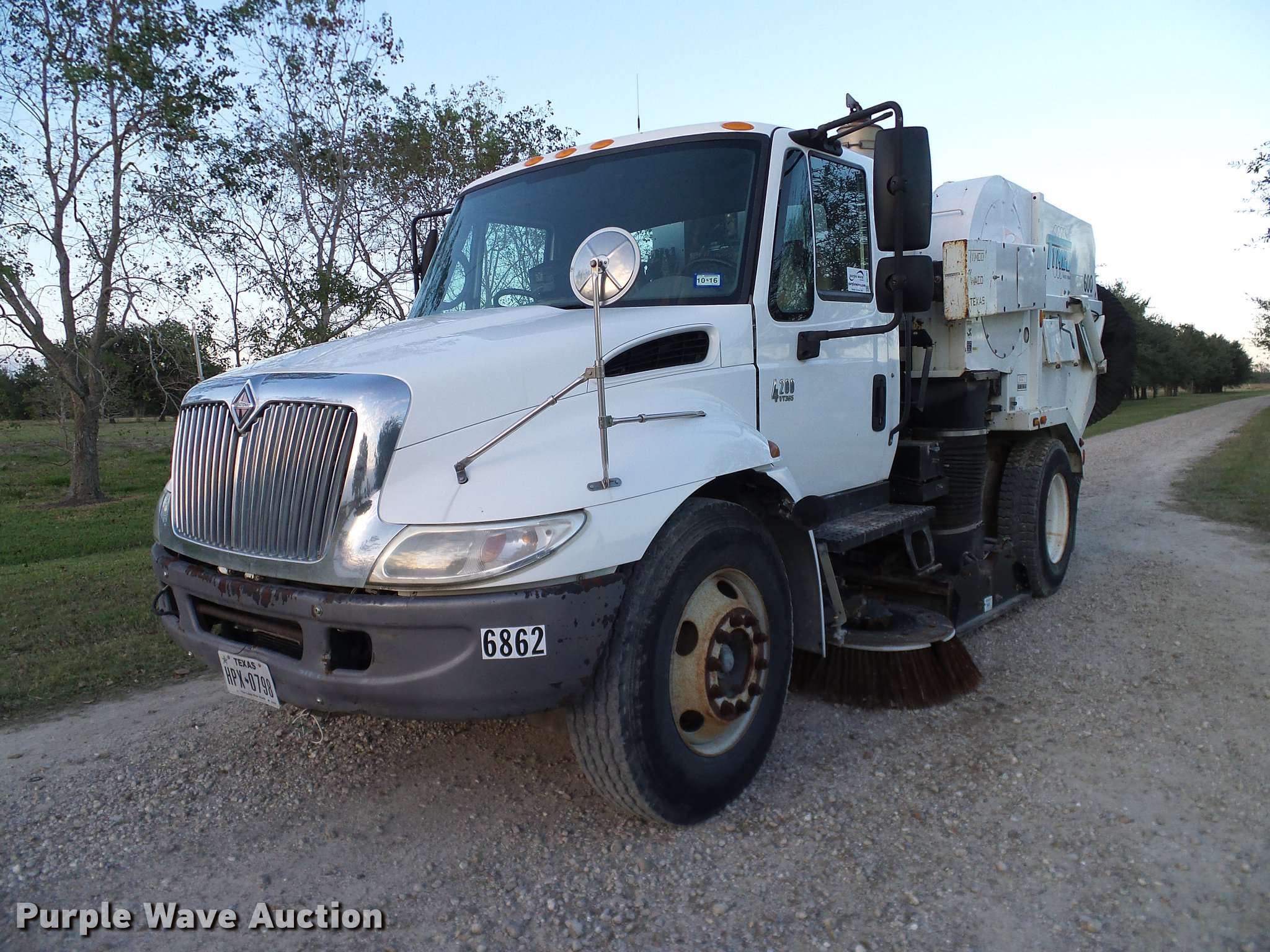 Purple Wave is selling a used Street Sweeper Truck in Texas. This item is a 2005 International 4200 street sweeper truck with the following: 52,067 miles on odometer, 2,183 hours on meter, International VT365 6.0L V8 turbo diesel engine, Automatic transmission, Enclosed cab, AC, Tilt steering wheel, AM/FM, Suspension seat, Tymco 600 sweeper, John Deere four cylinder turbo diesel engine, 2,408 hours on meter, Vacuum, 30" diameter left gutter broom, 30" diameter right gutter broom, Pickup broom, Rear hydraulic dump, Water spray system, Hydraulic drive sweeping system, Video monitoring system, Dual operators stations, Serial 200511SNP67361BAH, 11R22.5 tires, Unit# 6862