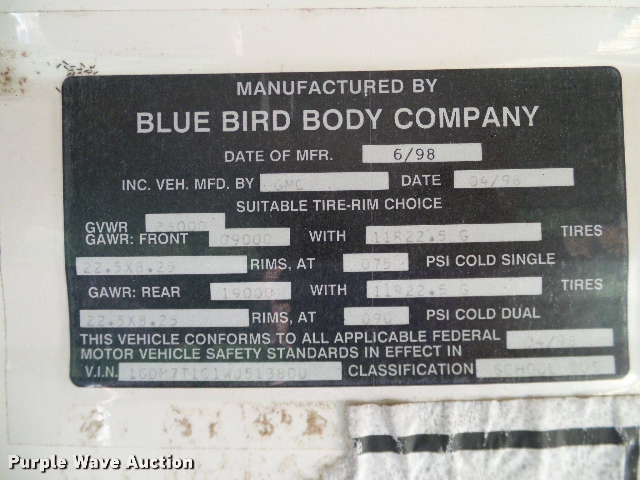 Take a look at this used 1999 GMC Blue Bird school bus being sold on December 13th, 2017 in the SOLD! December 13 Vehicles and Equipment Auction made by GMC. Take a look at all of the item information below or take a look at similar auctions for Transit Vehicles.