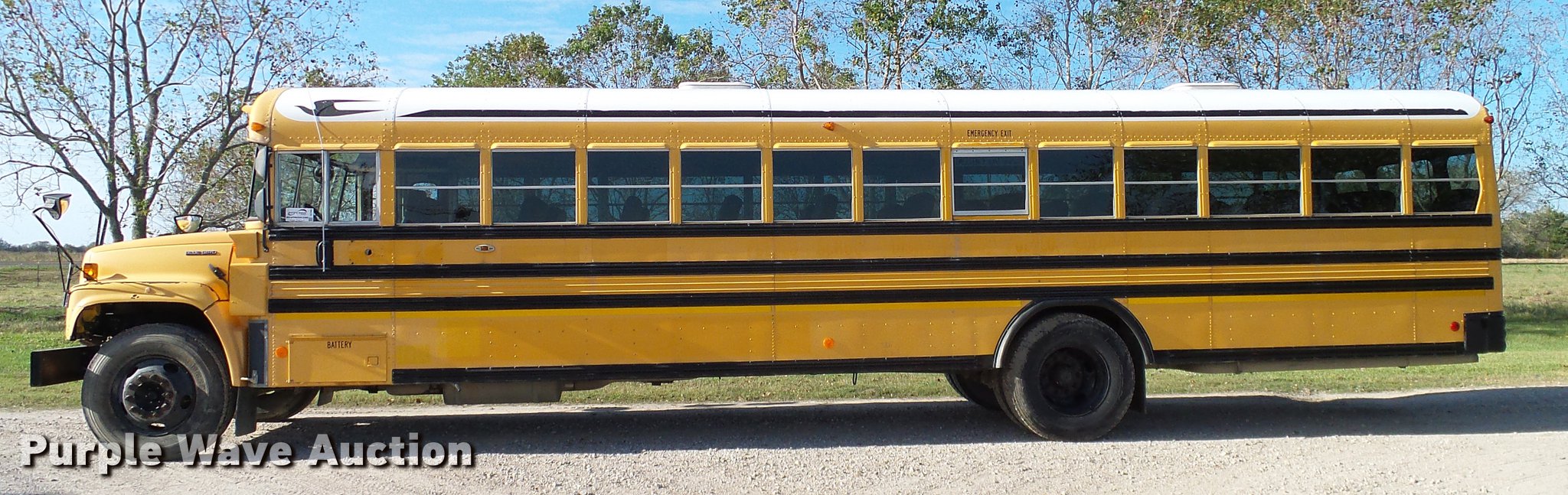 Purple Wave is selling a used Bus in Texas. This item is a 1999 GMC B7 school bus with the following: 138,875 miles on odometer, Caterpillar 3126 7.2L six cylinder turbo diesel engine, Automatic transmission, Single axle, Heat, AM/FM, 48 passenger capacity, 24 adult seats, Ceiling, rear, and side emergency exits, Spring suspension, Air brakes, 11R22.5 tires, GVWR 29,000 lbs, Unit# B290