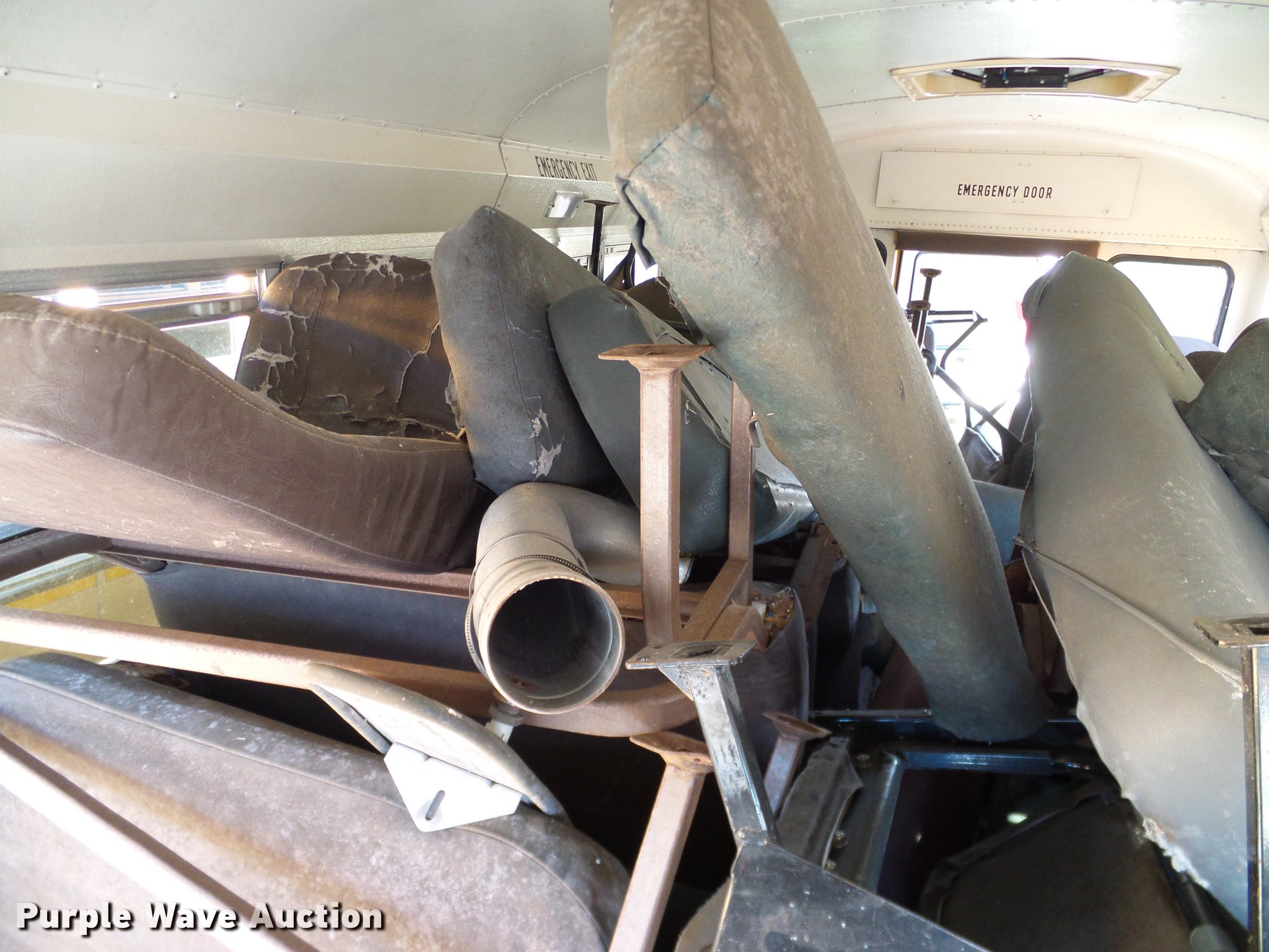 Purple Wave is selling a used Bus in Texas. This item is a 2001 International American Transport Corp. school bus with the following: Unknown miles on odometer, International T444 7.3L V8 diesel engine, Automatic transmission, Single axle, 23 passenger capacity, Ceiling, rear, and side emergency exits, Spring suspension, 152" wheelbase, 27570R22.5 front tires, 10R22.5 rear tires, GVWR 25,500 lbs, Dash missing, Windows missing, Non-operational unit, parts missing, Unit# B191