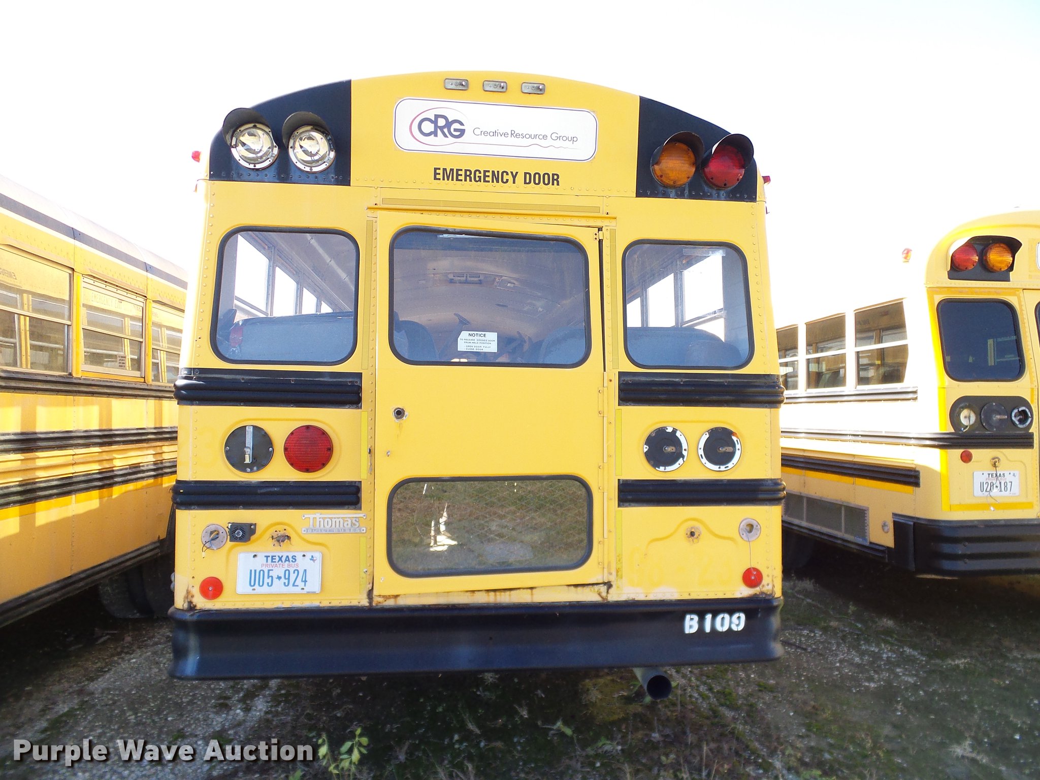 Purple Wave is selling a used Bus in Texas. This item is a 1998 International 3800 Thomas school bus with the following: 115,163 miles on odometer, 11,379 hours on meter, International T444E 7.3L V8 turbo diesel engine, Automatic transmission, Single axle, Heat, Suspension seat, Auxiliary controls, 44 passenger capacity, (22) adult seats, Ceiling, rear, and side emergency exits, 254" wheelbase, Spring suspension, Hydraulic brakes, 10R22.5 tires, GVWR 27,500 lbs, Unit# B109