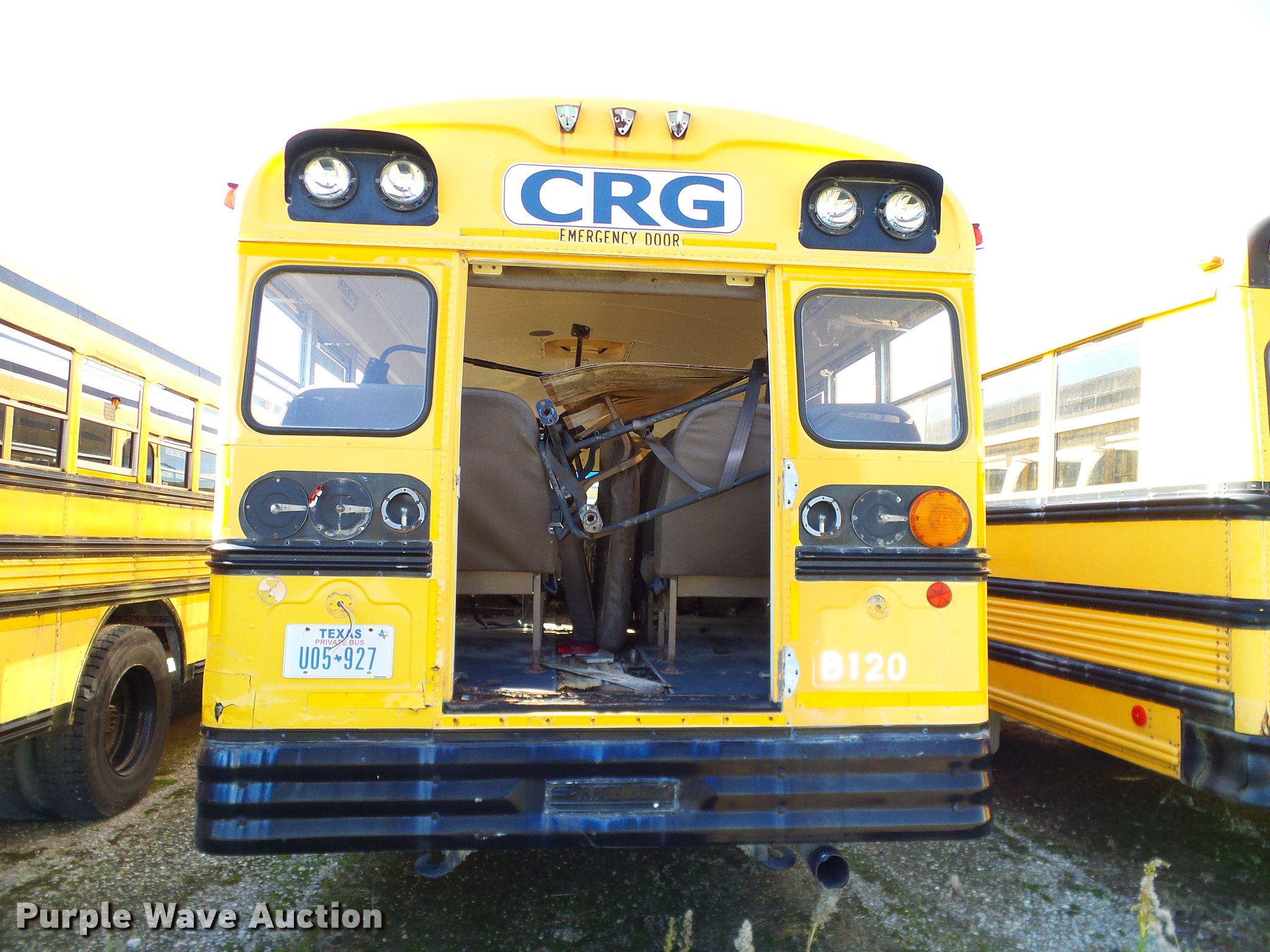 Purple Wave is selling a used Bus in Texas. This item is a 1997 International 3800 Blue Bird school bus with the following: Unknown miles on odometer, No engine, Automatic transmission, Single axle, Heat, AM/FM, Suspension seat, 44 passenger capacity, (22) adult seats, Ceiling, rear, and side emergency exits, Rear tow hooks, Spring suspension, Air brakes, 254" wheelbase, 11R22.5 tires, GVWR 29,000 lbs, Dash components missing, Seat components missing, Rear door missing, Non-operational unit, parts missing, Unit# B120